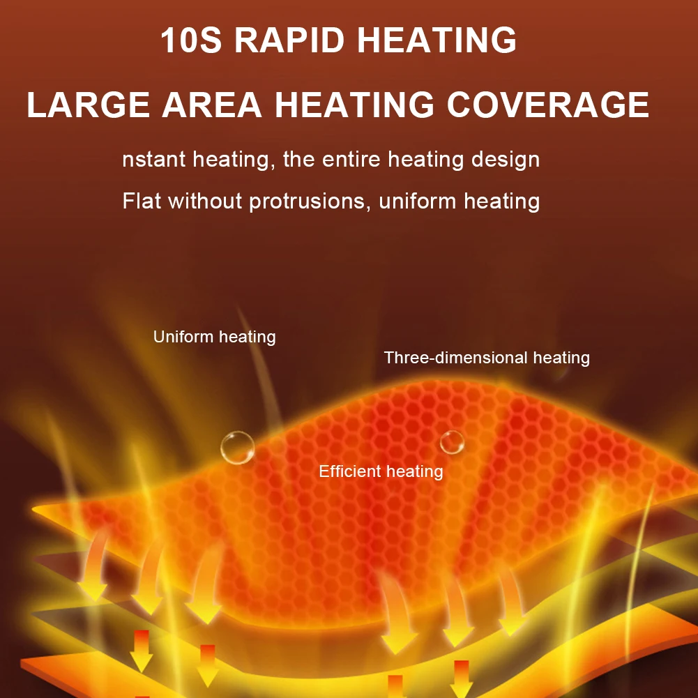 1. Instant Warmth: The heated vest features 10 heating zones that effectively combat dampness and cold, providing immediate warmth. This design supports a smart and convenient lifestyle, making it ideal for outdoor activities and travel in cold weather. Specification: This product does not include a power bank.