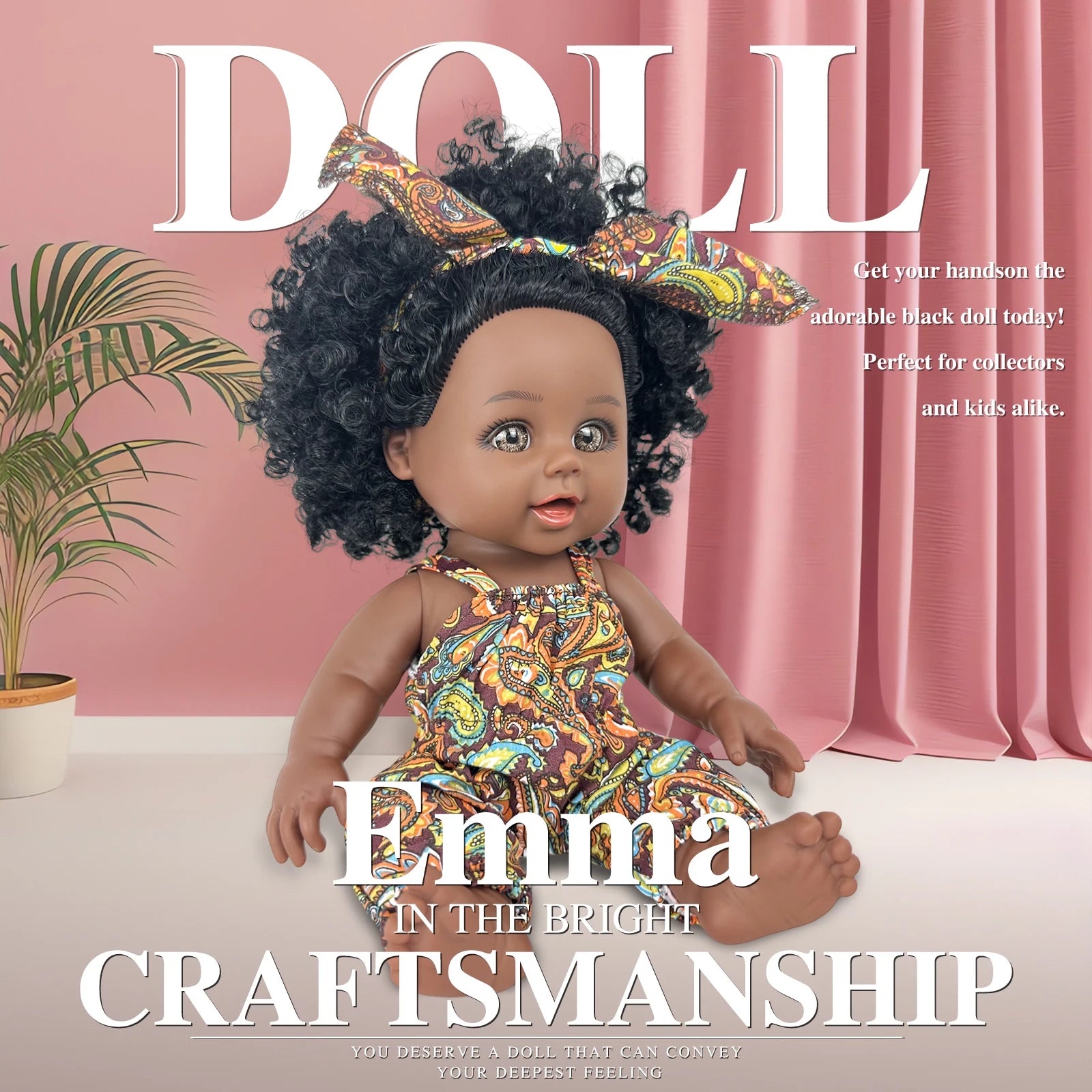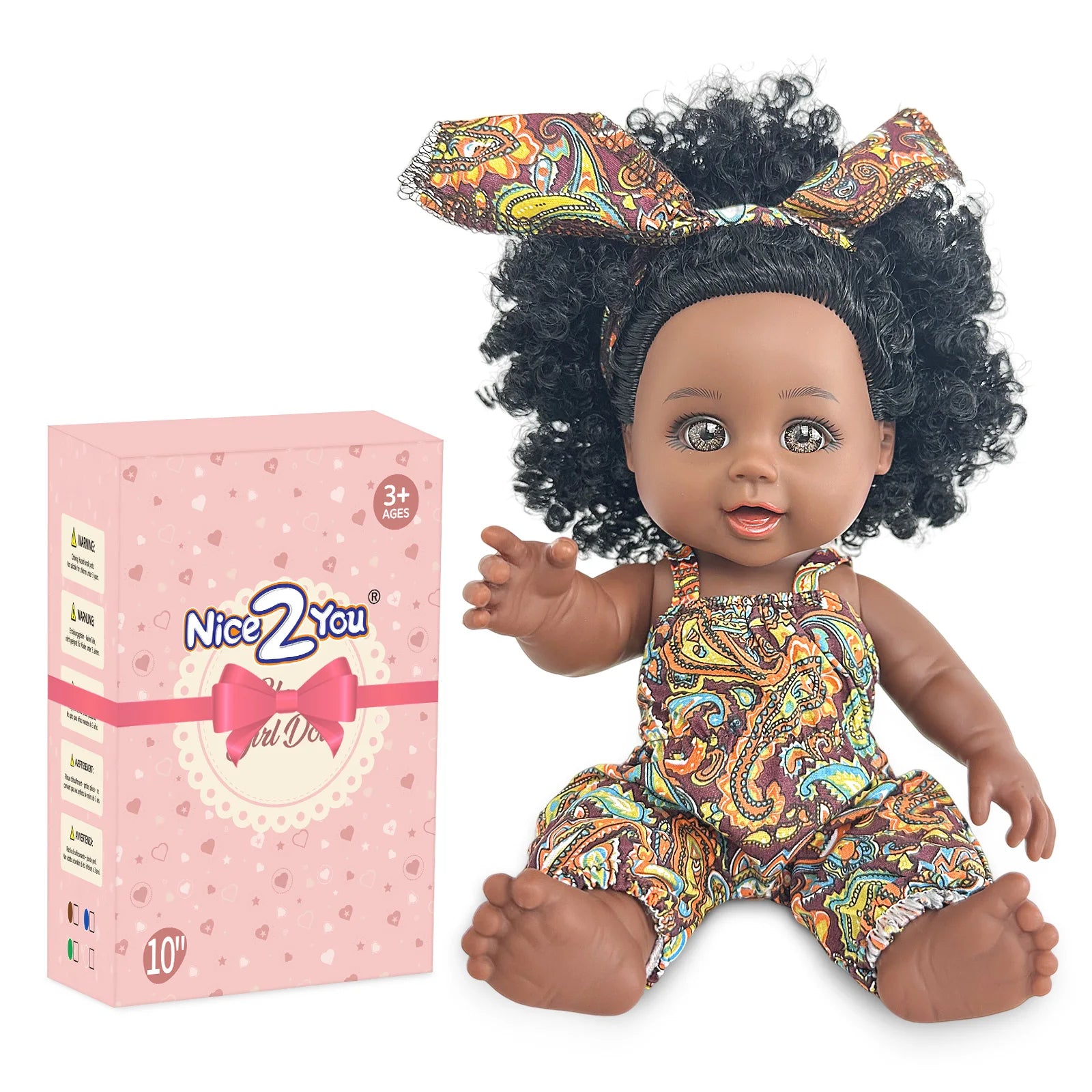 10 inch Black Baby Doll American African Black Girl Doll with Dress Realistic Reborn Baby Doll For Kids Silicone Toys Gift