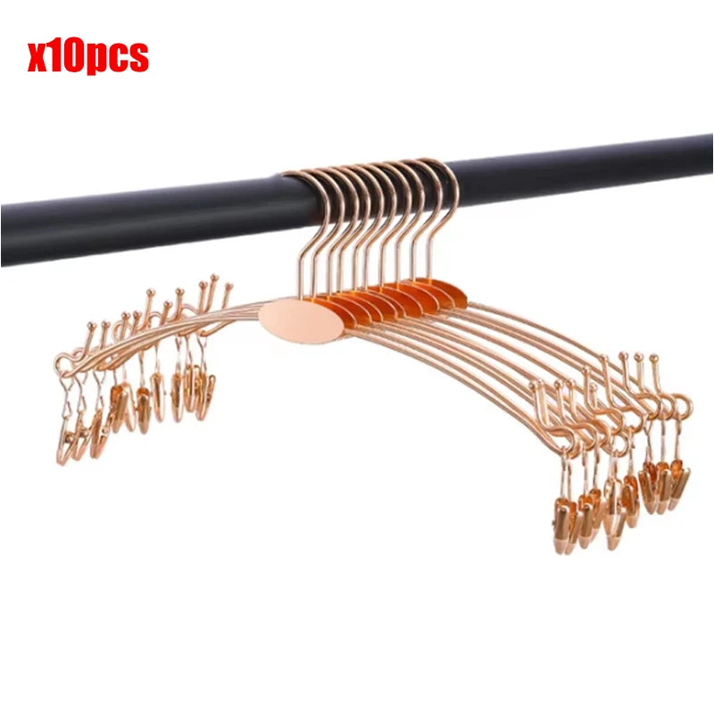 10pcs Portable Bathrooms Cloth Hanger Metal Underwear Hangers Bra Clips Socks Panty Racks Home Drying Clothes Hanger with Clips