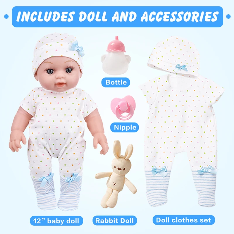12Inch/30CM Baby Doll Cute Spot Shaped Pajamas Soft Washable Clothes Lifelike Playmate Cuddle Reborn Doll Kids Toy Girls Gift
