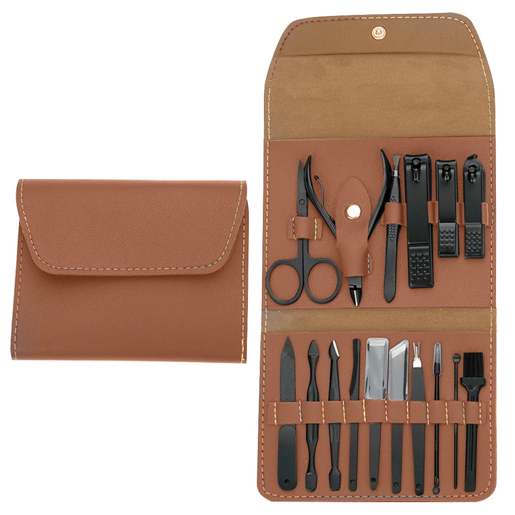 16Pcs Professional Manicure Set Pedicure Care Tools Stainless Steel Pedicure Set Portable with Leather Case for Men Women