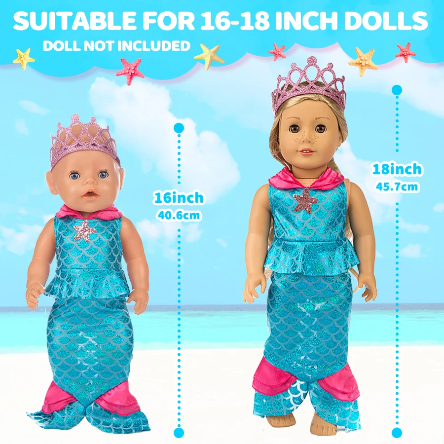 18inch/45cm Baby New Born Doll Clothes Set Make Up Mermaid Clothes Accessories Suit For Baby Kid Birthday&Festival Girl Gift