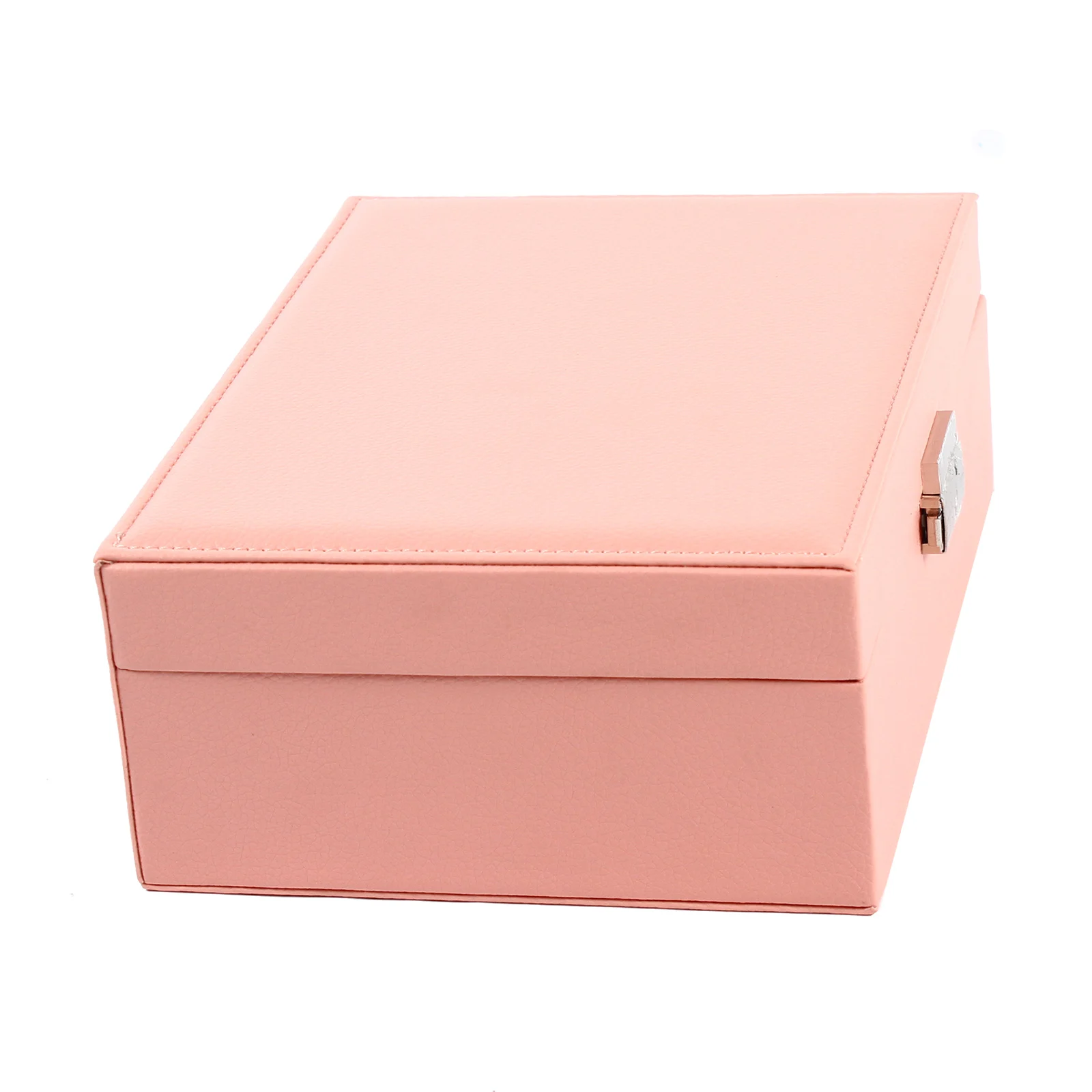 2 Layer Storage Velvet Jewelry Box With Lock Leather Large Gift Case Jewelry Display Box for Bracelet Ring Stud Earring