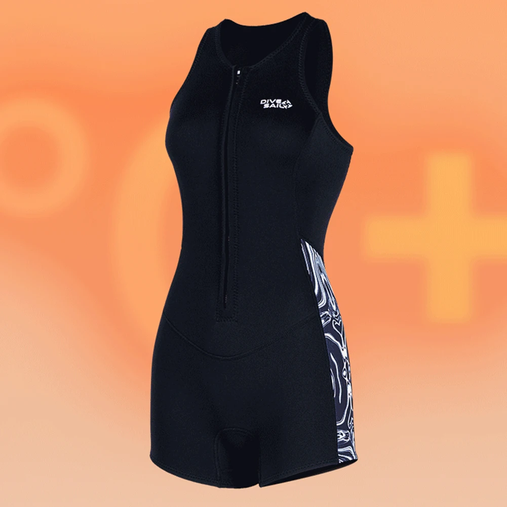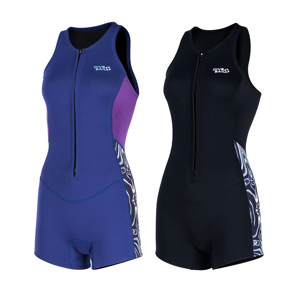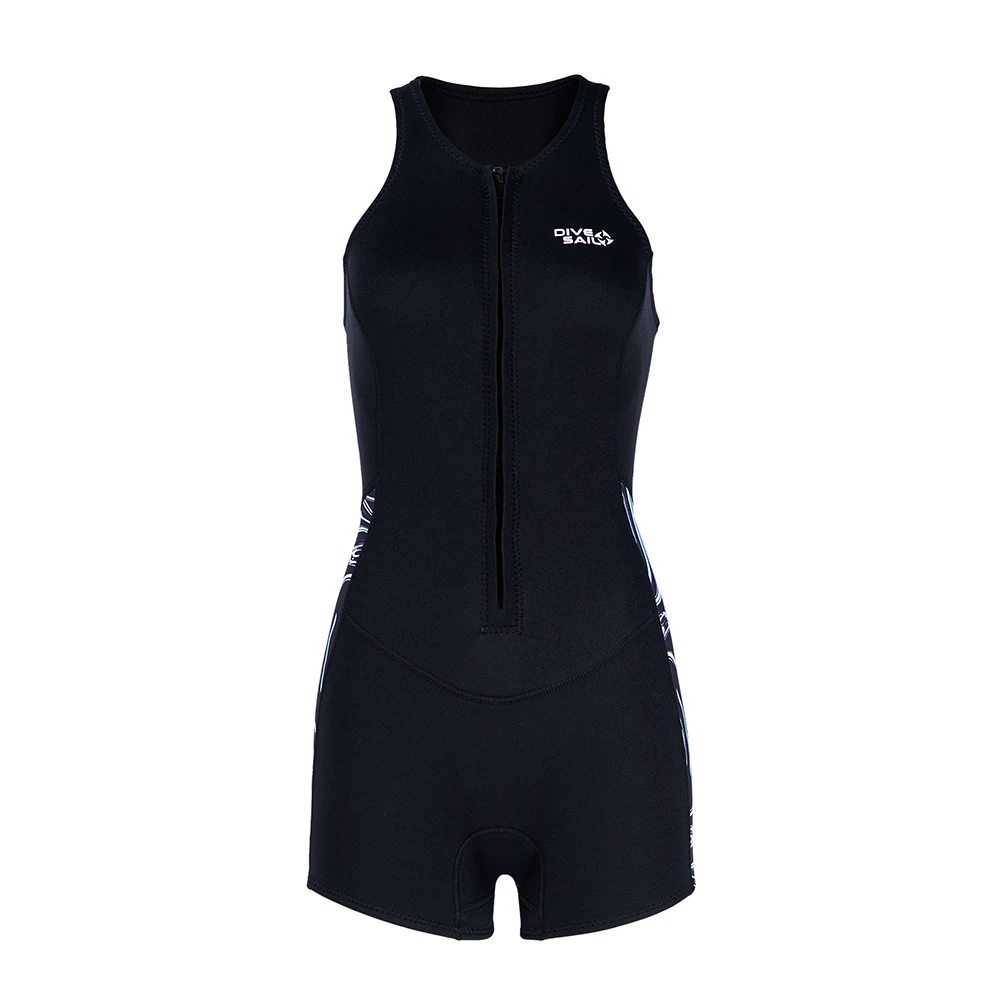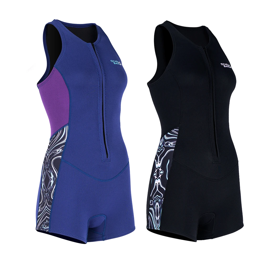 Features: 1.2MM Neoprene for Warmth: This women wetsuit is made with 2MM thick neoprene, providing excellent heat retention to delay body temperature loss, ensuring prolonged water activity enjoyment. 2.High Elastic Fabric: Experience optimal comfort with these sleeveless wetsuits, designed with high elasticity fabric for efficient rebound and unrestricted movement. 3.Sun and UV Protection: Enjoy outdoor activities safely with the one piece swimsuit that offers sun and UV protection both in and out of the water. 4.Meticulous Stitching: The diving shorty suit features precise stitching, ensuring a , aesthetically pleasing design that's resistant to breakage. 5.Jellyfish and Scratch Protection: Stay safe from harmful marine life and sharp objects with this one-piece bathing suit, designed to protect against jellyfish stings and scratches. Specification: Origin: Mainland China Main Material: SCR Neoprene, Nylon Cloth Color: Black, Blue Style: Women Size: XS, S, M, L, XL, XXL Net Weight: 290g (XS), 310g (S), 330g (M), 350g (L), 380g (XL), 400g (XXL)