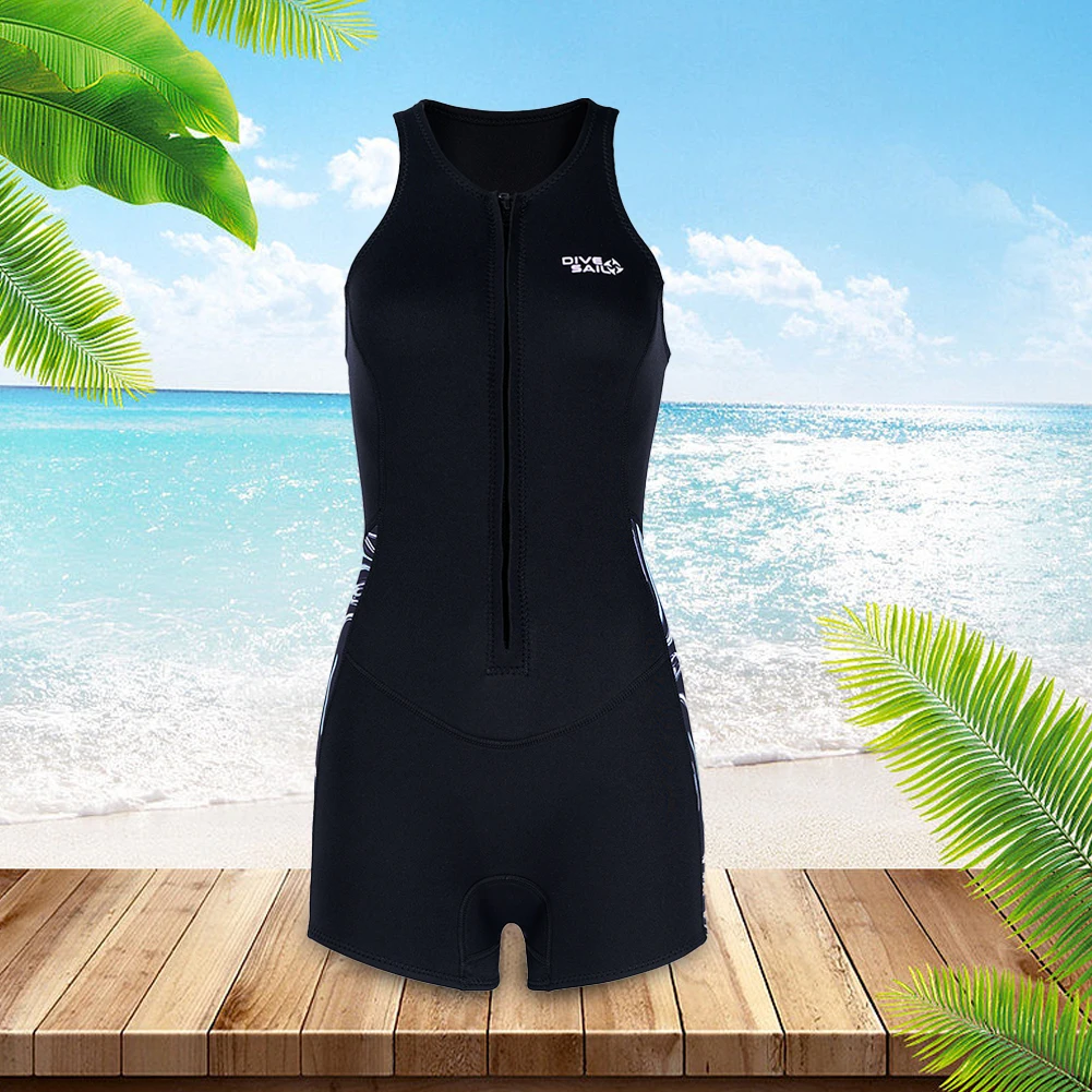 2MM Neoprene Women Wetsuit with Front Zip Sleeveless Wetsuits Sun Protective One-piece Bathing Suit for Swimming Diving Snorkeling Kayaking Surfing