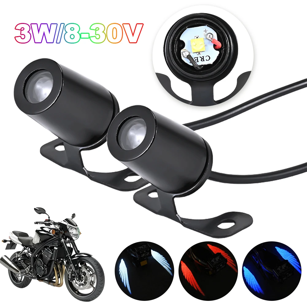 Features: 1. Superior Heat Dissipation: The motorcycle angel wing LED lamp is made from aviation aluminum, providing excellent heat resistance and enhanced strength through thermal treatment, ensuring durability and performance below 150°C. 2. High Transparency Lamp Beads: Featuring high-transparency lamp beads, the door courtesy light offers strong light transmission, clear and visible patterns, and uniform illumination, enhancing the visual appeal of your vehicle. 3. Bright Angel Wings LED: The angel wings projection lights illuminate your night rides, adding a touch of elegance and increasing visibility to prevent accidents, enhancing both safety and style. 4. Waterproof Design: With an ultra-strong waterproof feature, the LED welcome light functions perfectly even in rainy weather without the need for removal, providing reliable performance in all conditions. 5. Wide Compatibility: Suitable for most motorcycle models, the motorcycle modified decorative lamp connects directly to the vehicle's headlights, eliminating the need for battery replacement and offering a convenient, hassle-free upgrade.