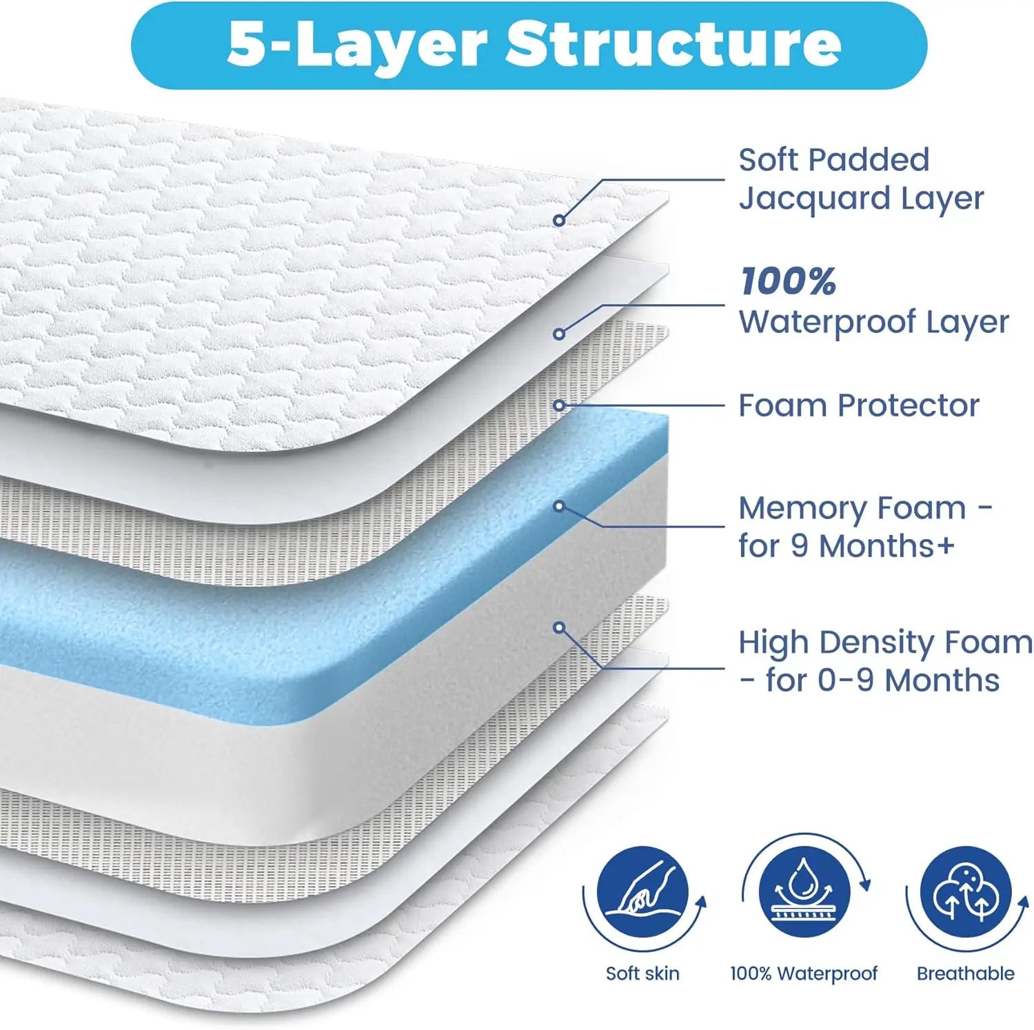 - [Delicate and Waterproof Cover] The mattress cover is soft, waterproof, detachable, and machine washable. It is gentle to the touch, hypoallergenic, making it ideal for baby's sensitive skin. The waterproof function completely protects the mattress from damage and preserve it to be fresh new