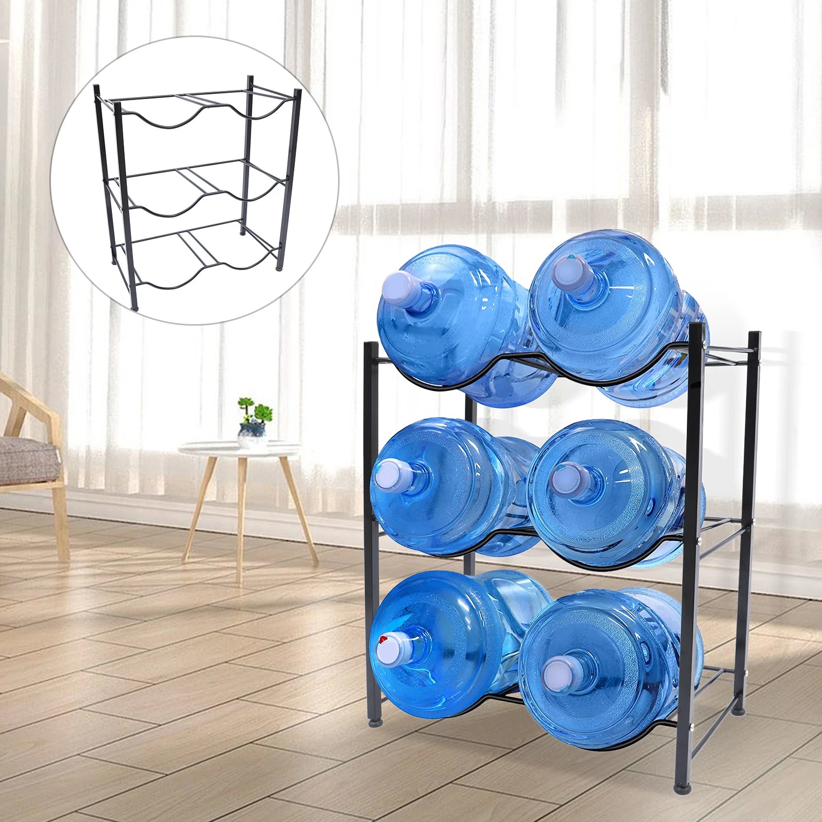 5 Gallon Water Bottle Holder 3 Tier Water Cooler Jug Rack for 6 Bottles Heavy Duty Detachable Water Bottle Storage Rack for Home