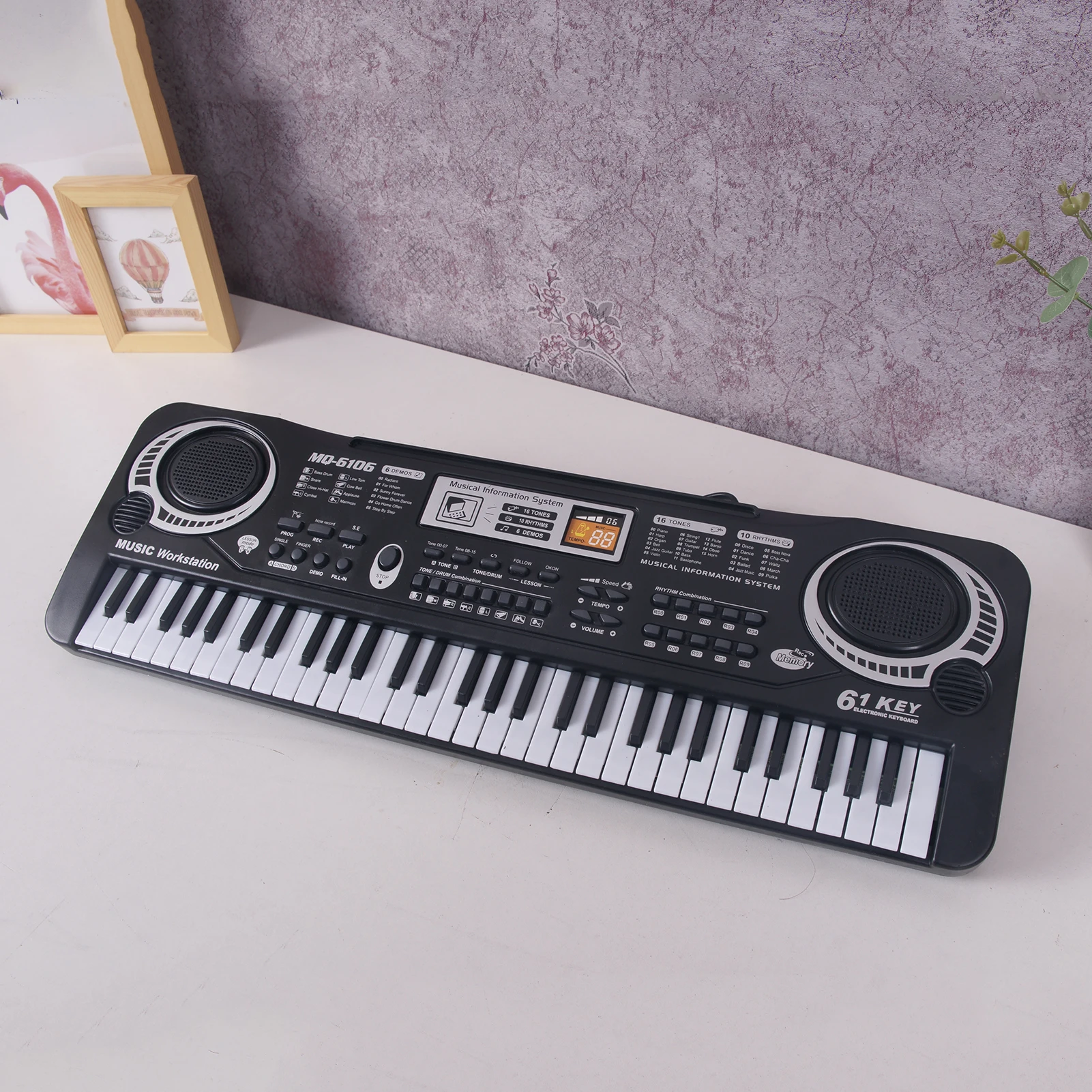 1. With great function of 16 kinds of timbre, 8 kinds of percussion instrument recording, 10 kinds of rhythm, 6 demos also with the adjustment of volume.2. Convenient for playing indoor or outdoor.