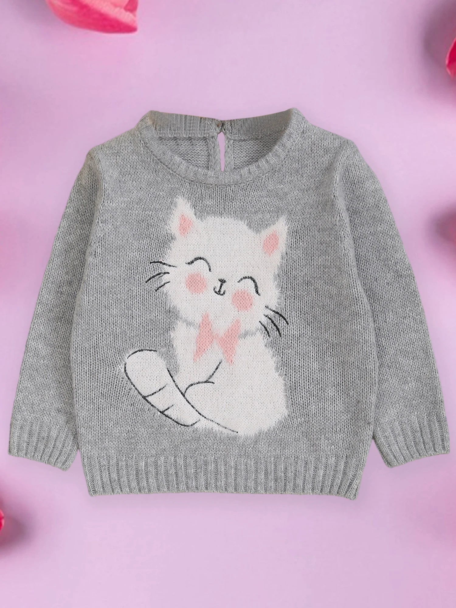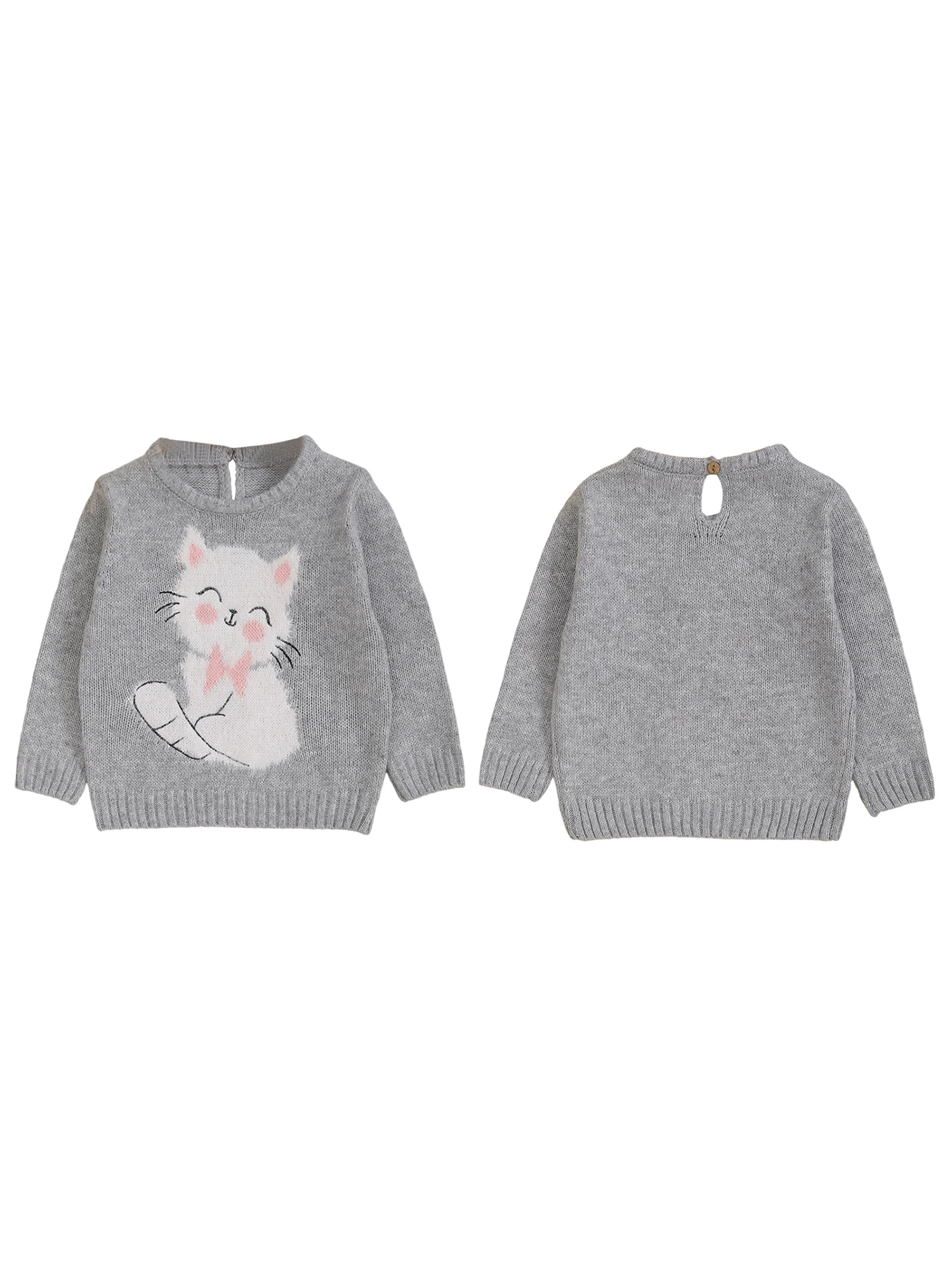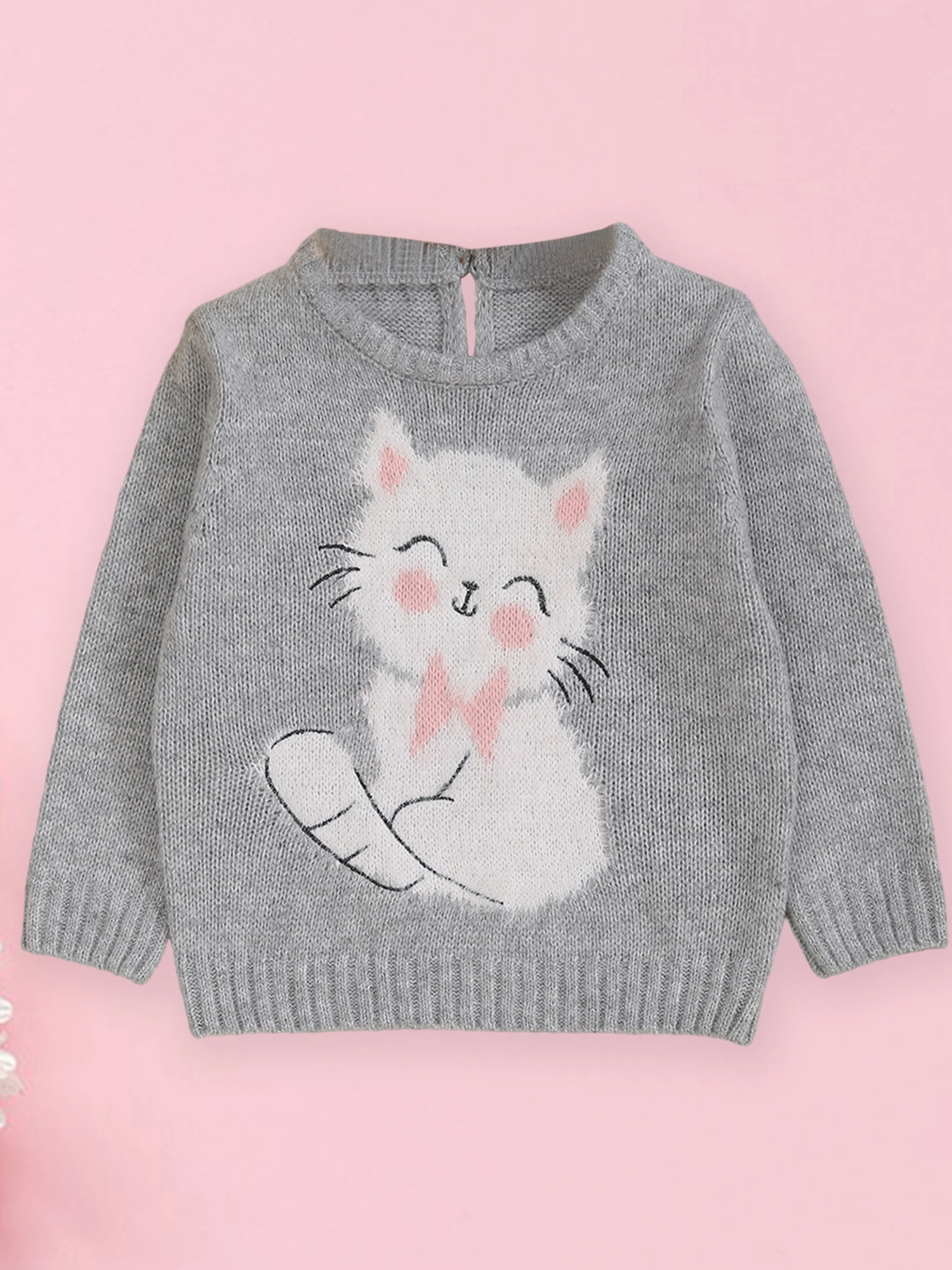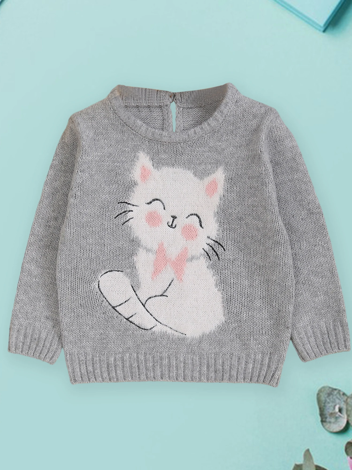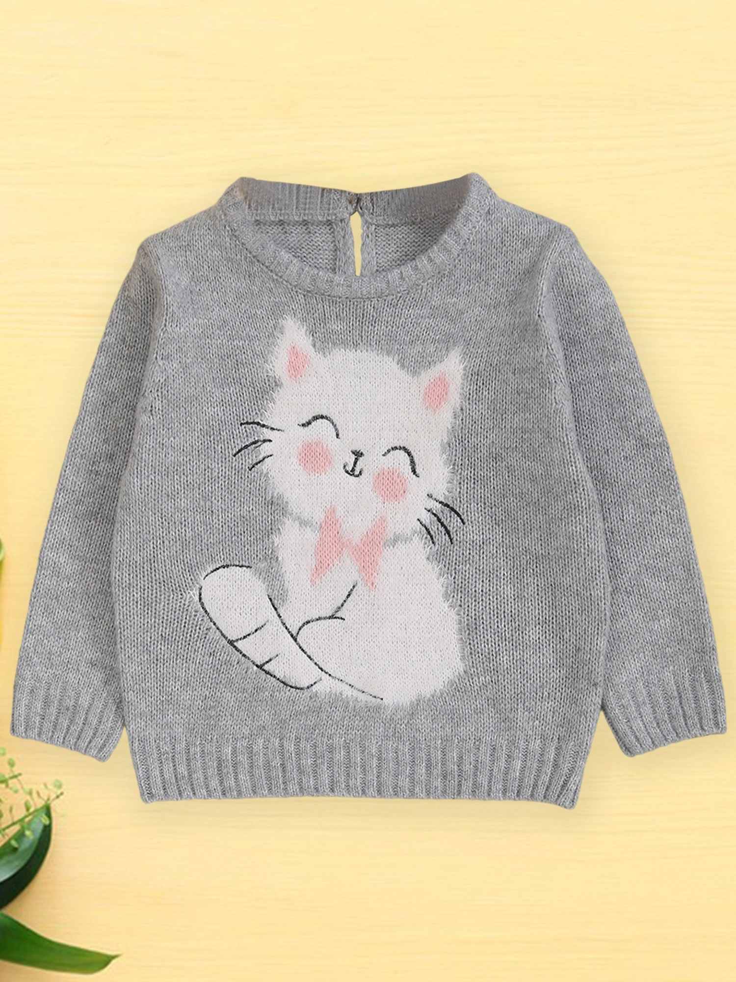 Cute cat pattern, knitted fabric, long sleeves, round neck; Toddler girls sweater, simple and stylish, perfect for keeping your child warm and cozy in cold weather