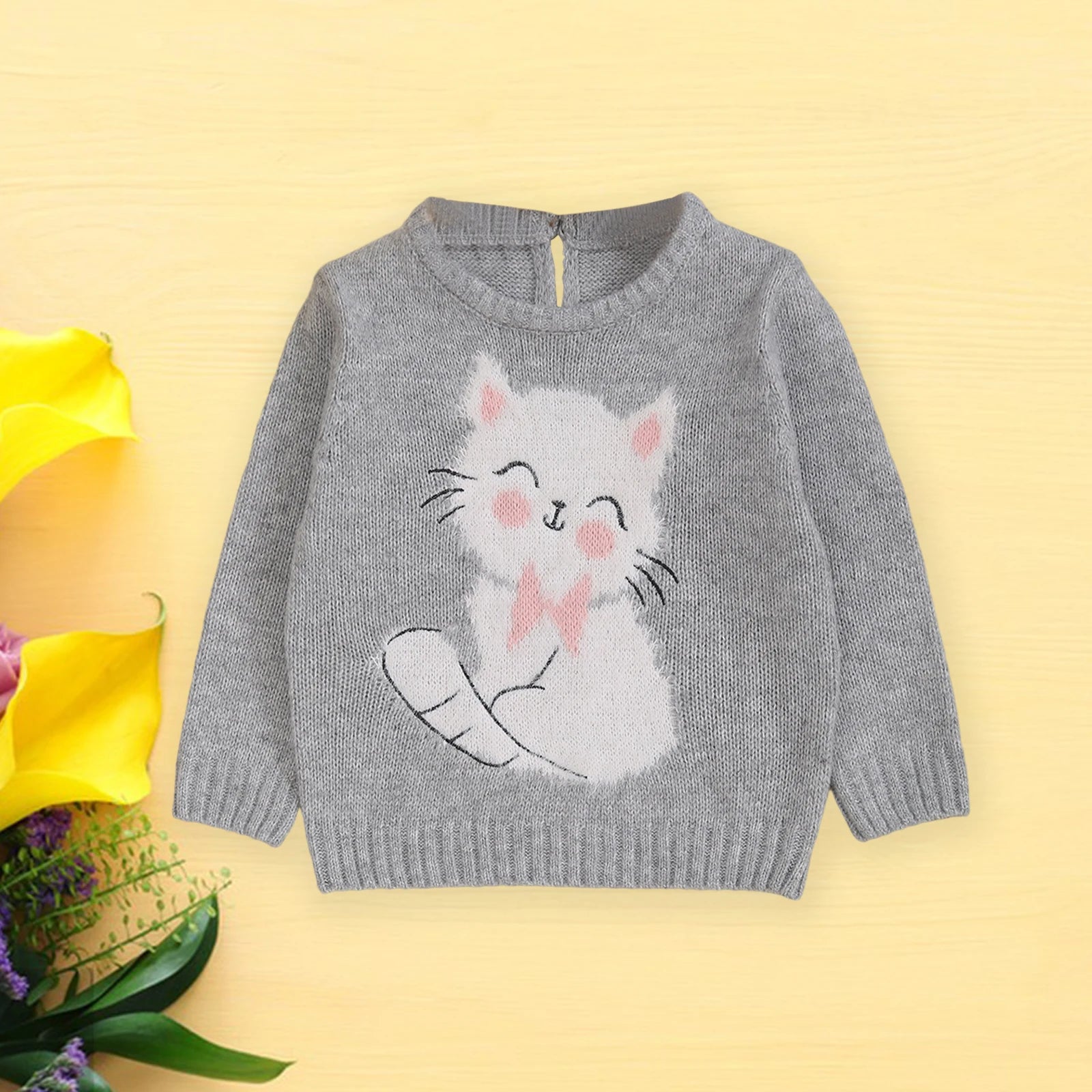 Baby Girls Long Sleeves Sweater Casual Cute Cat Pattern Infant Pullover Knitwear for Toddler Warm Clothes