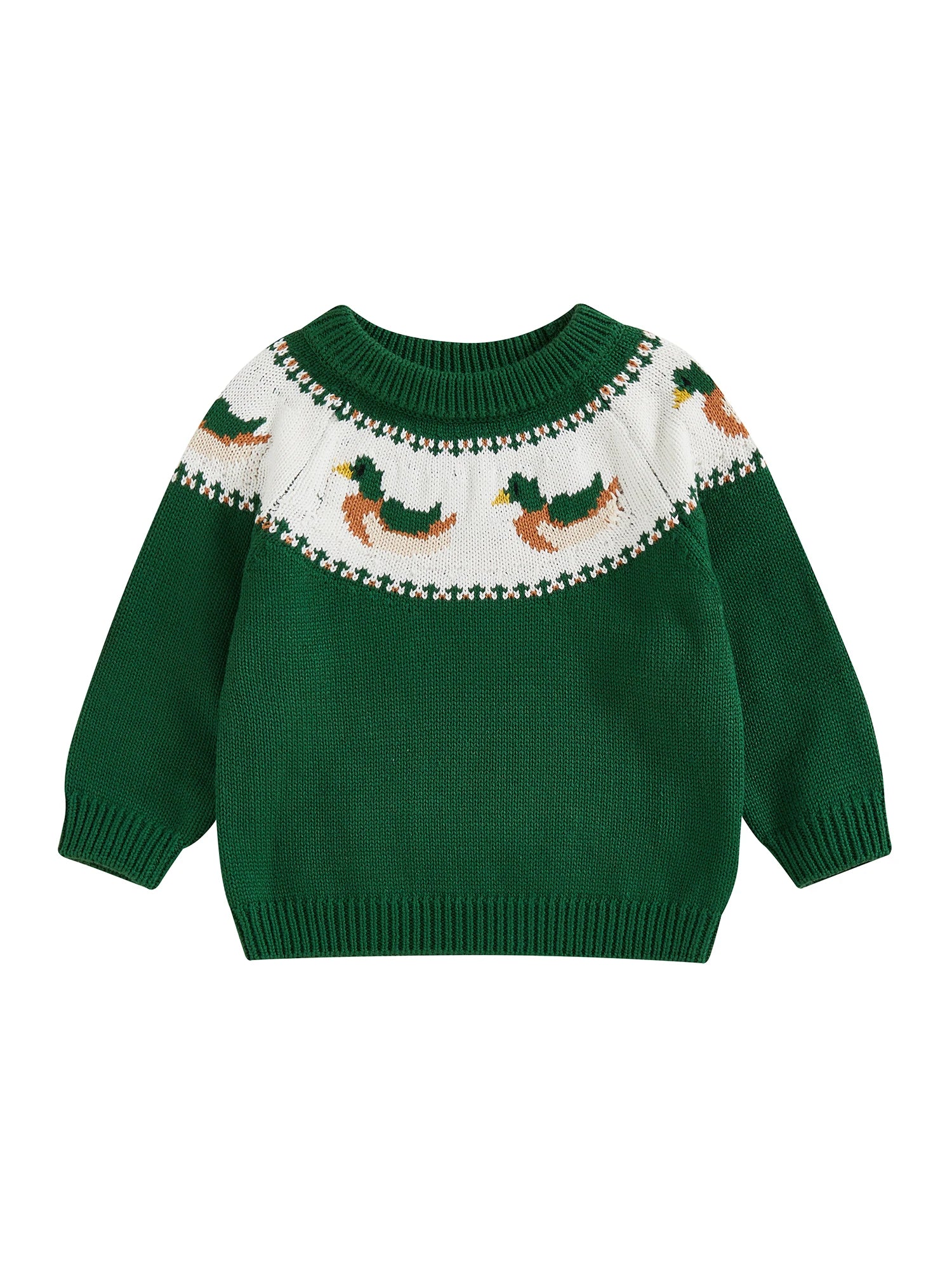 Toddler Baby Boy Duck Sweater Animal Pattern Crewneck Long Sleeve Chunky Knit Tops Casual Winter Clothes