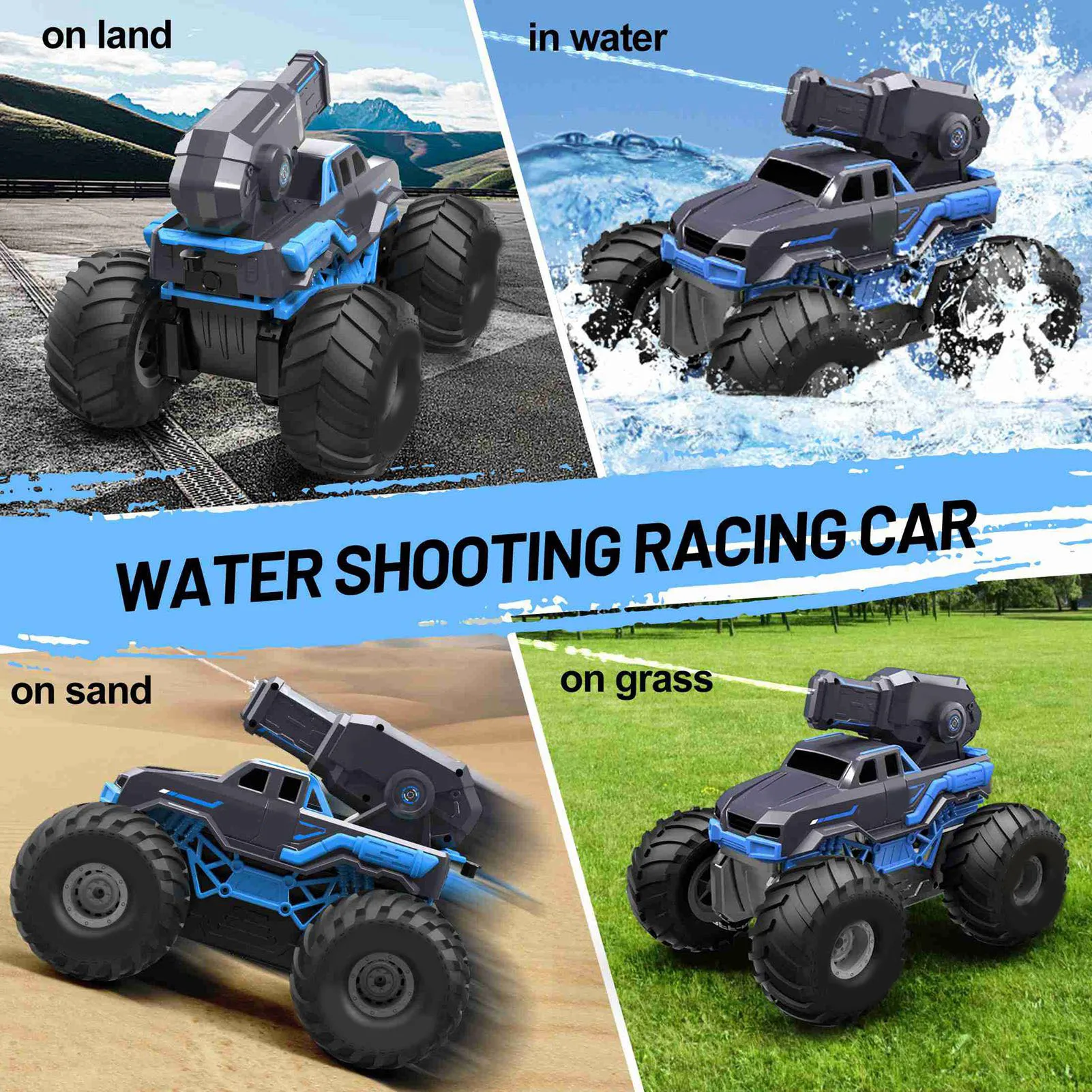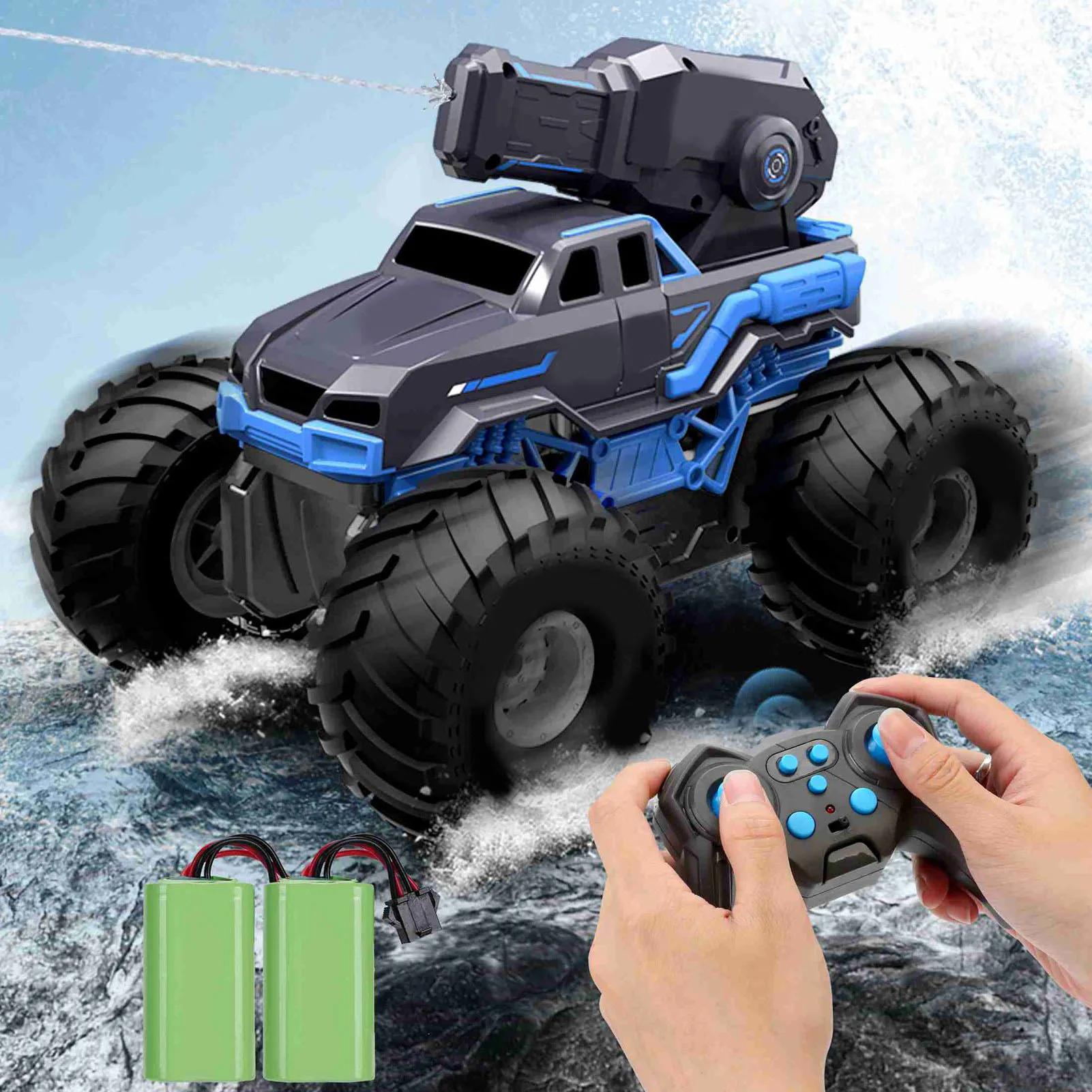 Amphibious RC Car Boat with Water Sprayer Toy 1:16 4 Wheel Drive Remote Control Truck with 2 Batteries for Boys Girls Aged 6+