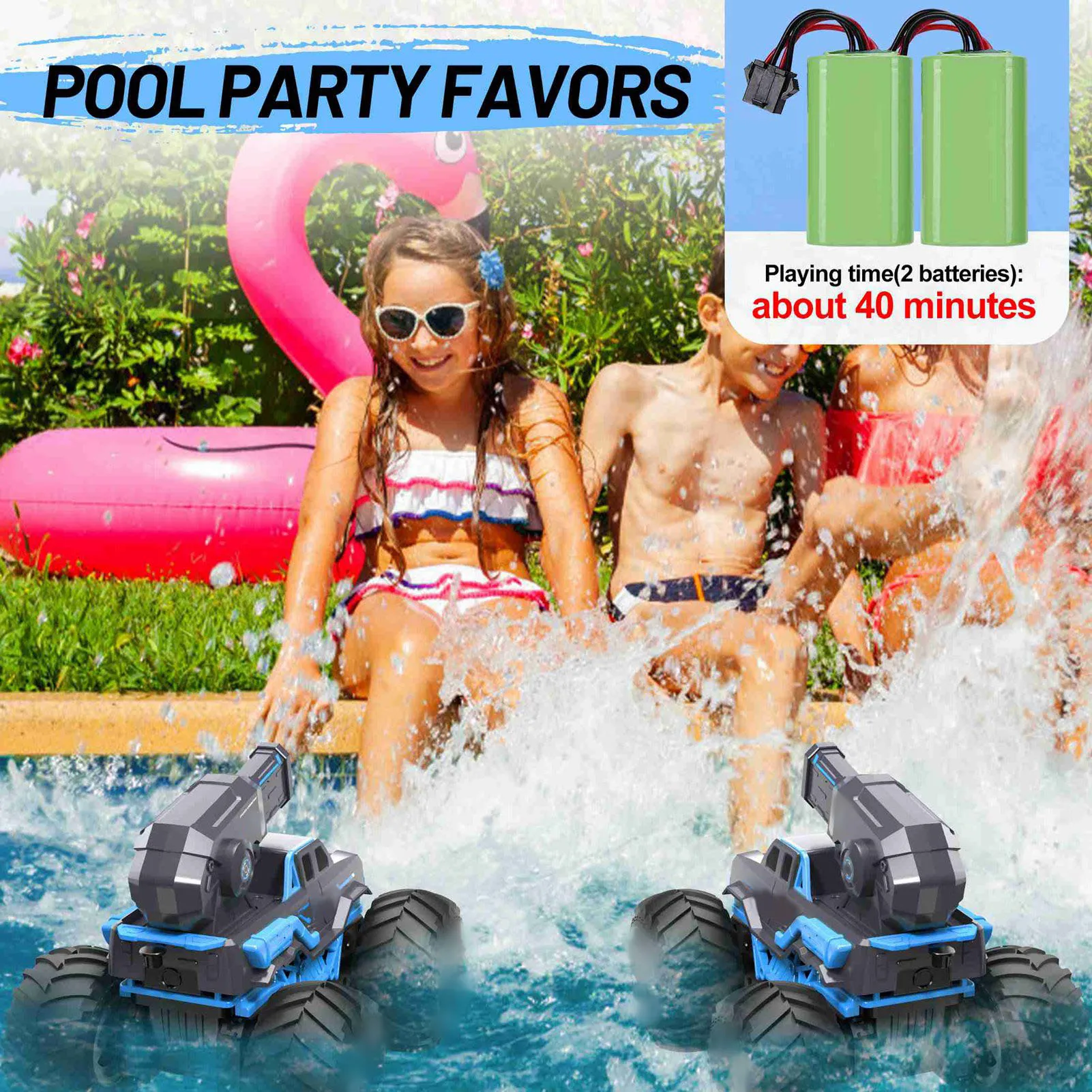 4. Amphibious Design: Take the fun to a whole new level with the amphibious capabilities. Drive it on land or in the pool, this RC car boat is suitable for water based play as pool and beach toys. Seamlessly transition from solid ground to water adds an exciting fun to your remote control experience.