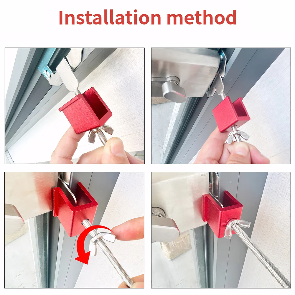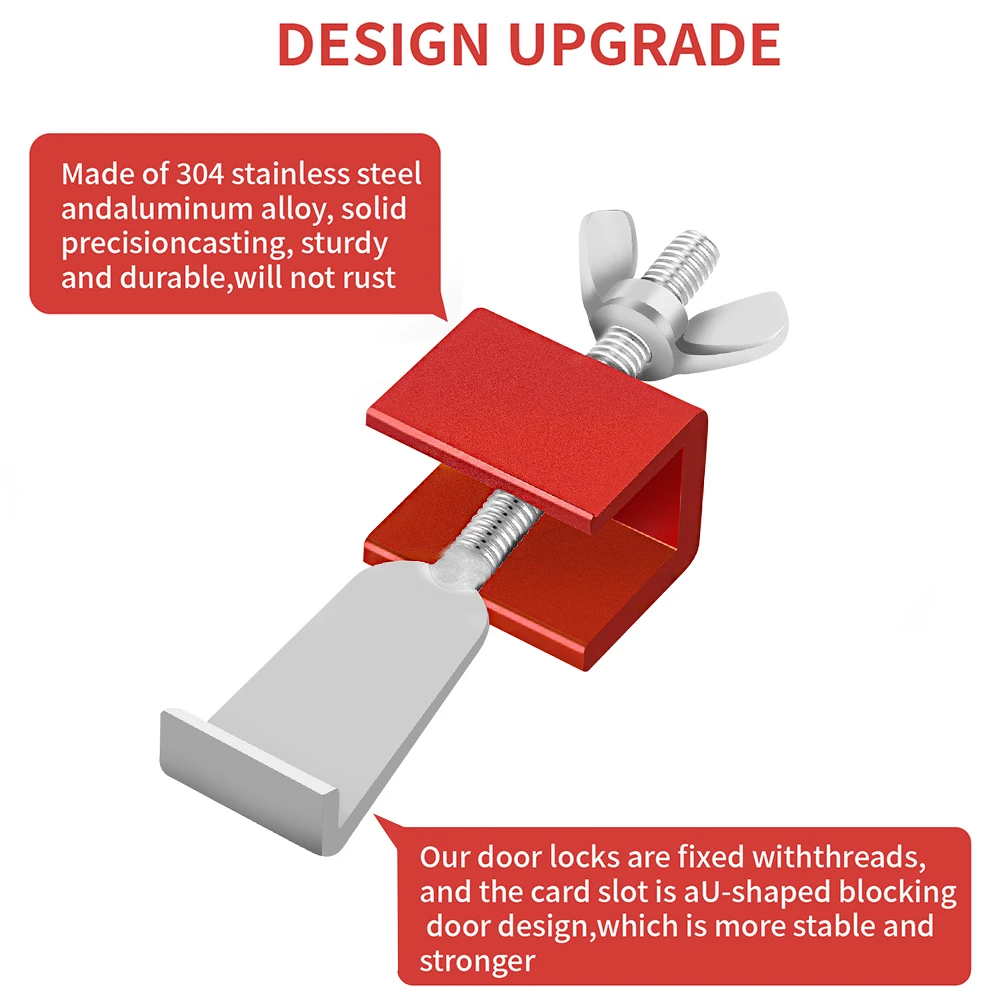 Note: Sliding Window Lock Anti-Theft Door Lock Slide Security Lock Stopper Aluminum Alloy Window Lock for Baby Kids and Pets Features: 1.High Security: Effectively prevent intruders and protect your privacy whether you are traveling or at home. Sleep soundly knowing your safety lock is in place. 2.Sturdy Portable Door Lock: Made from reliable stainless steel and aluminum alloy, ensuring long-lasting use for your anti-theft door lock. 3.Easy to Carry: Lightweight and compact, fit it into your travel bag or carry it with you for added security with this sliding window lock. 4.Easy Installation: No tools required for a window stopper; install your portable travel door lock within seconds. 5.Function Upgrade: Compatible with most inward-opening hinged doors, enhancing versatility of this sliding door lock. Specification: Origin: Mainland China Material: stainless steel and aluminum alloy Product size: about 108.00x29.90x24.70mm/4.25x1.18x0.97inch