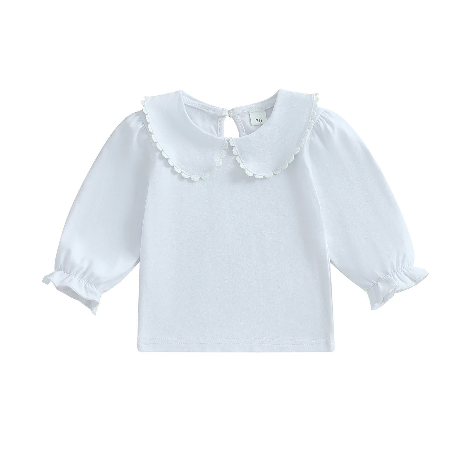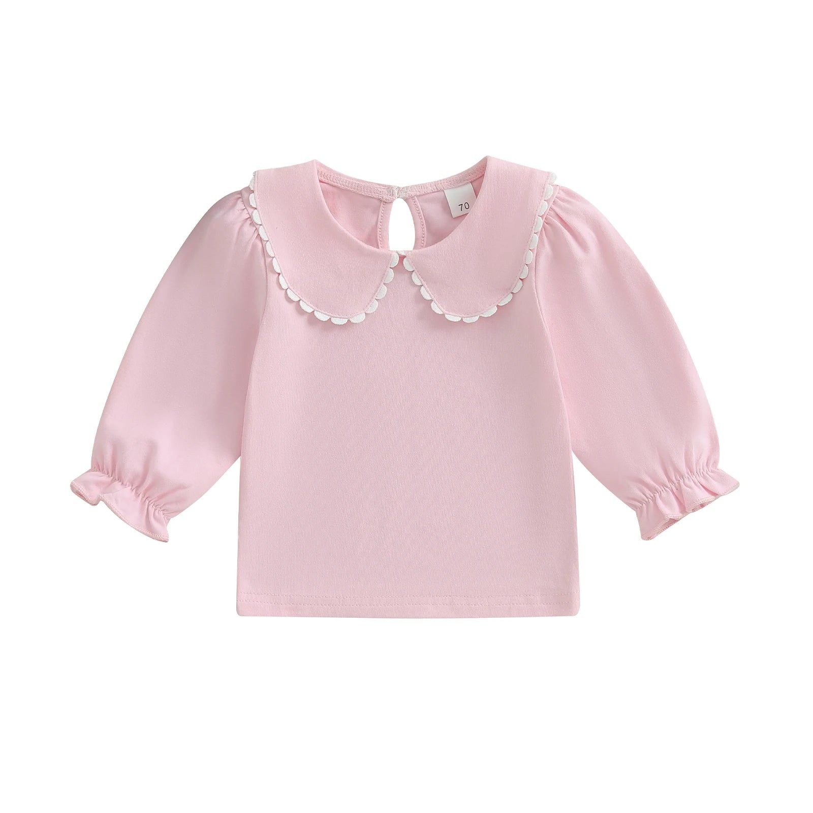 Autumn Kids Toddler Girls Fall T-Shirt Solid Doll Collar Long Sleeve Loose Fit Tops Spring Clothes