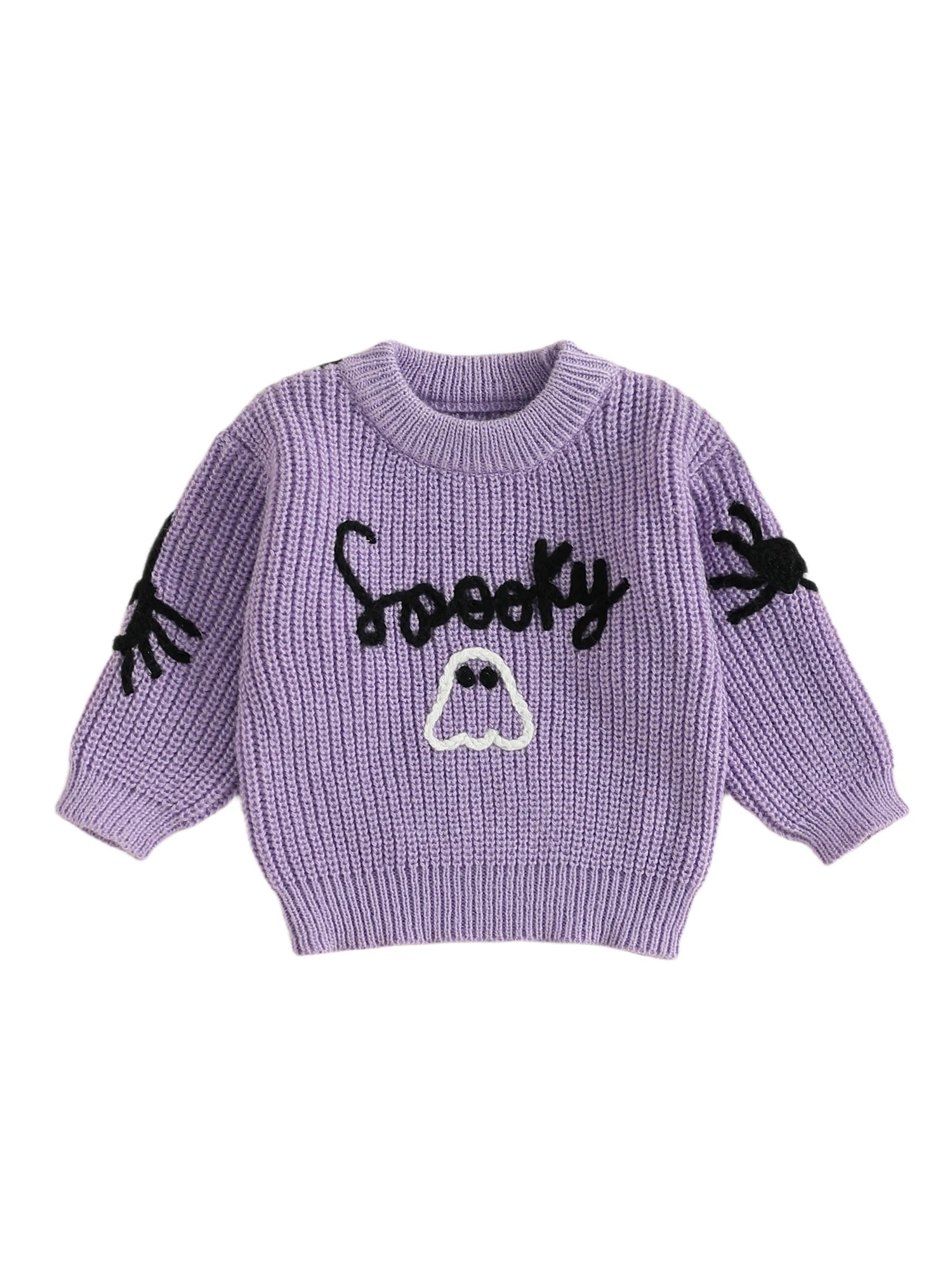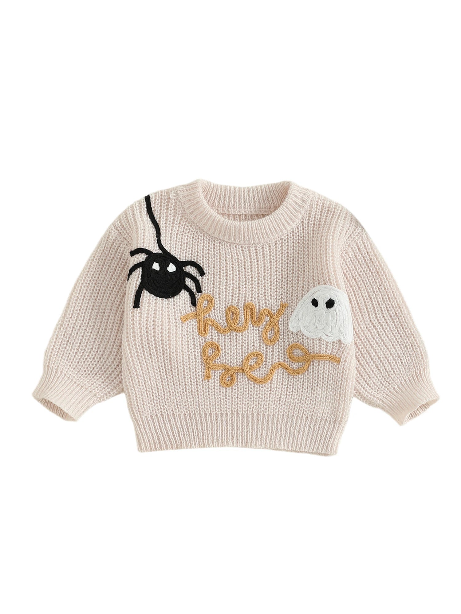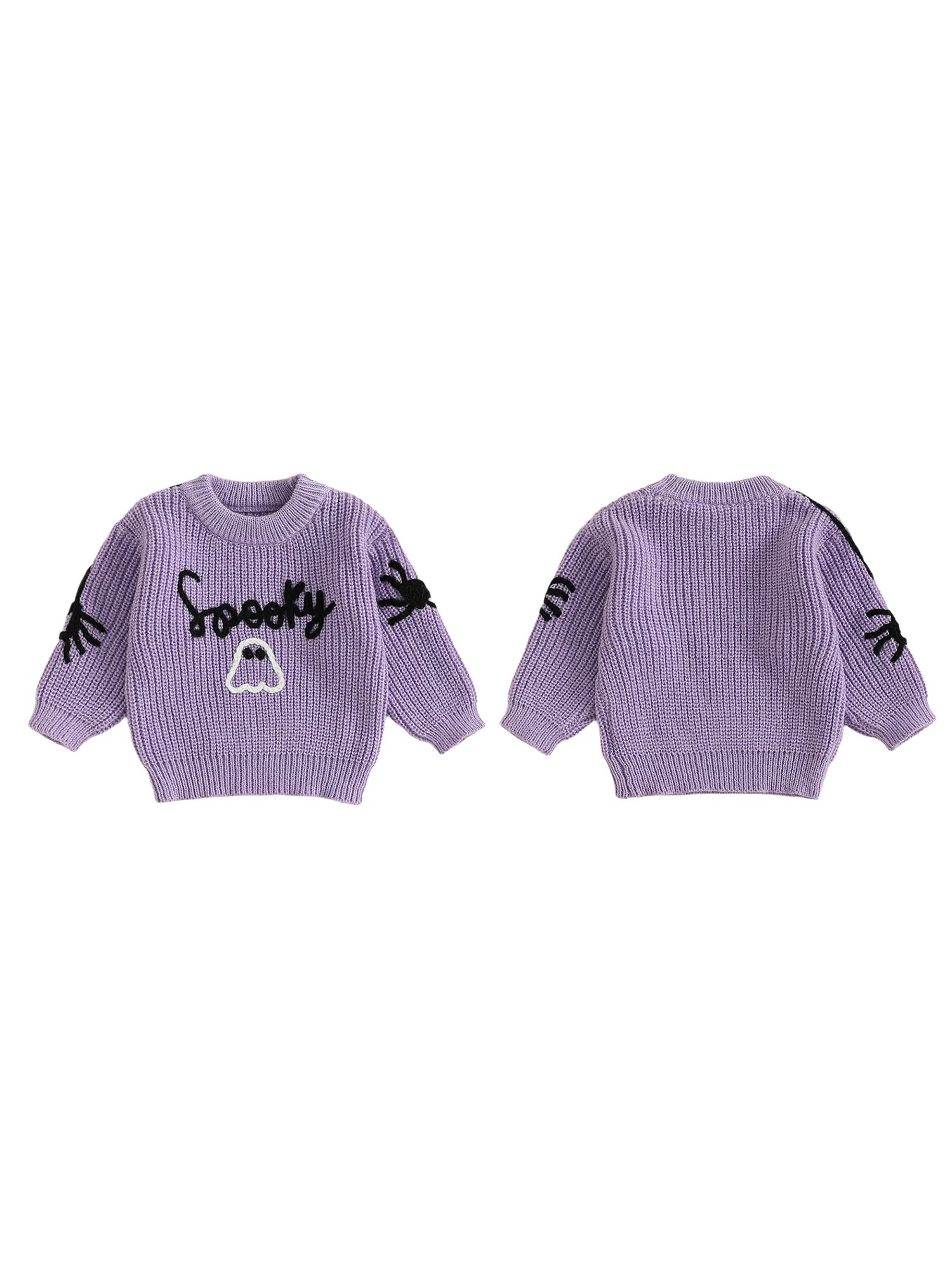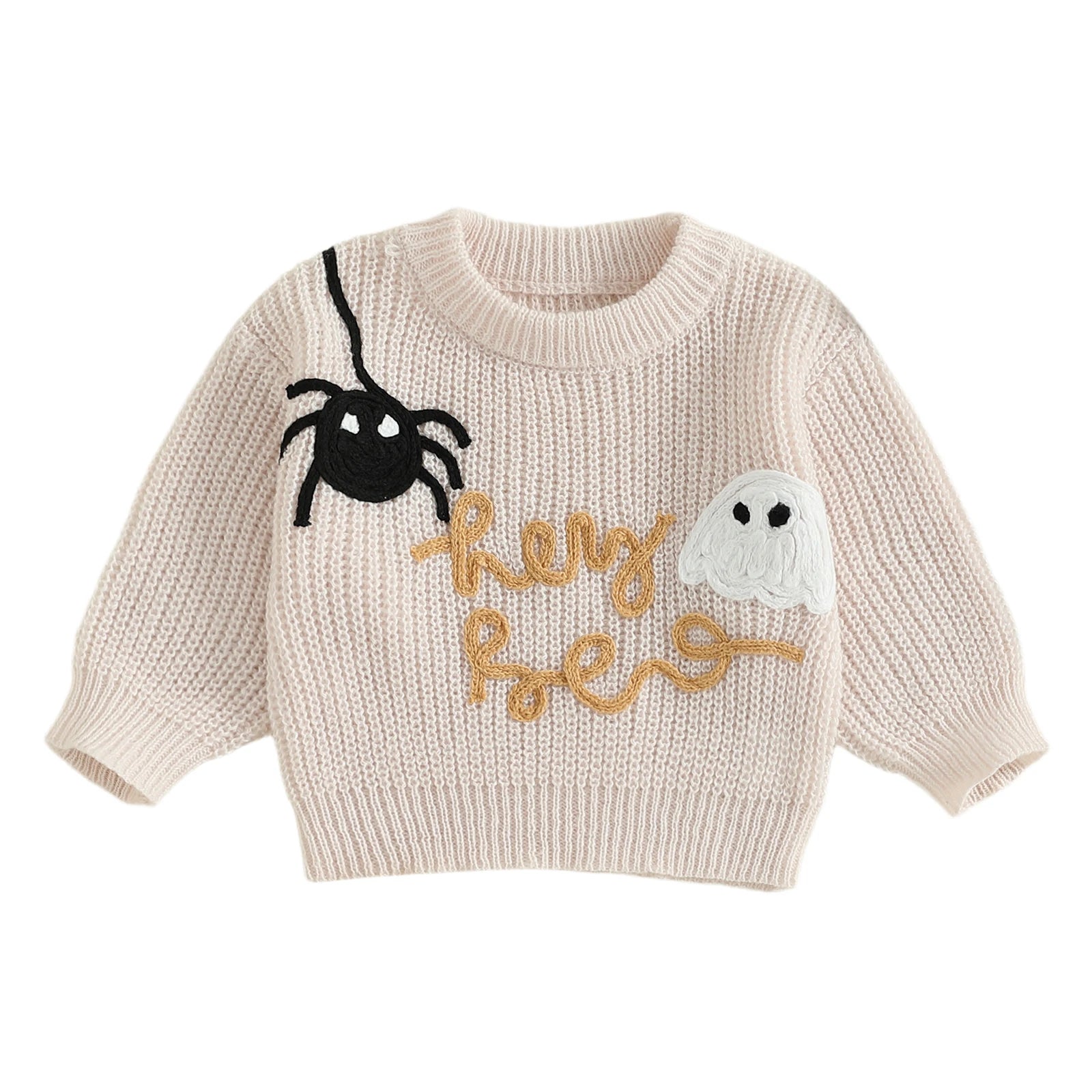 Toddler Boy Girl Halloween Sweater Infant Pumpkin Embroidery Pullover Warm Crewneck Long Sleeve Tops