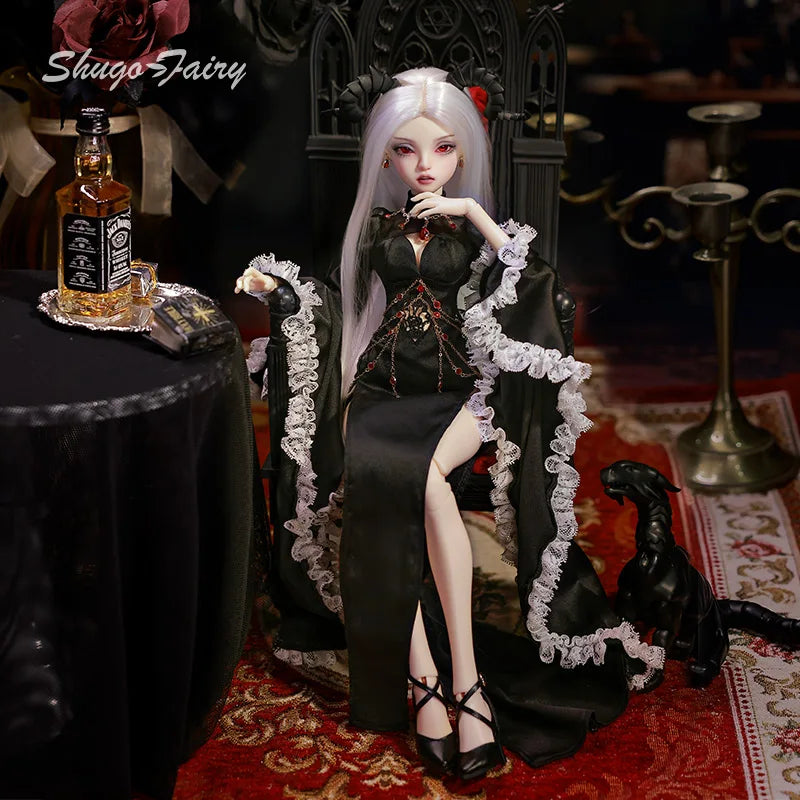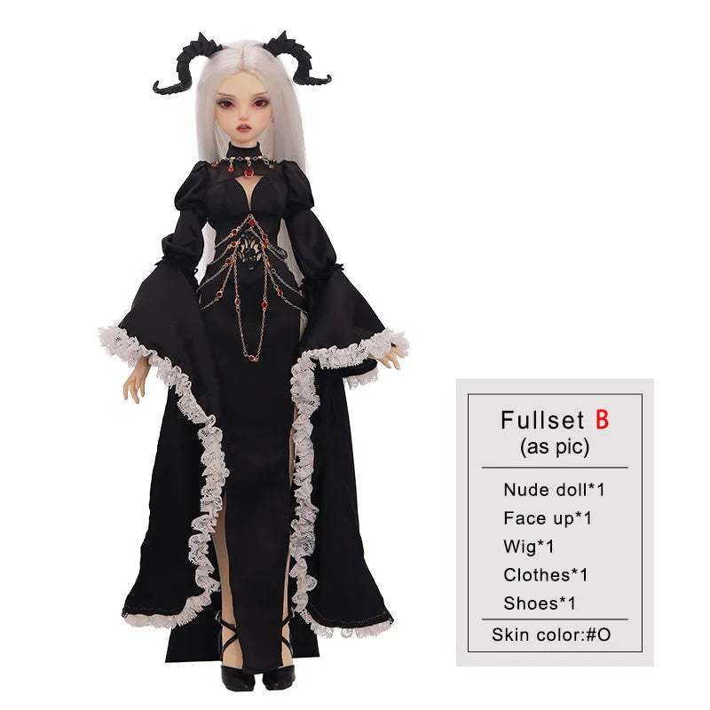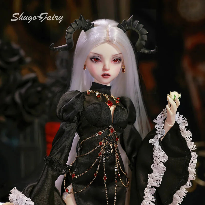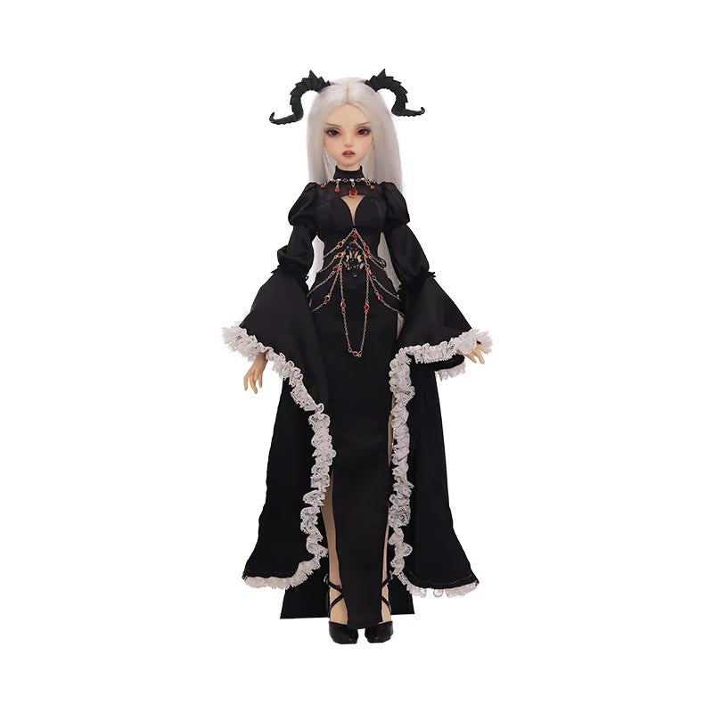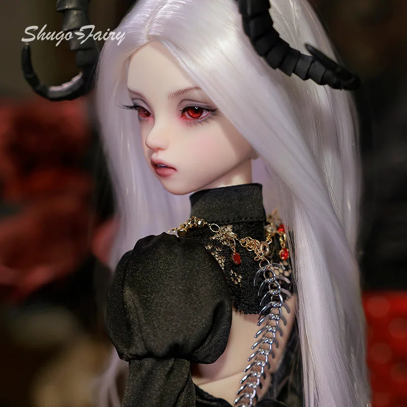 Bubo Bjd Doll 1/4 Barly Fantasy Dark Red Eyes Goat Witch Magic Black Robe Lace Vanguard Halter Fishbone Chain Girl Dolls Toy