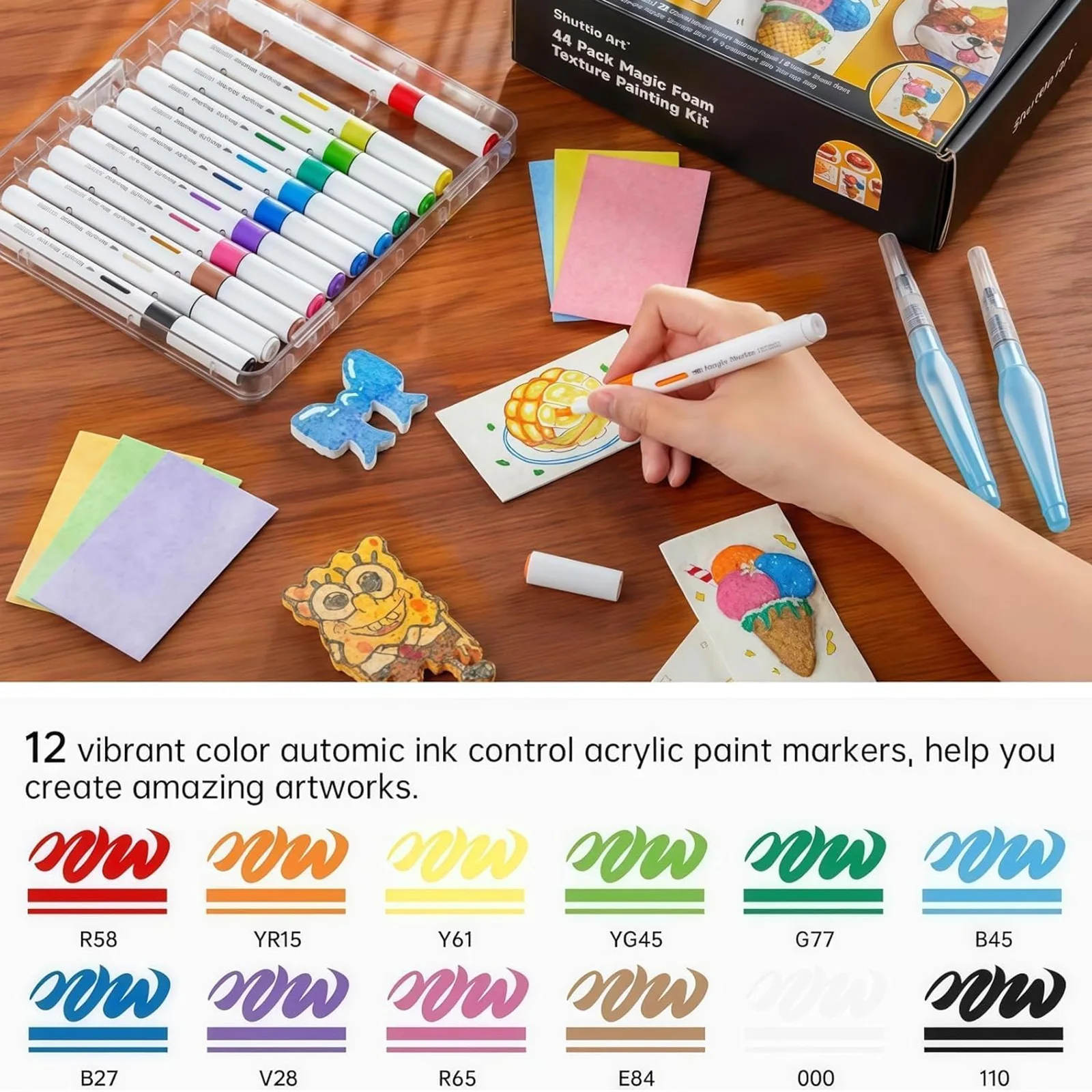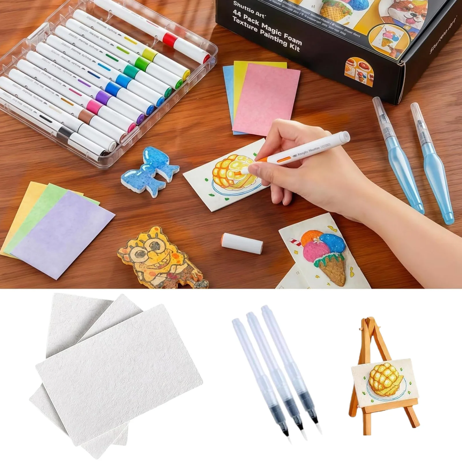 Foam Texture Painting Paper Handicraft Puffy Texture Paper Multi-Function Magic Painting Paper with Pen & Easel for Art Painting Features: