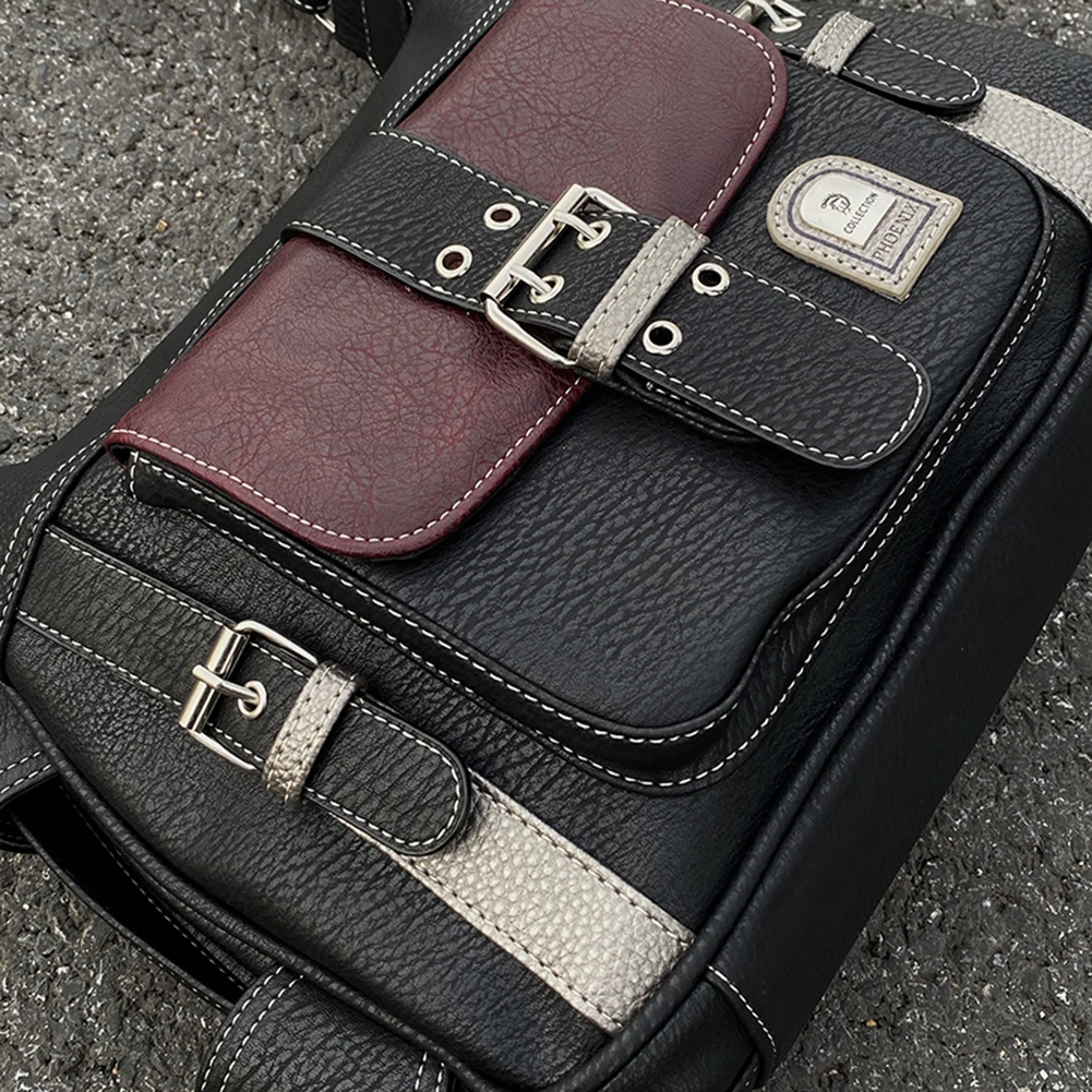 Girls Large Capacity Crossbody Bag Adjustable Strap Retro Sling Bag Multi-Pocket Contrast Color for Traveling Shopping Commuting