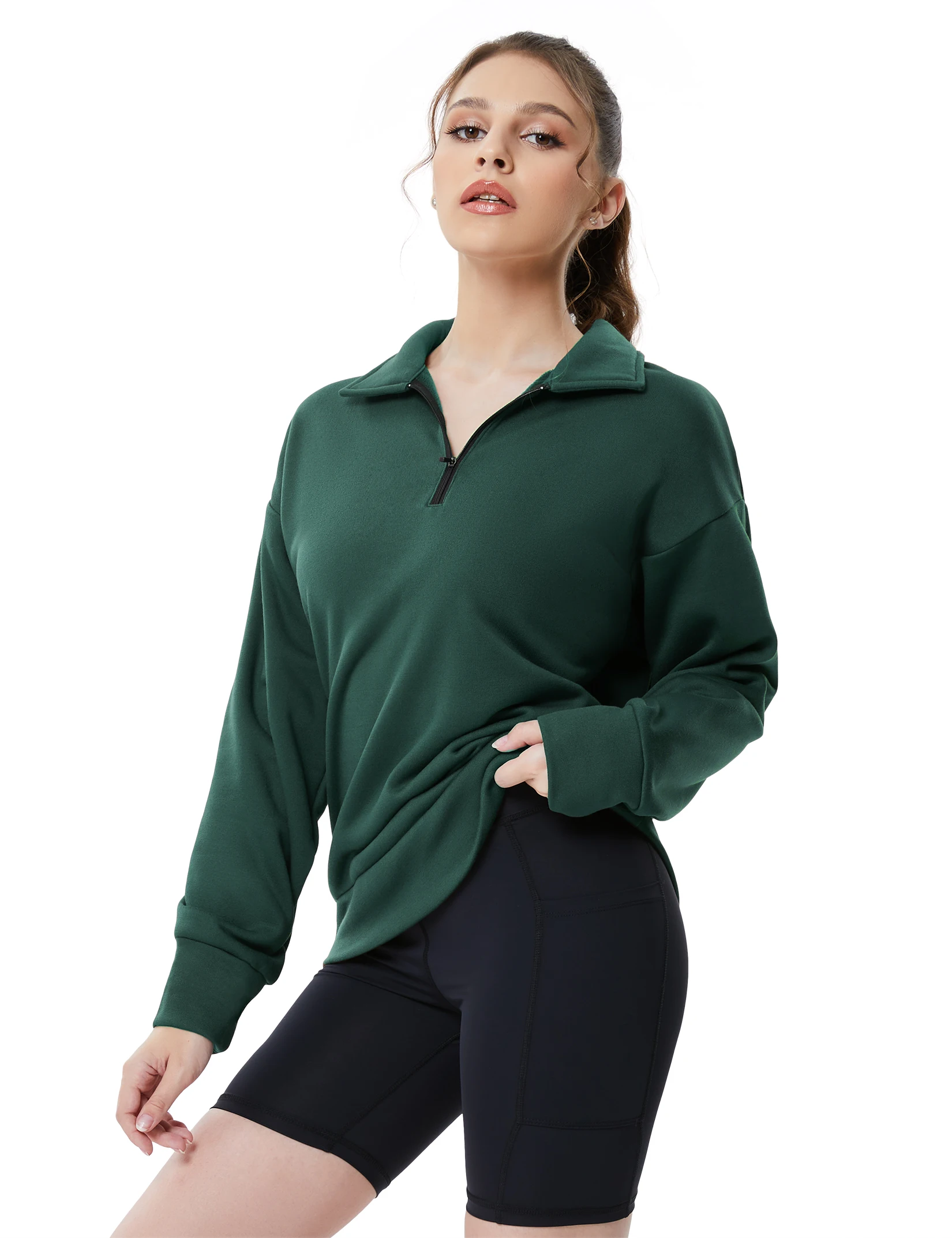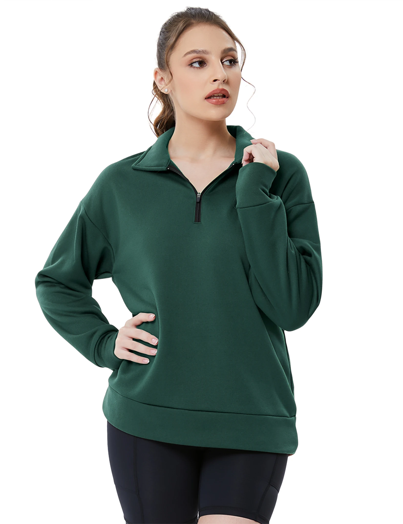 Half Zip Pullover Long Sleeve Women Pullover Sweatshirt Sport Hiking Clothes Fashion M