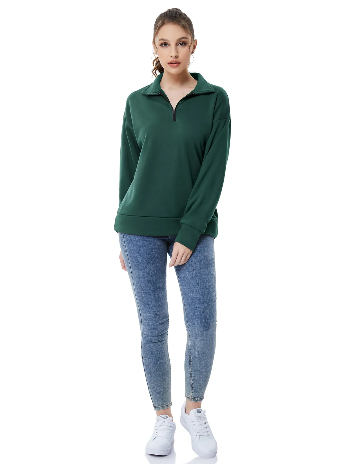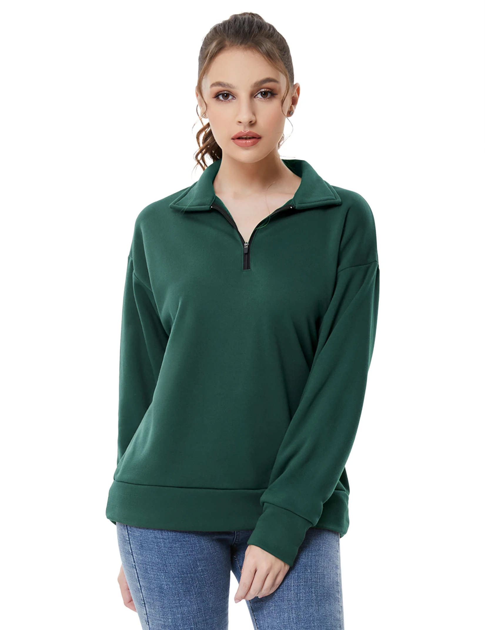 【1/4 Zip Pullover】1/4 zip pullover women sweatshirt,great design,the v neck perfectly show your excellent neck line,or just zip it when get cold,so convenient for all of you.