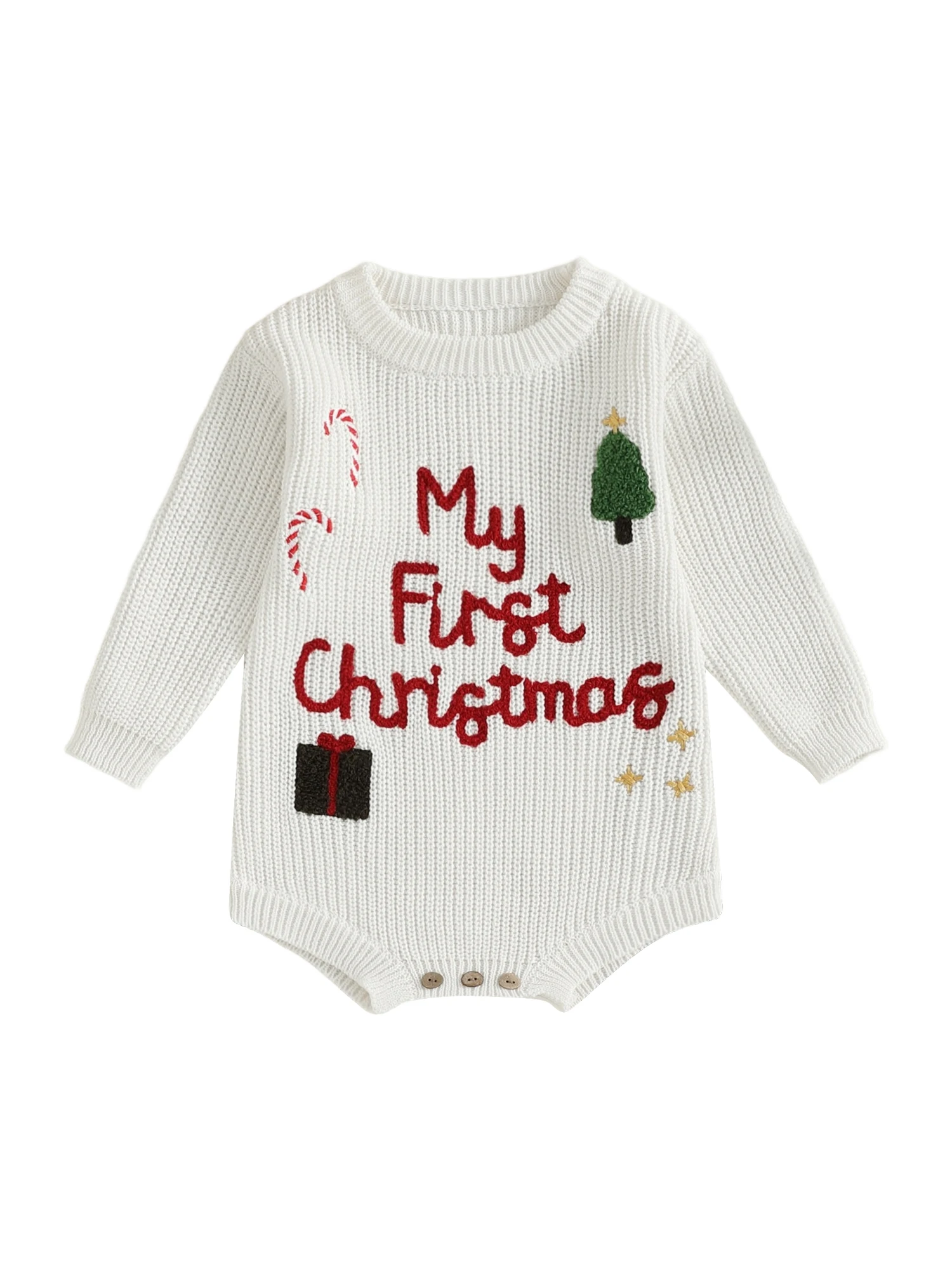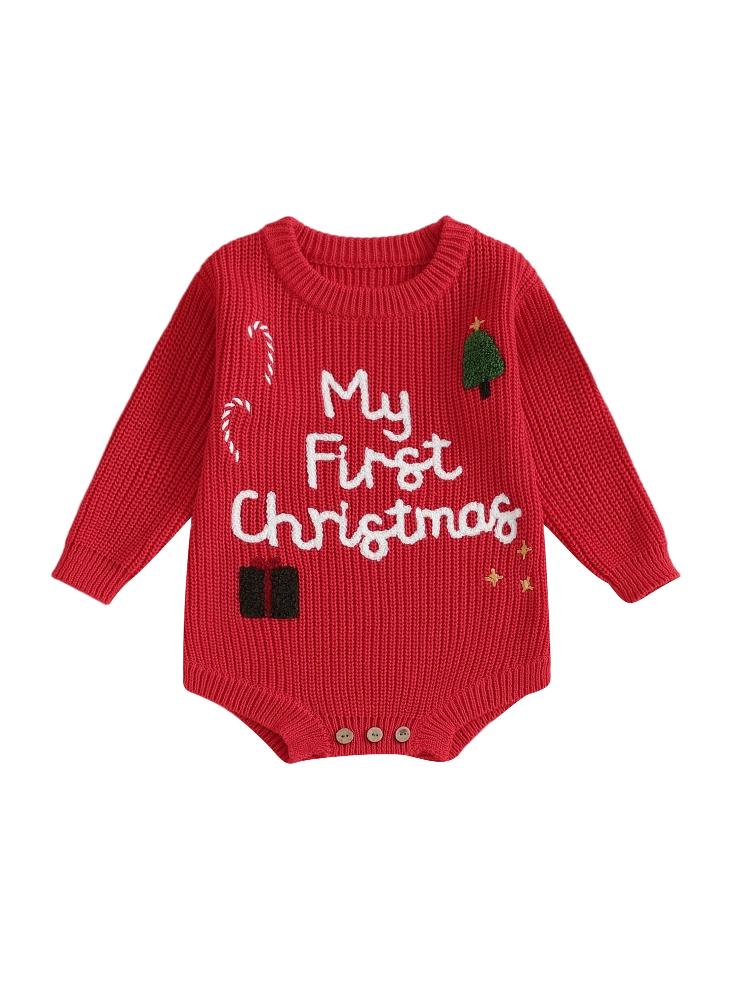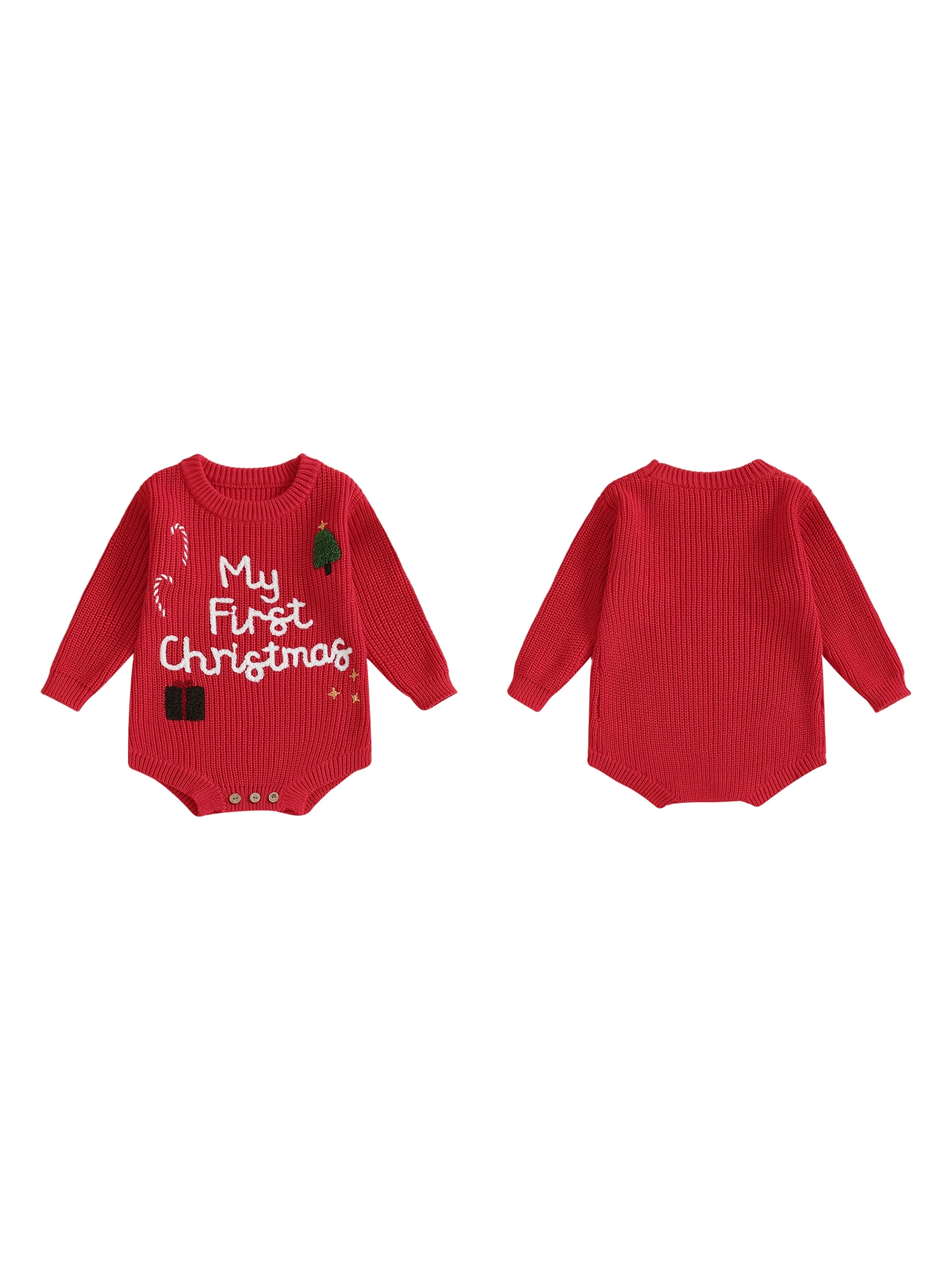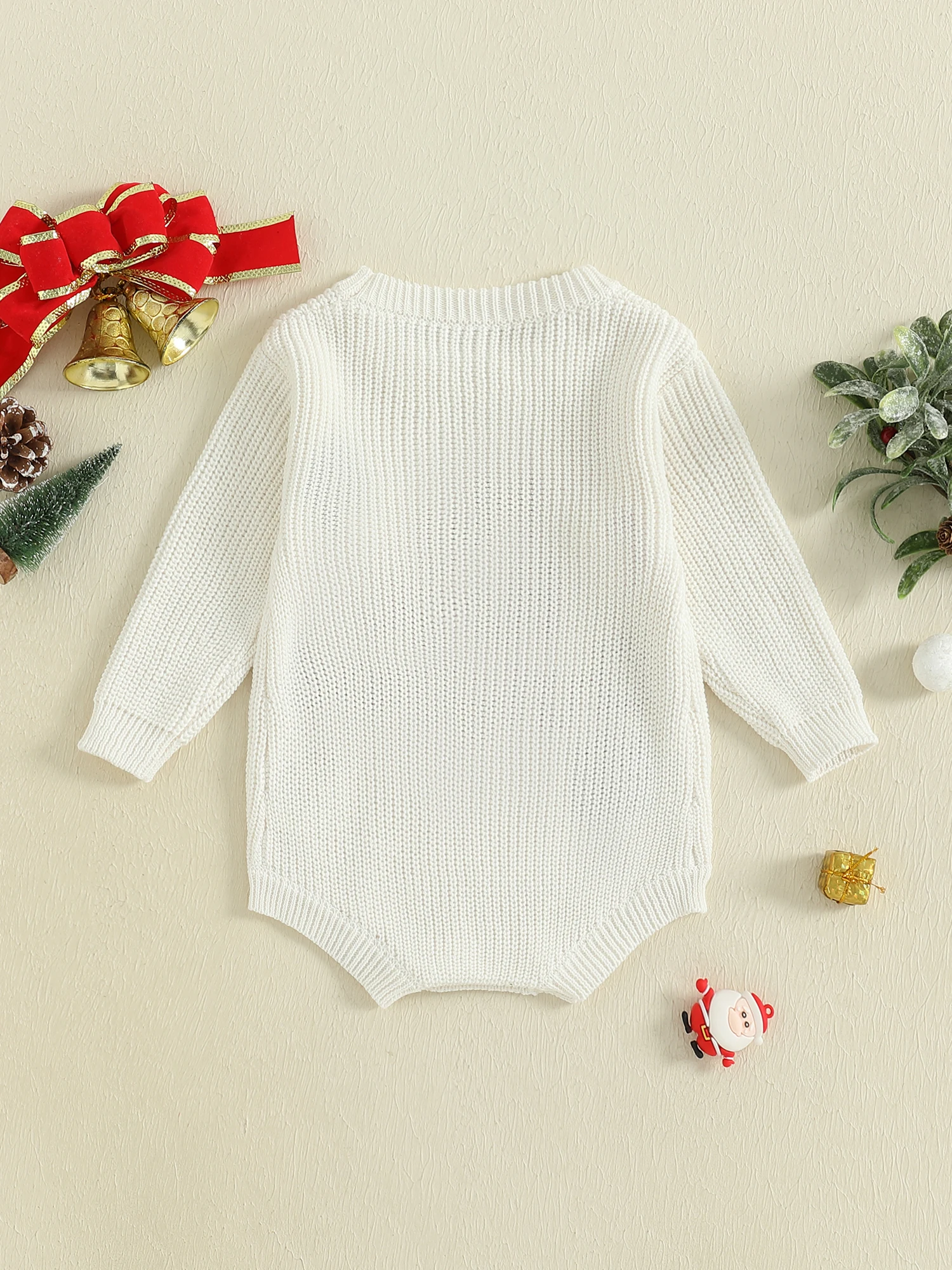 Baby Girl Christmas Sweater Romper Long Sleeve O Neck Letter Candy Cane Embroidery Jumpsuit