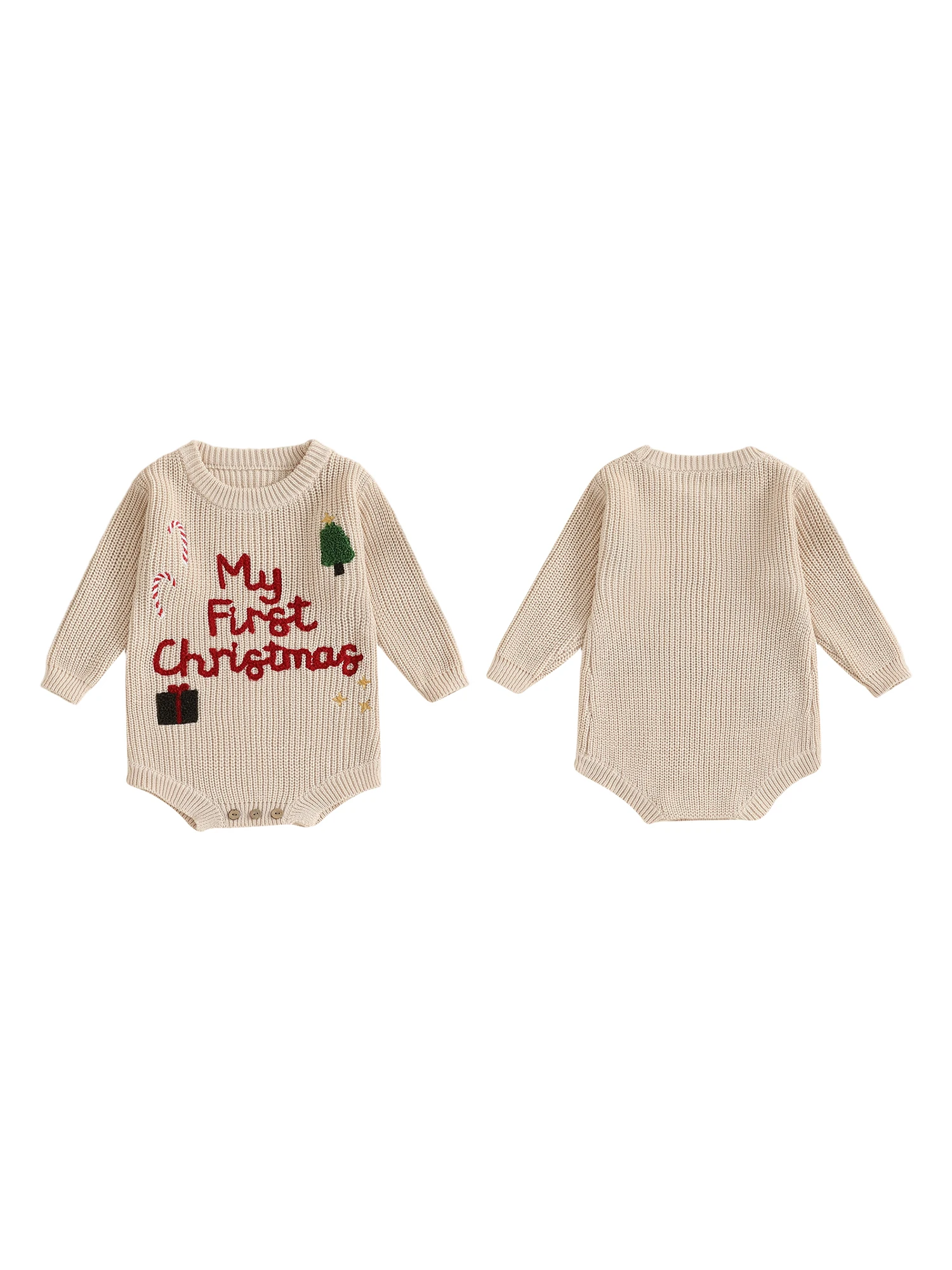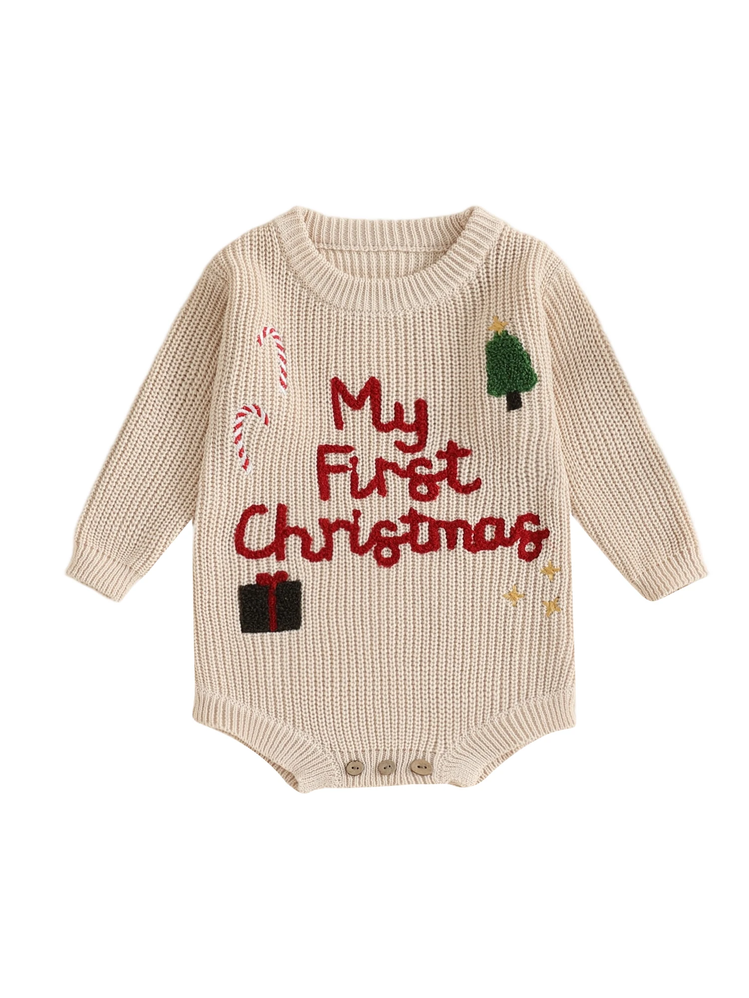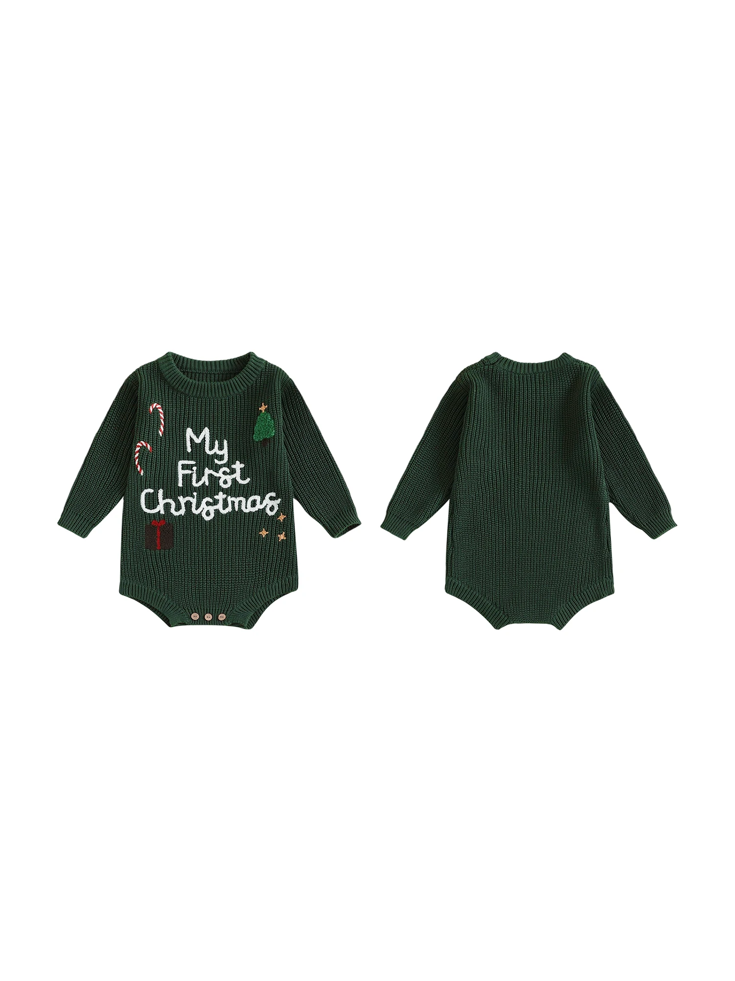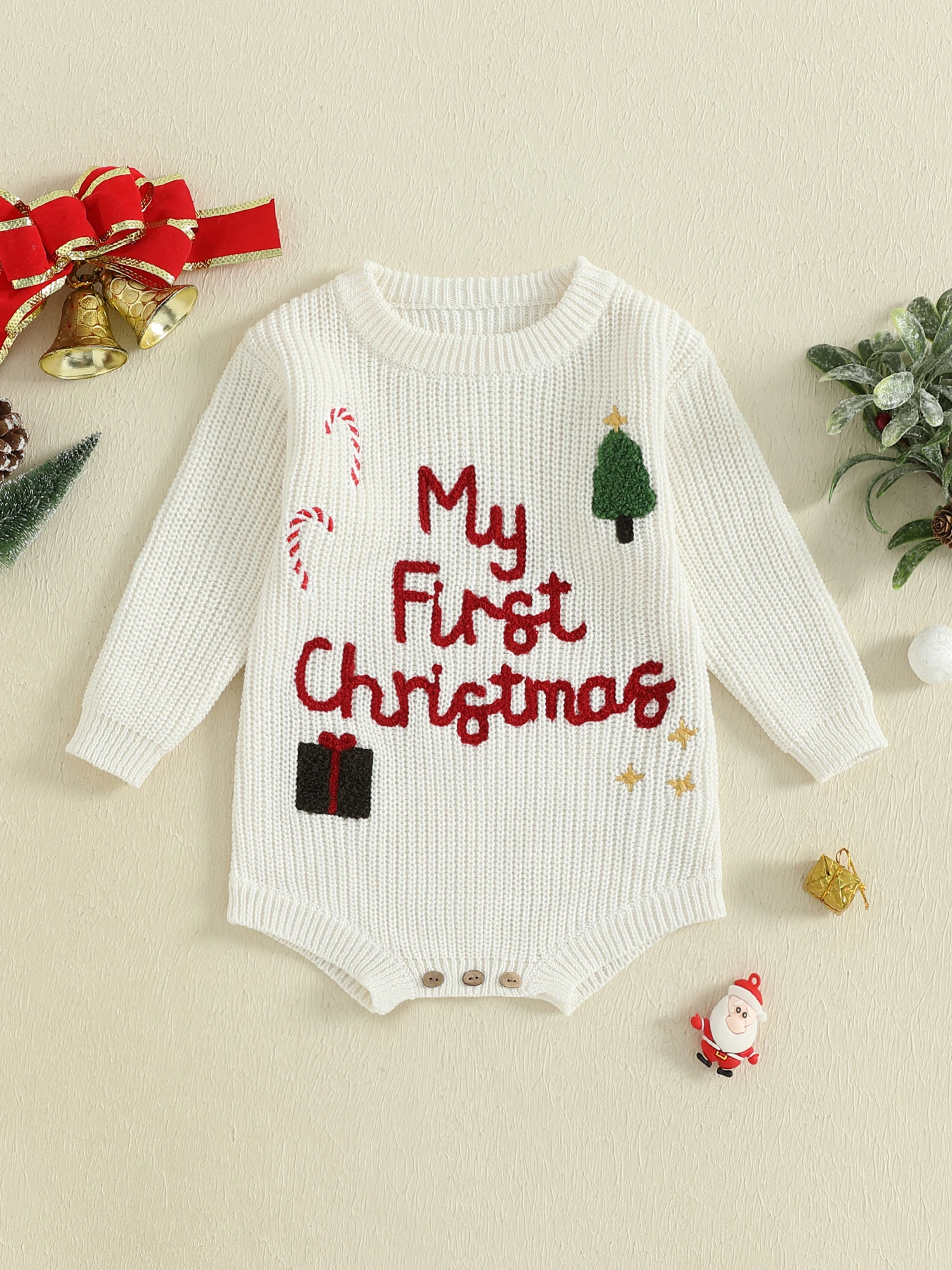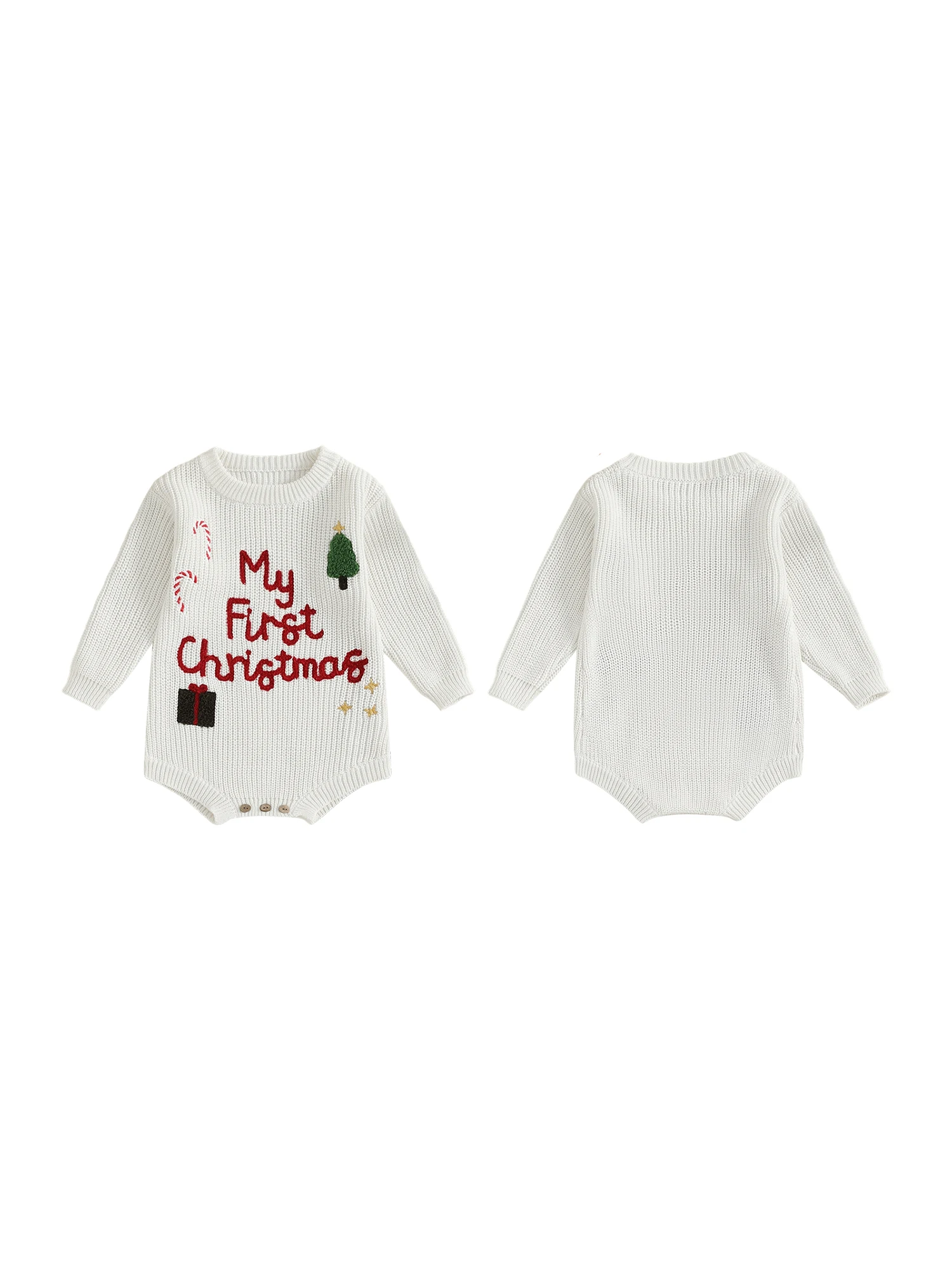 Baby Girl Christmas Sweater Romper Long Sleeve O Neck Letter Candy Cane Embroidery Jumpsuit