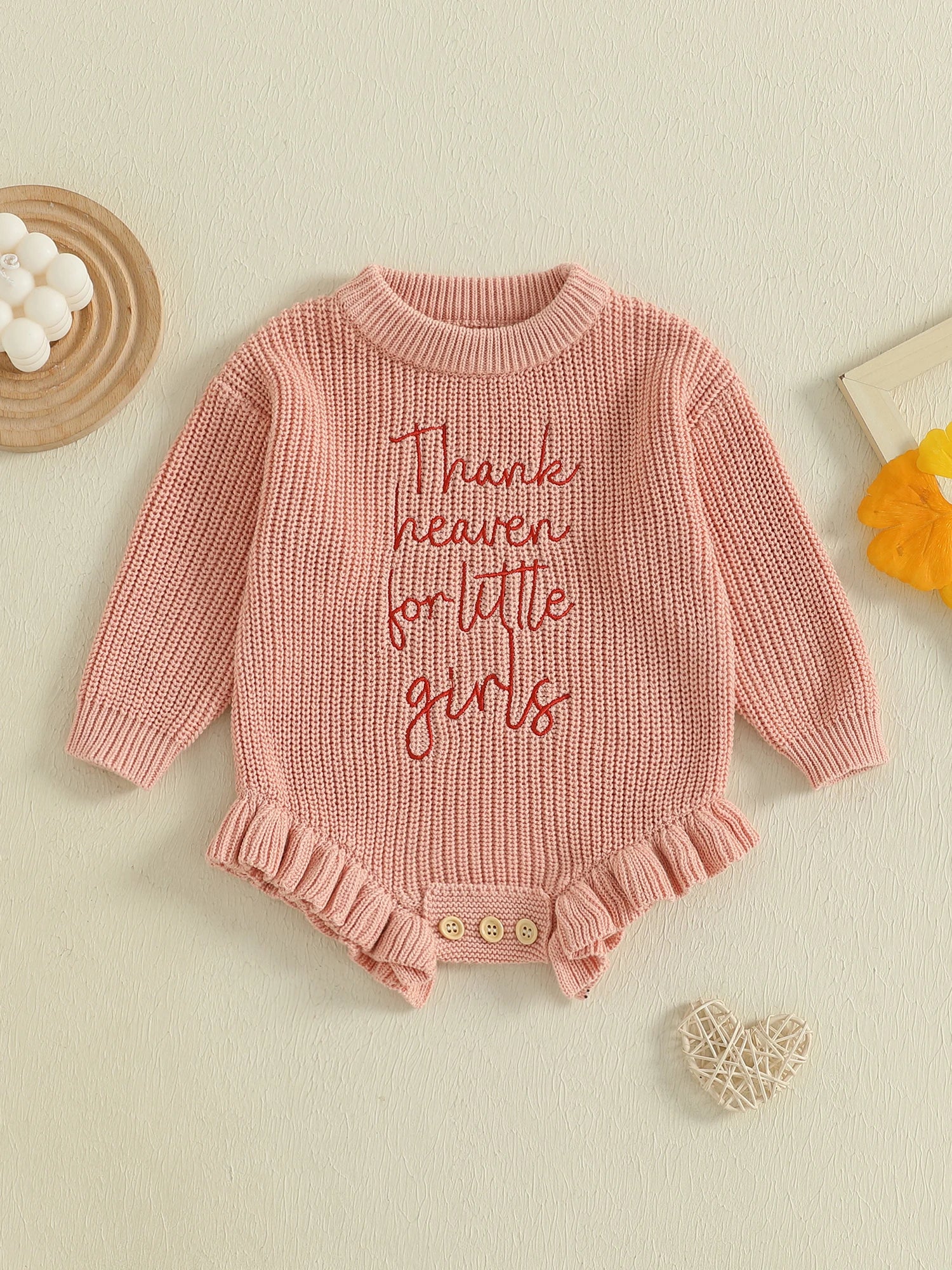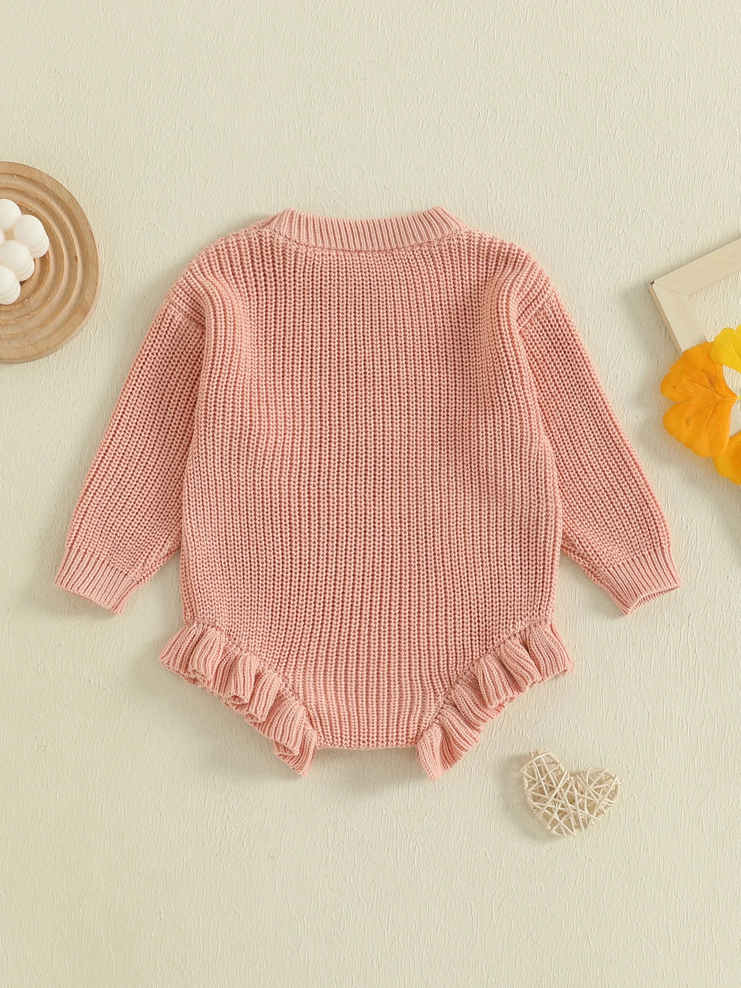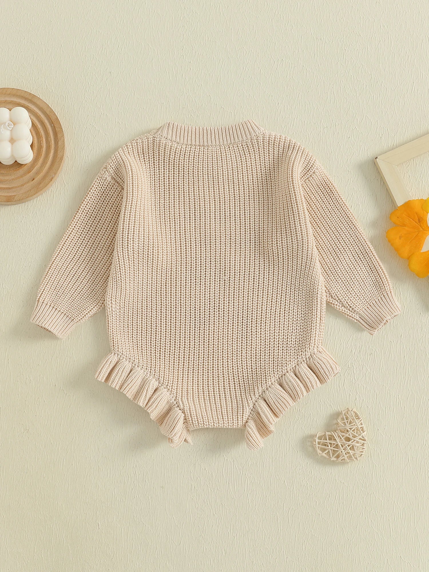 Baby Girls Sweater Rompers Letter Pattern Ruffles Crew Neck Long Sleeve Fall Bodysuits Jumpsuits