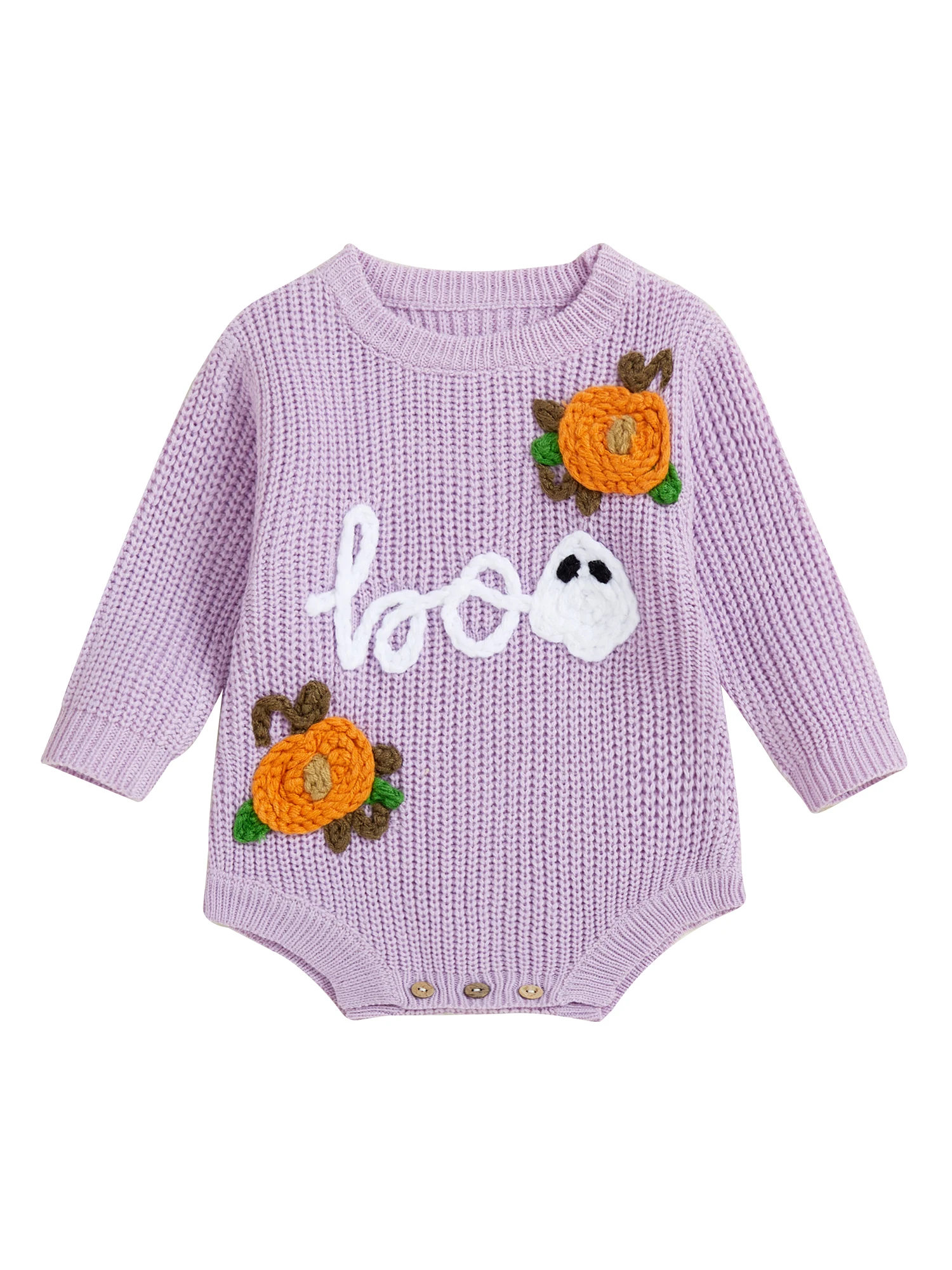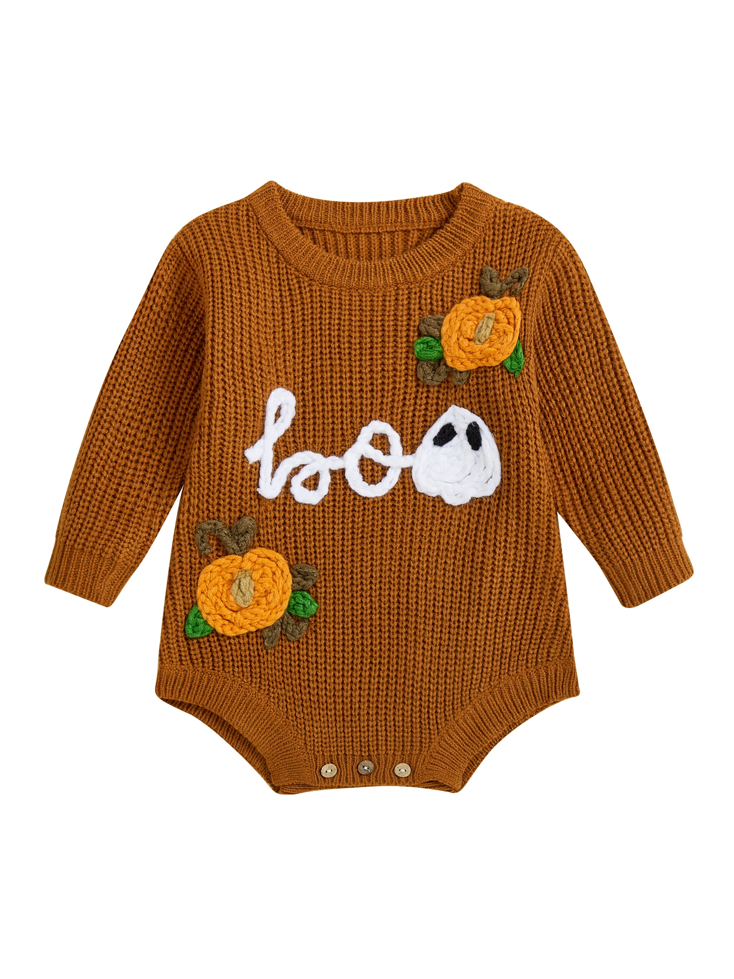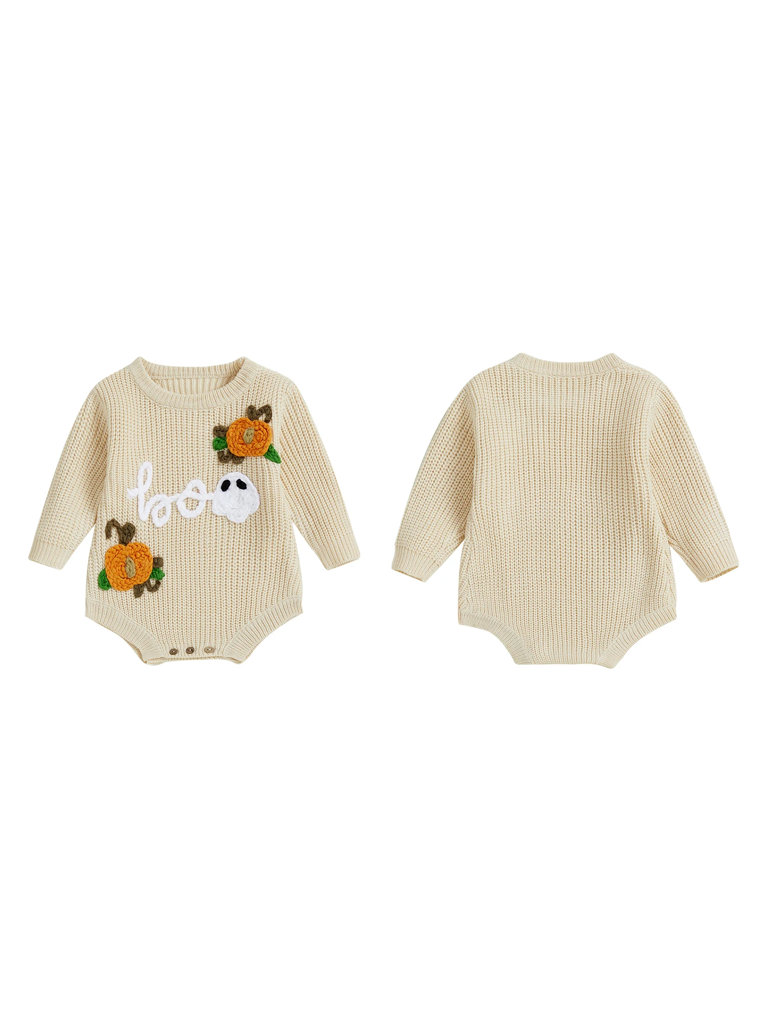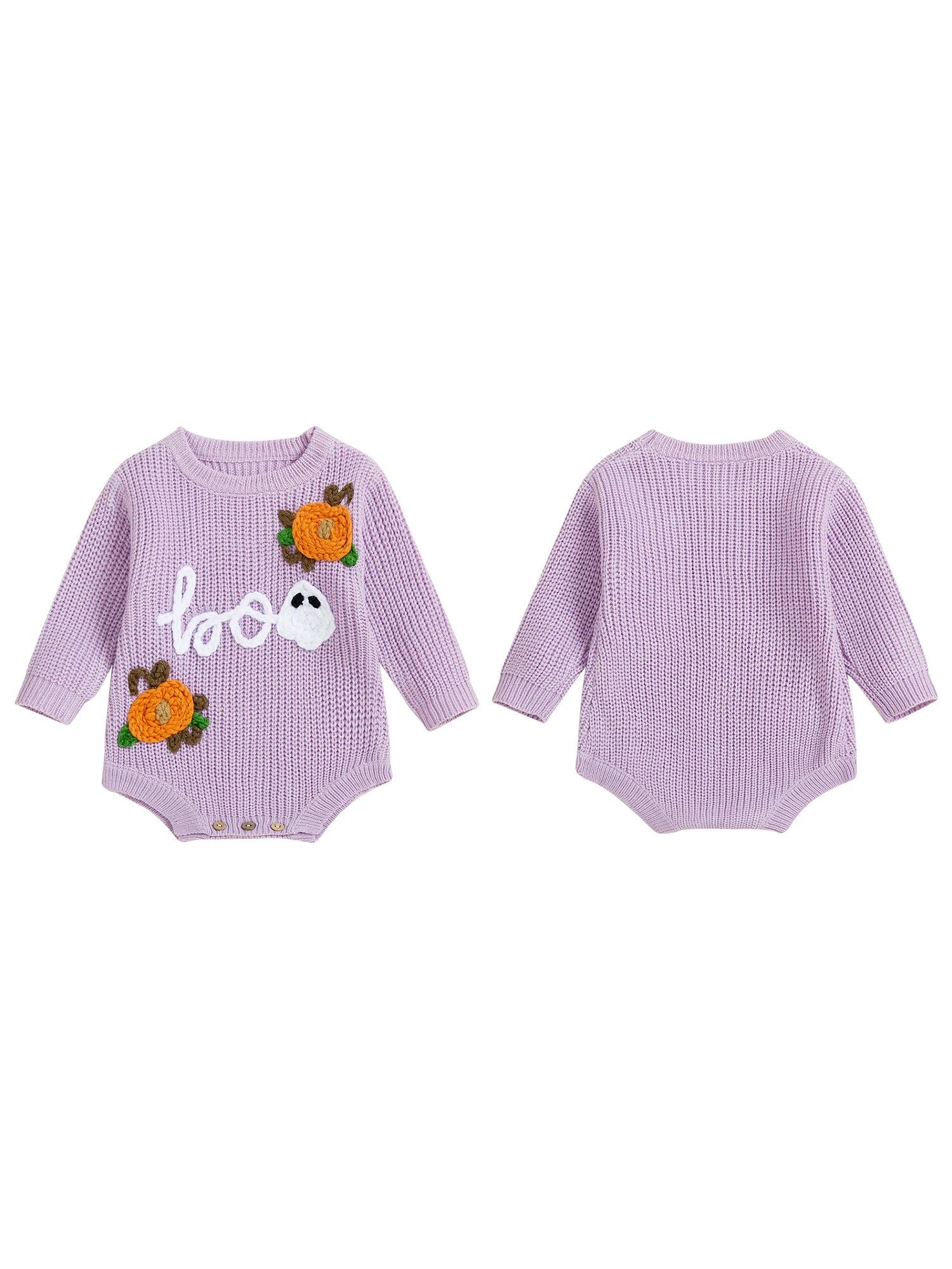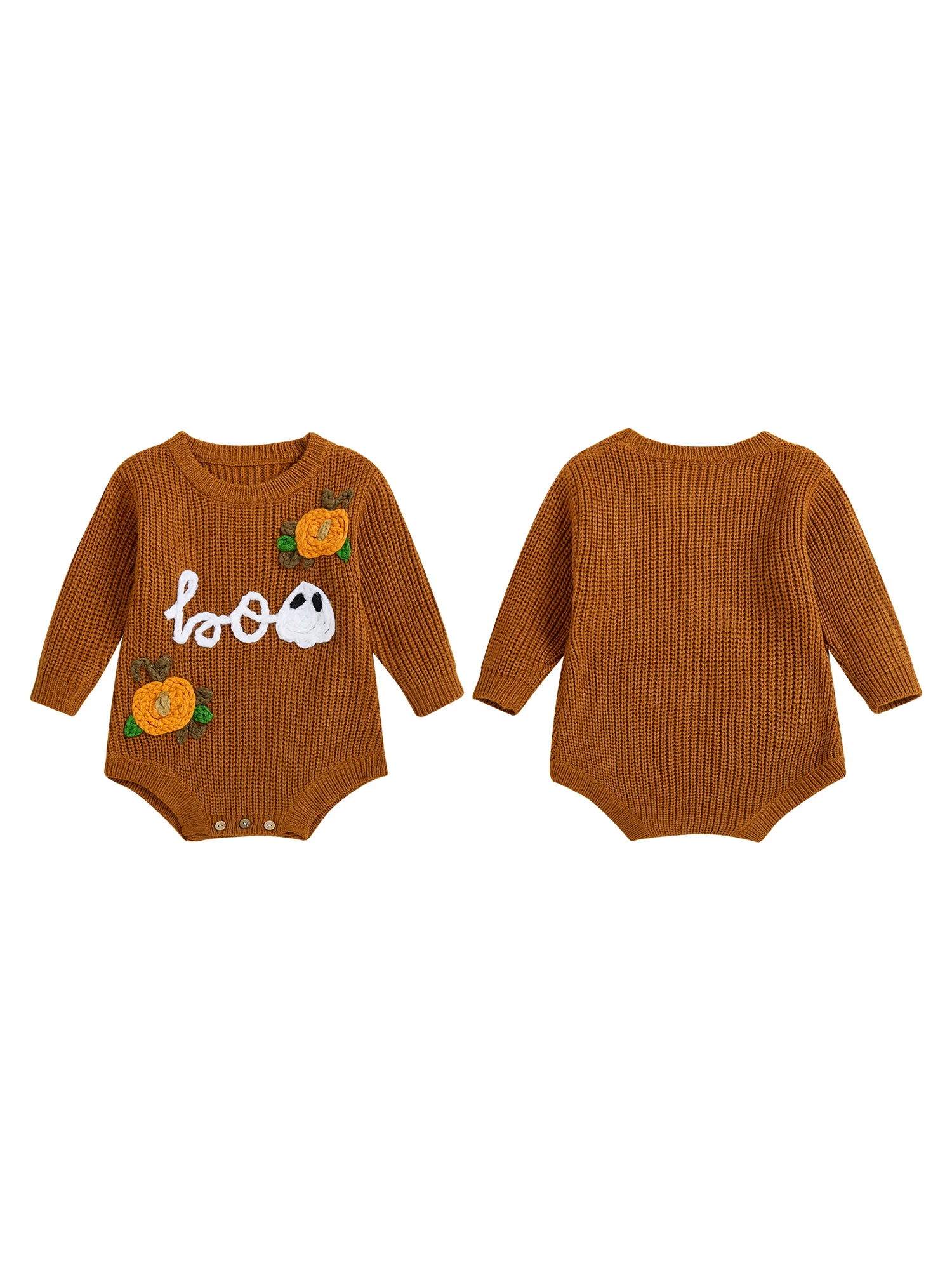 Baby Boys Girls Halloween Romper Long Sleeve Pumpkin Ghost Embroidery Knit Bodysuit Newborn Fall Playsuit
