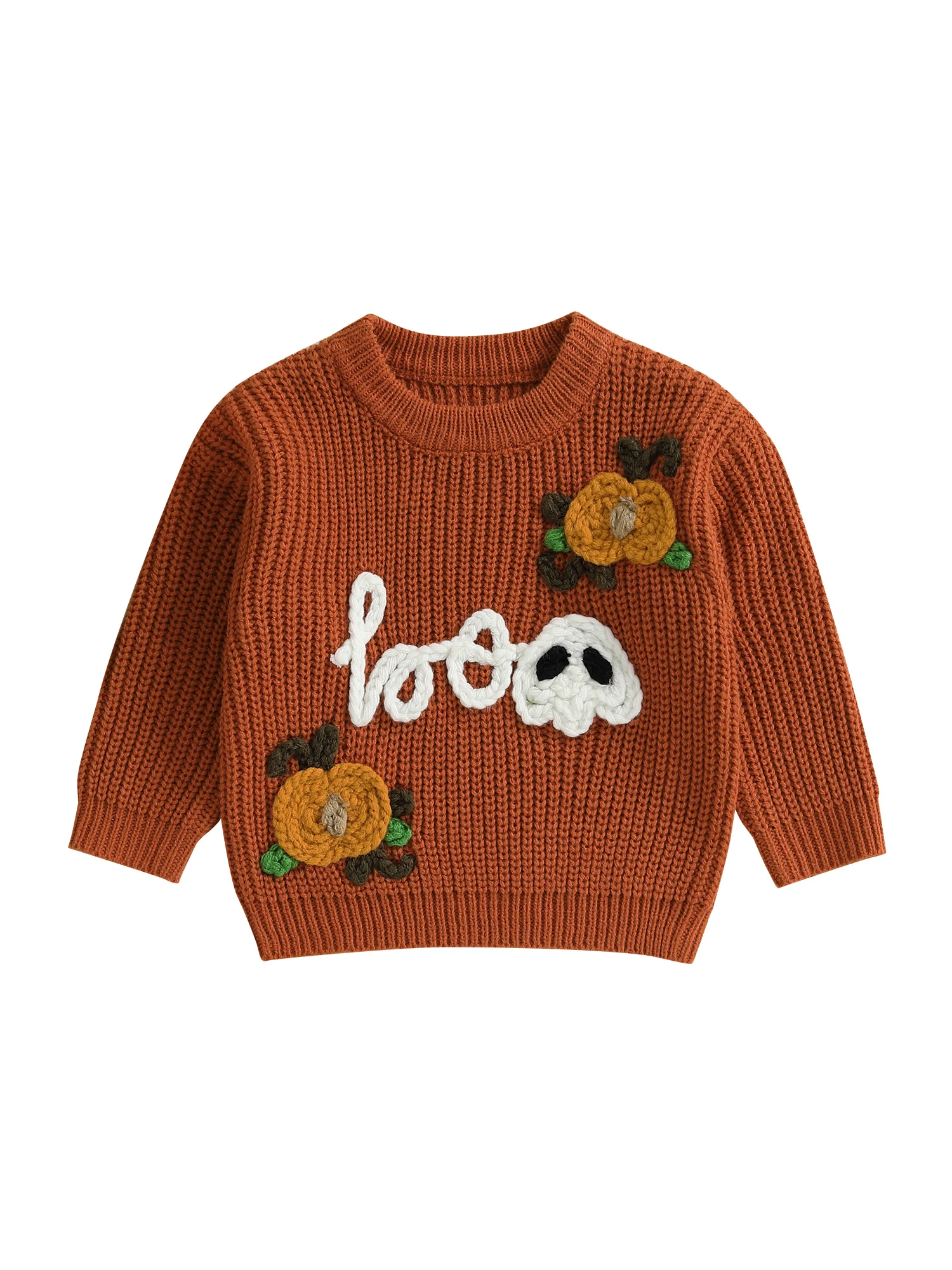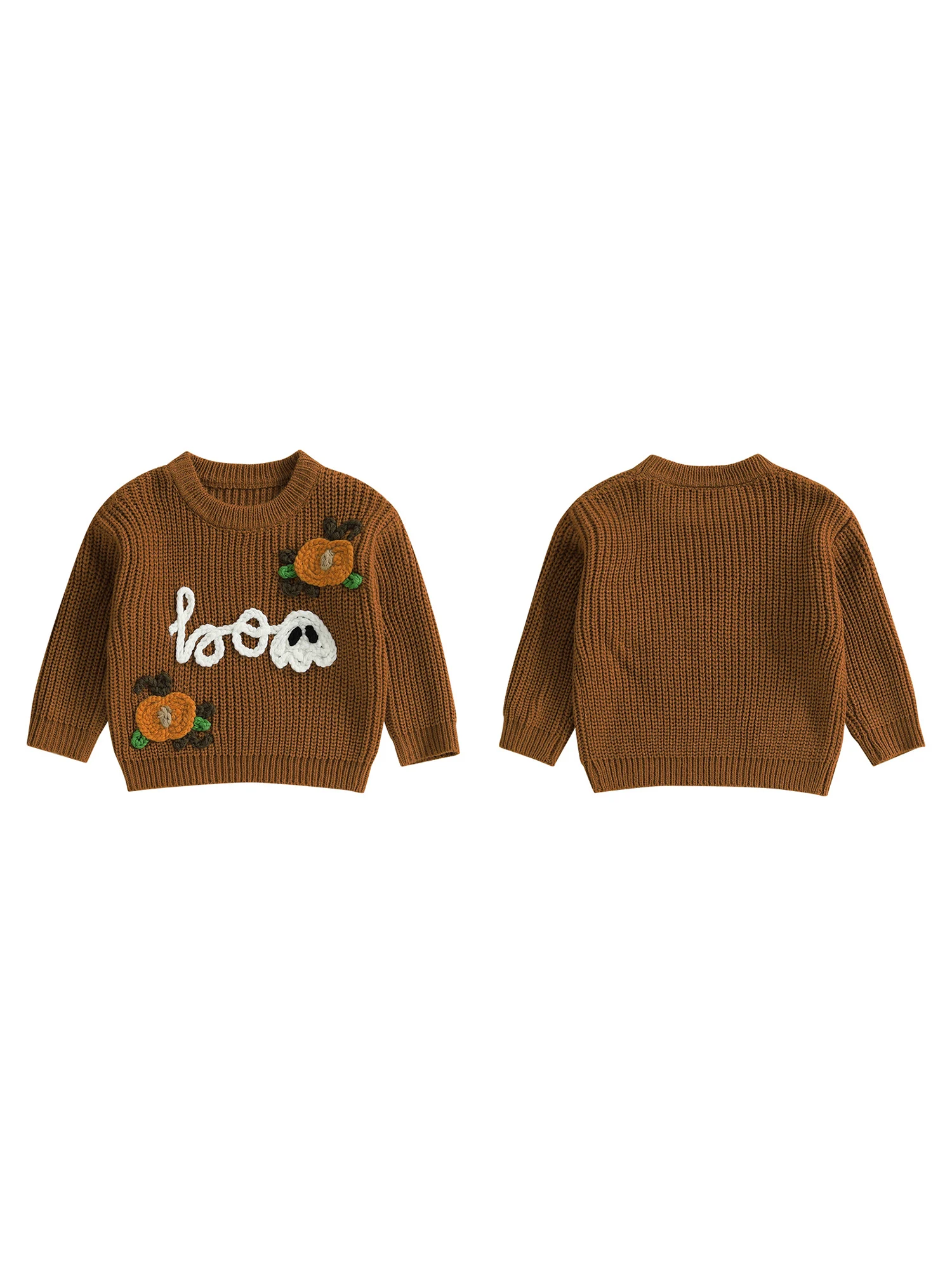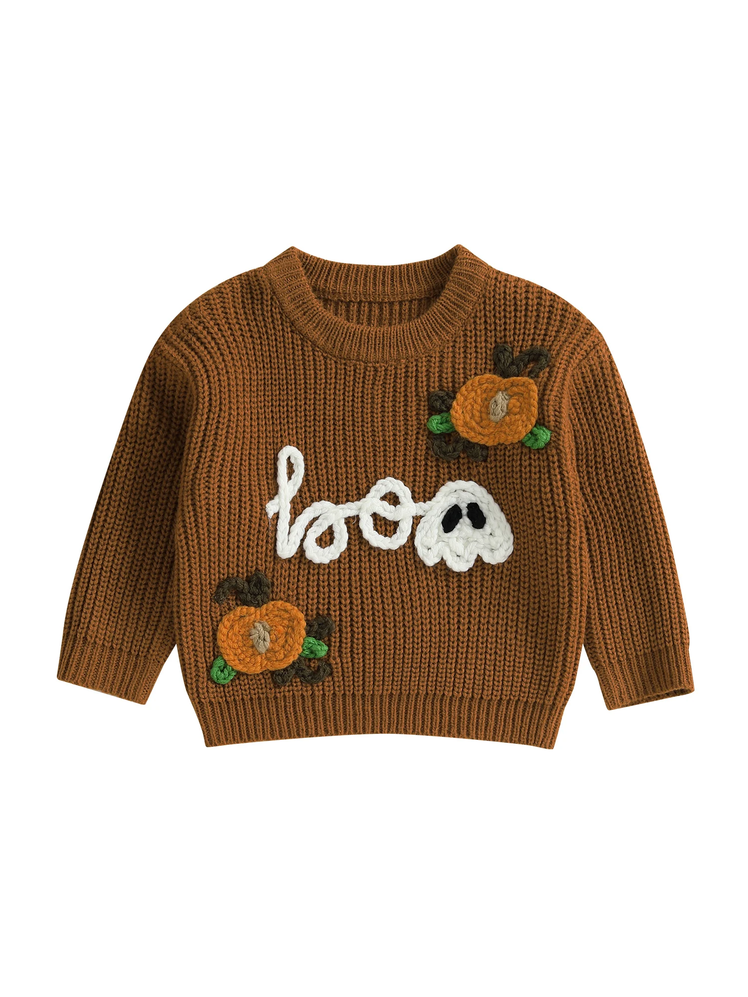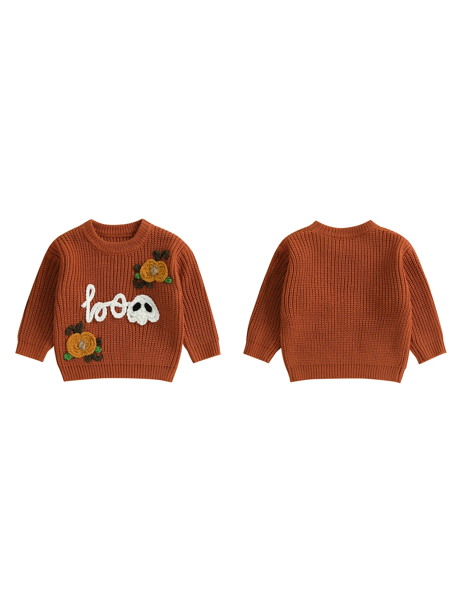 Kids Halloween Sweater with Spooky Pumpkin Embroidery and Cozy Crew Neck - Long Sleeve Knitwear Pullover for Boys and Girls