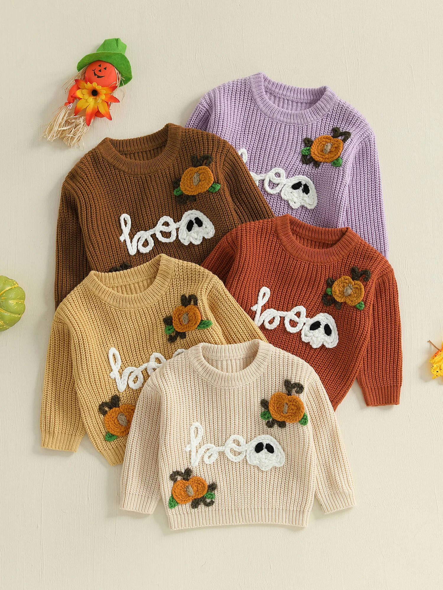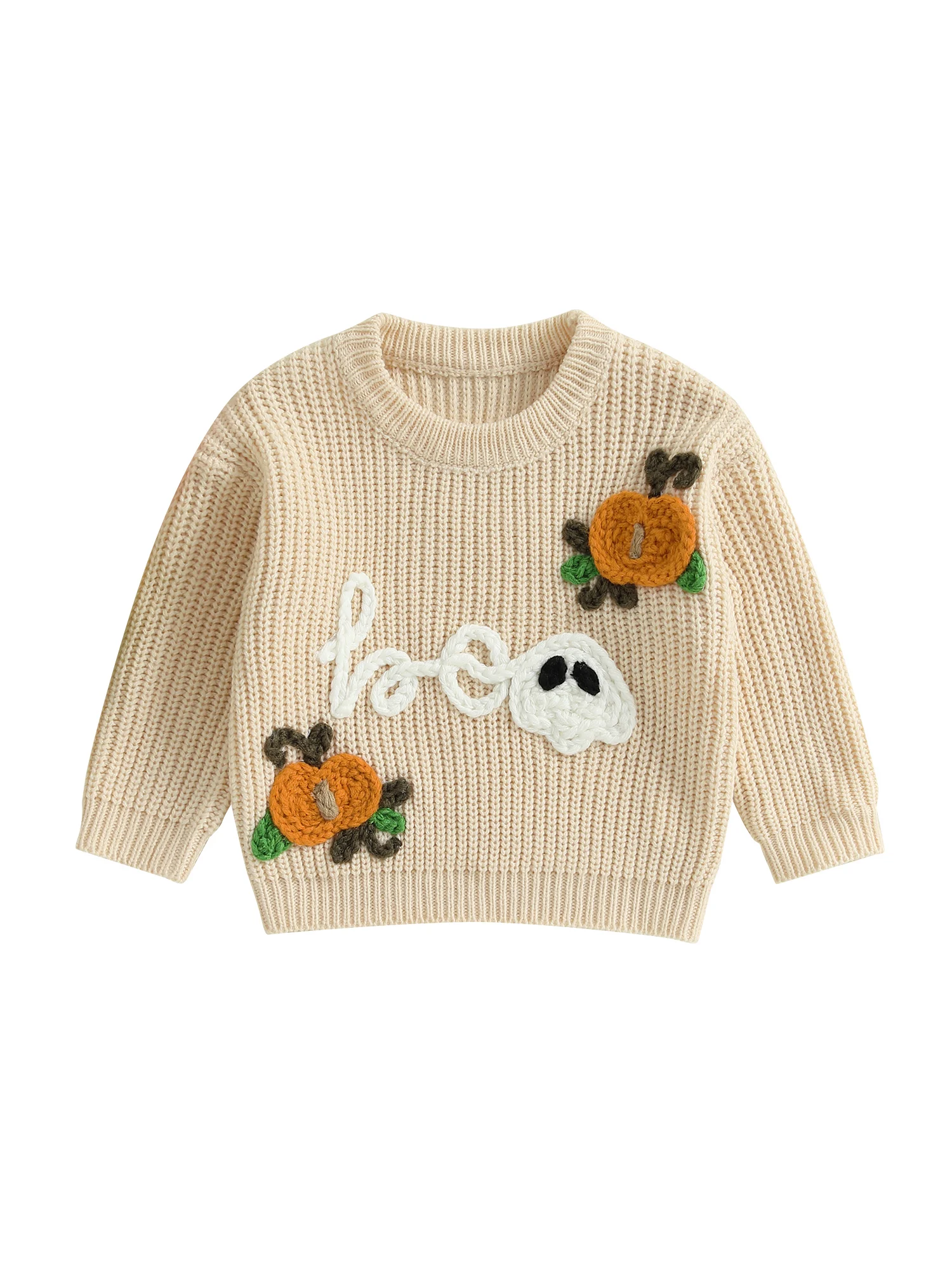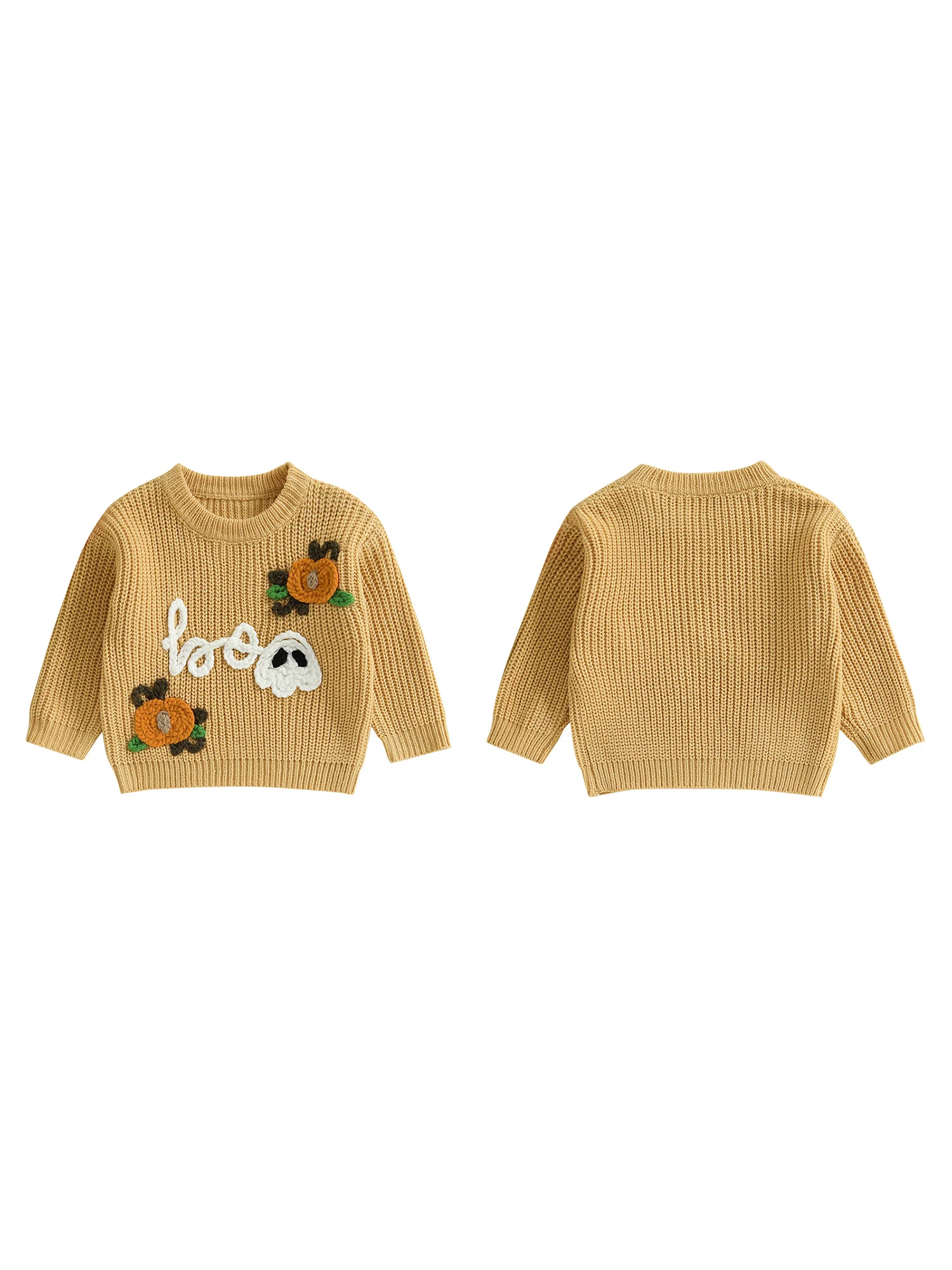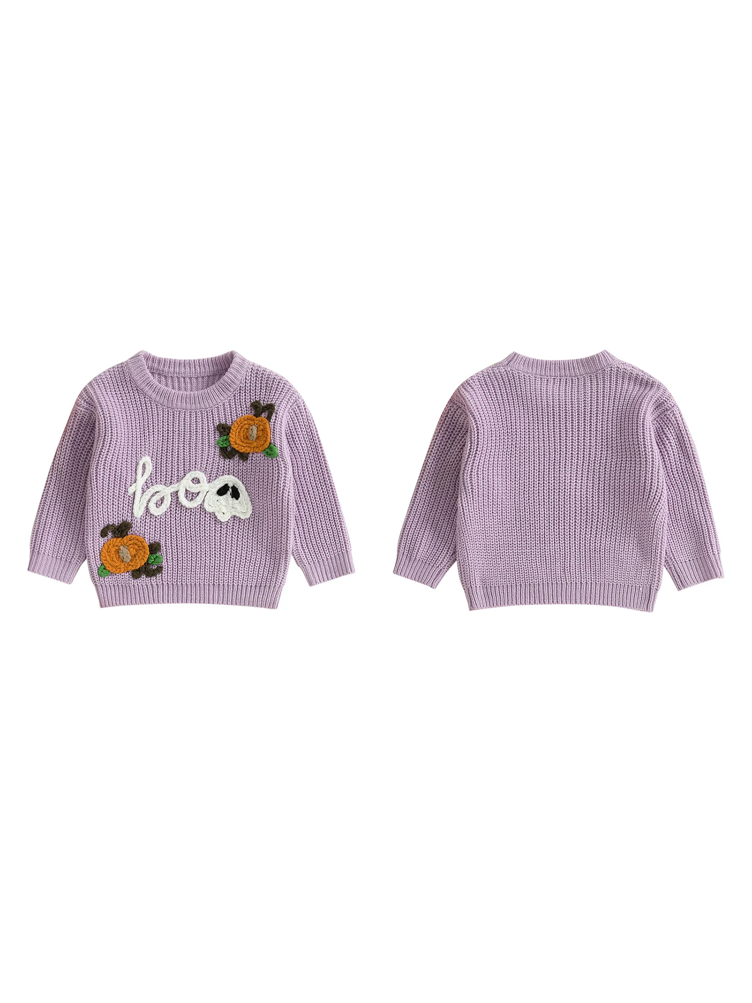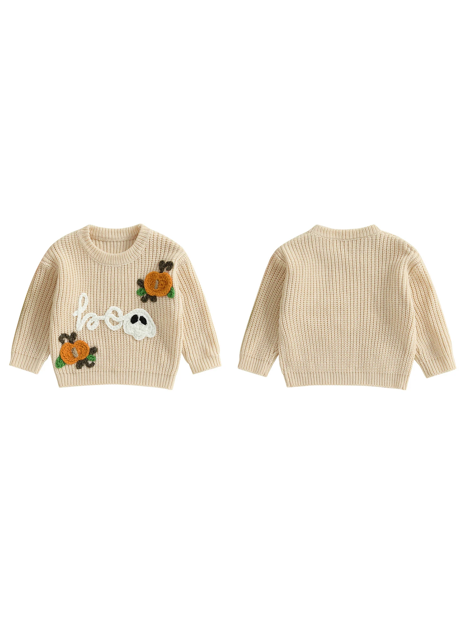 Kids Halloween Sweater with Spooky Pumpkin Embroidery and Cozy Crew Neck - Long Sleeve Knitwear Pullover for Boys and Girls