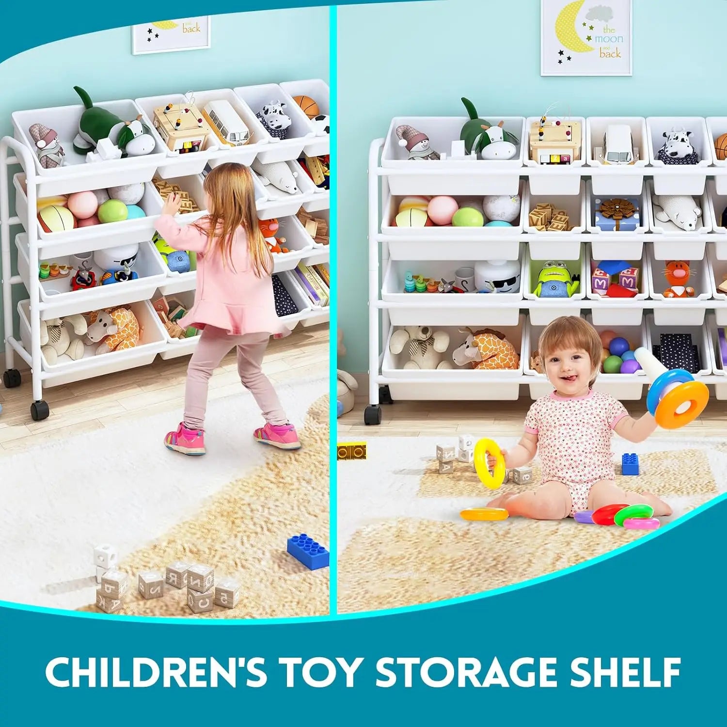 Kids Toy Storage Organizer with 20 Plastic Bins, 4-Tier Metal Toy Storage Rack, Extra Large Toy Organizer and Storage Bins for K