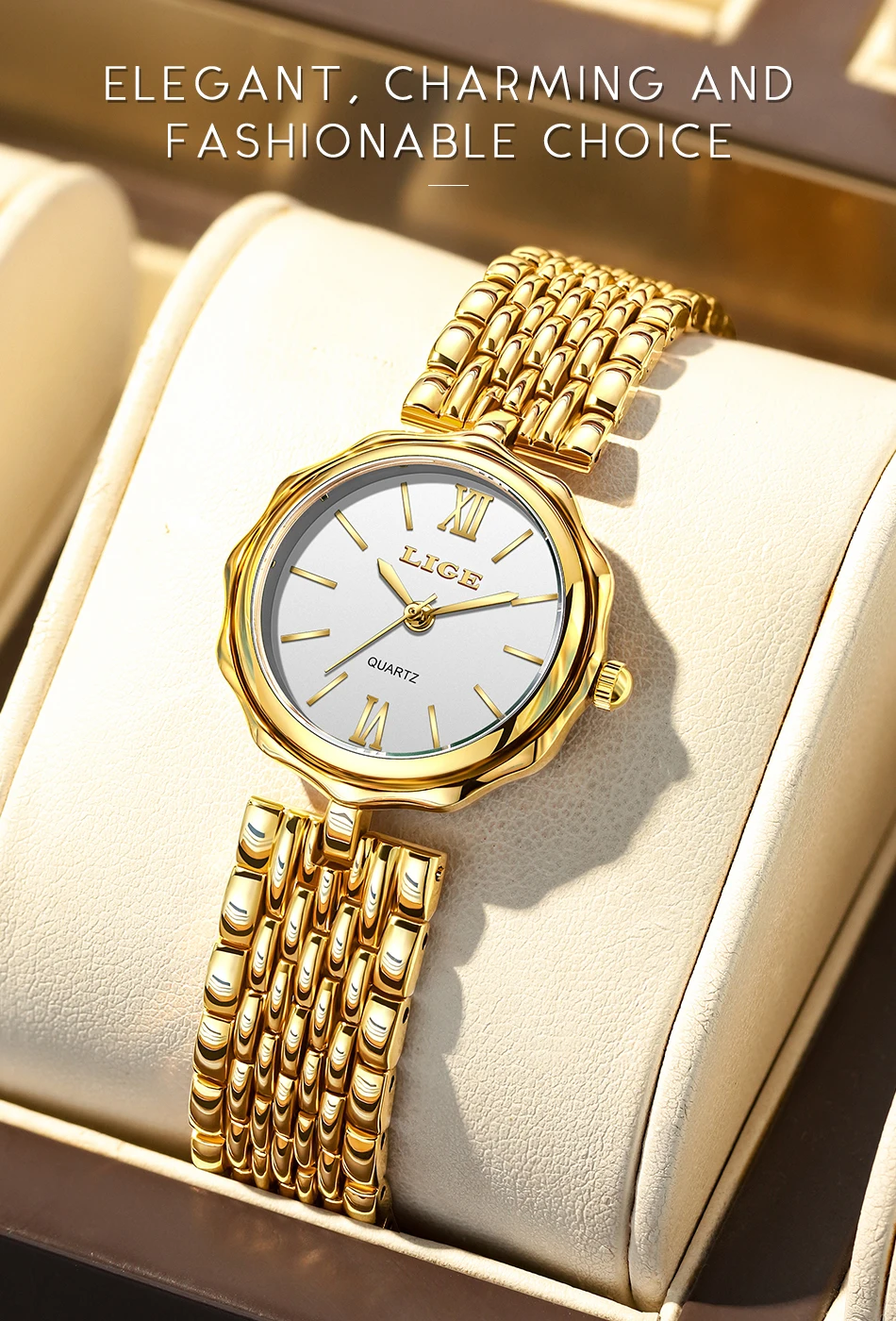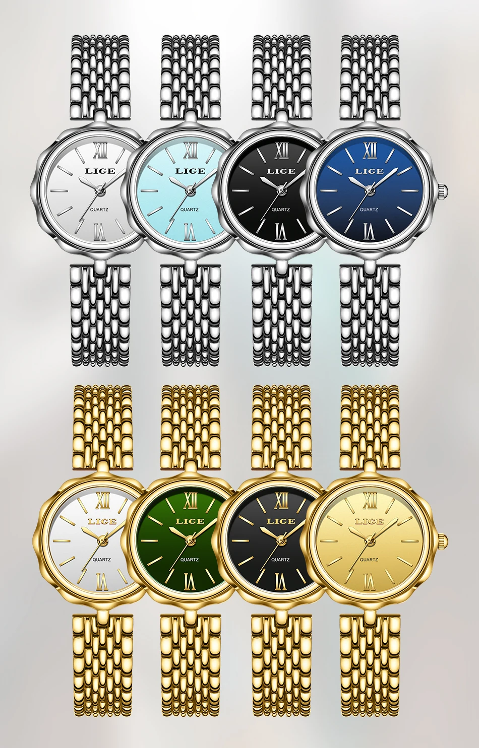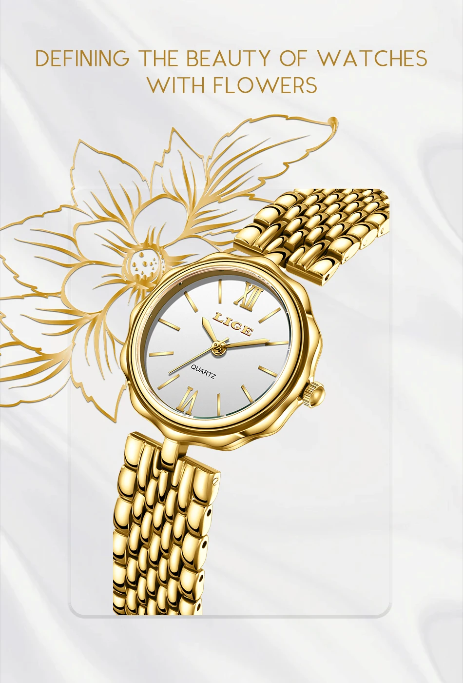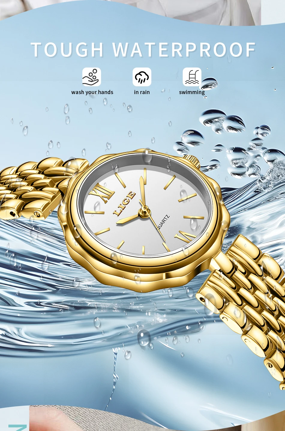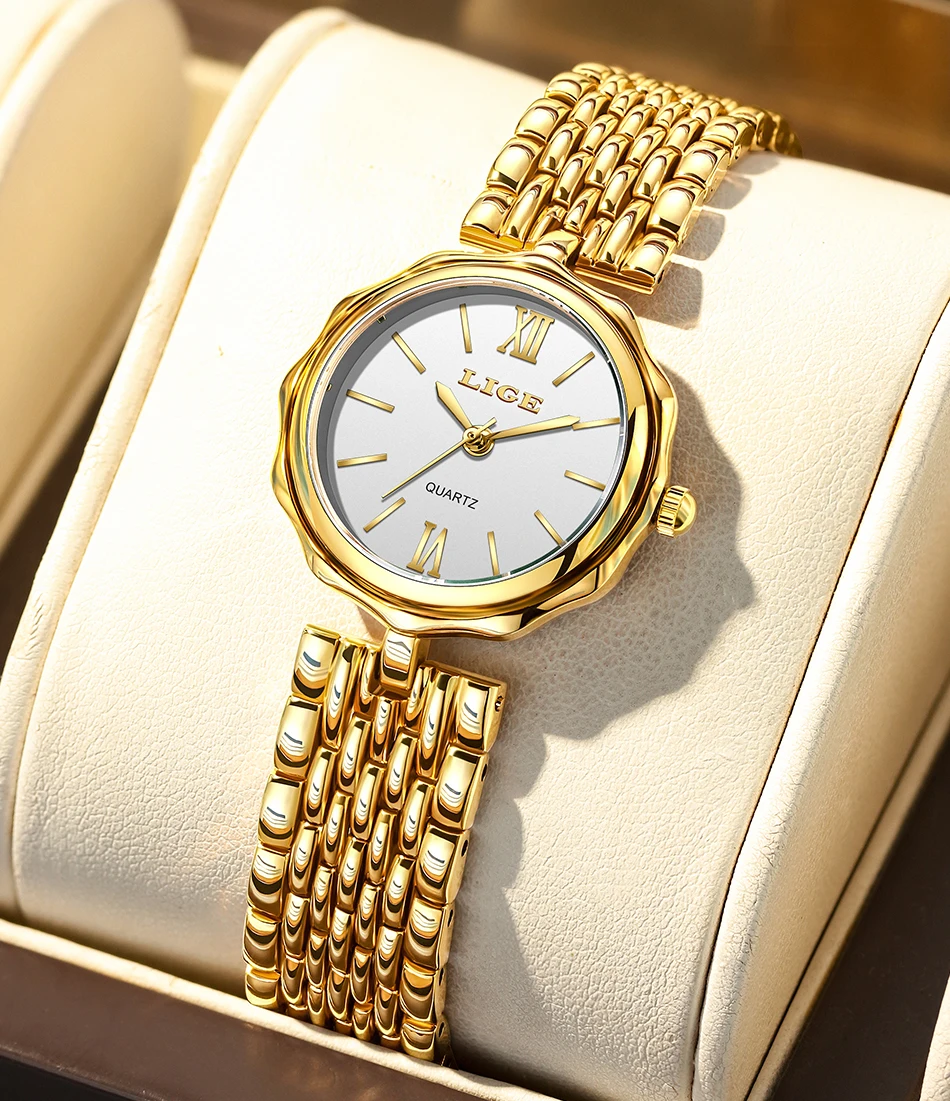 LIGE Fashion Golden Woman Watch Luxury Stainless Steel Ladies Watches Small Dial Elegant Female Quartz Bracelet Wristwatch+Box