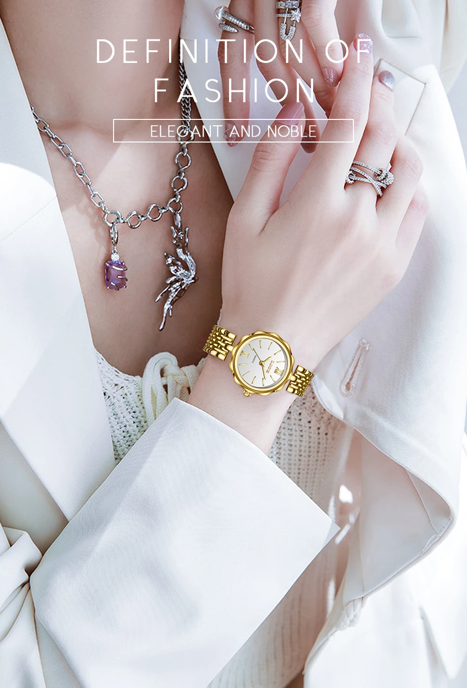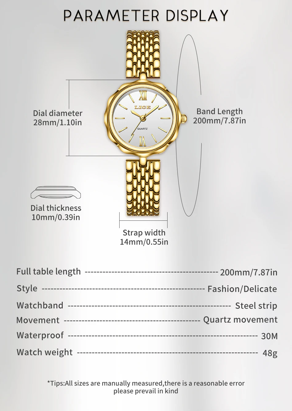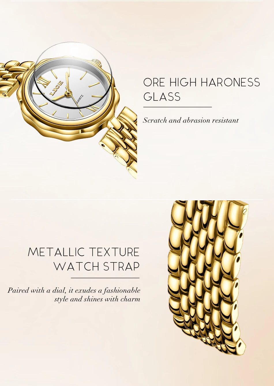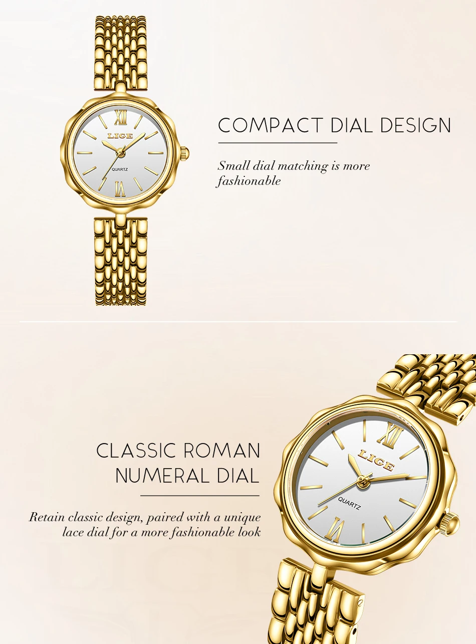 LIGE Fashion Golden Woman Watch Luxury Stainless Steel Ladies Watches Small Dial Elegant Female Quartz Bracelet Wristwatch+Box