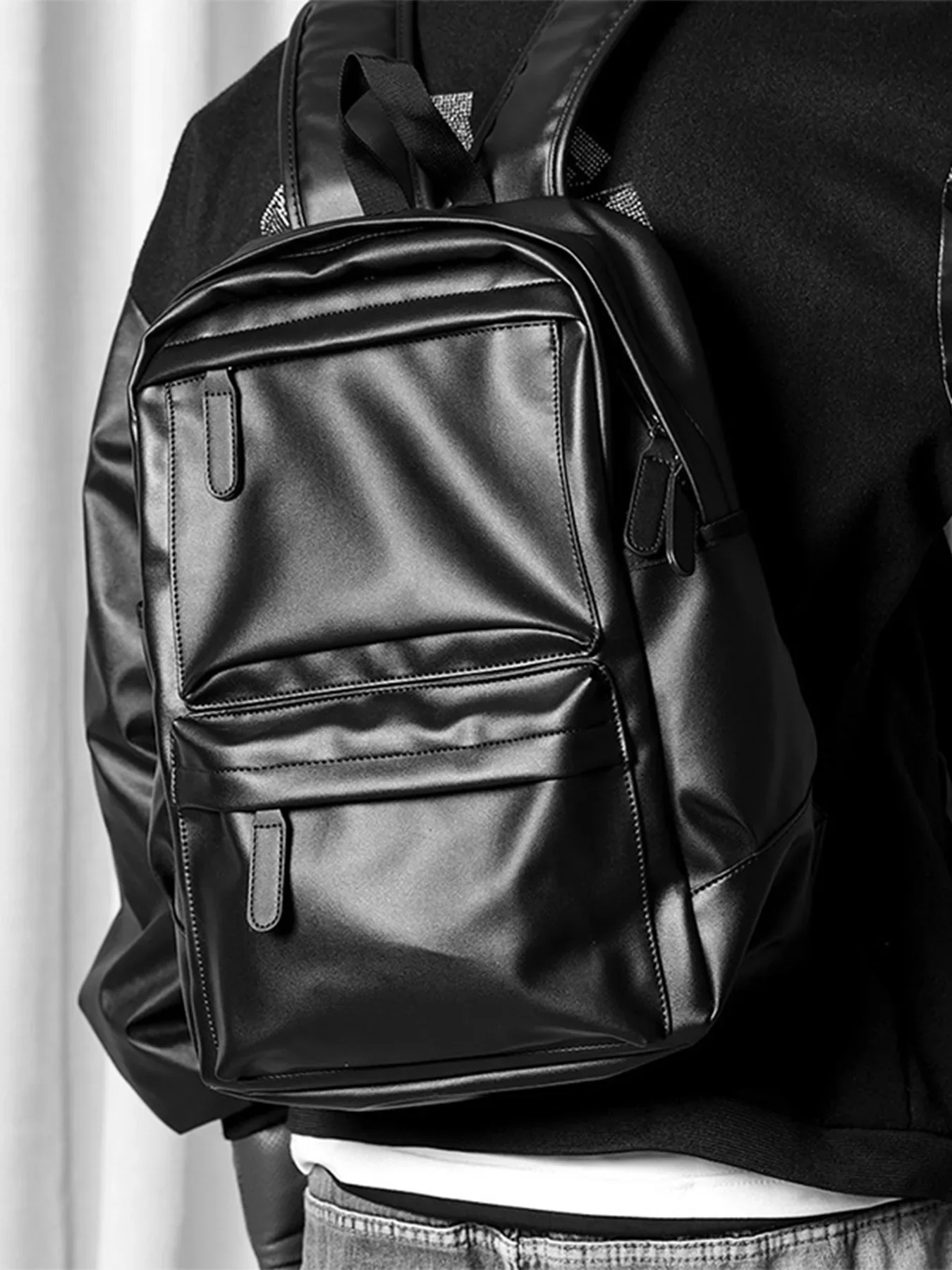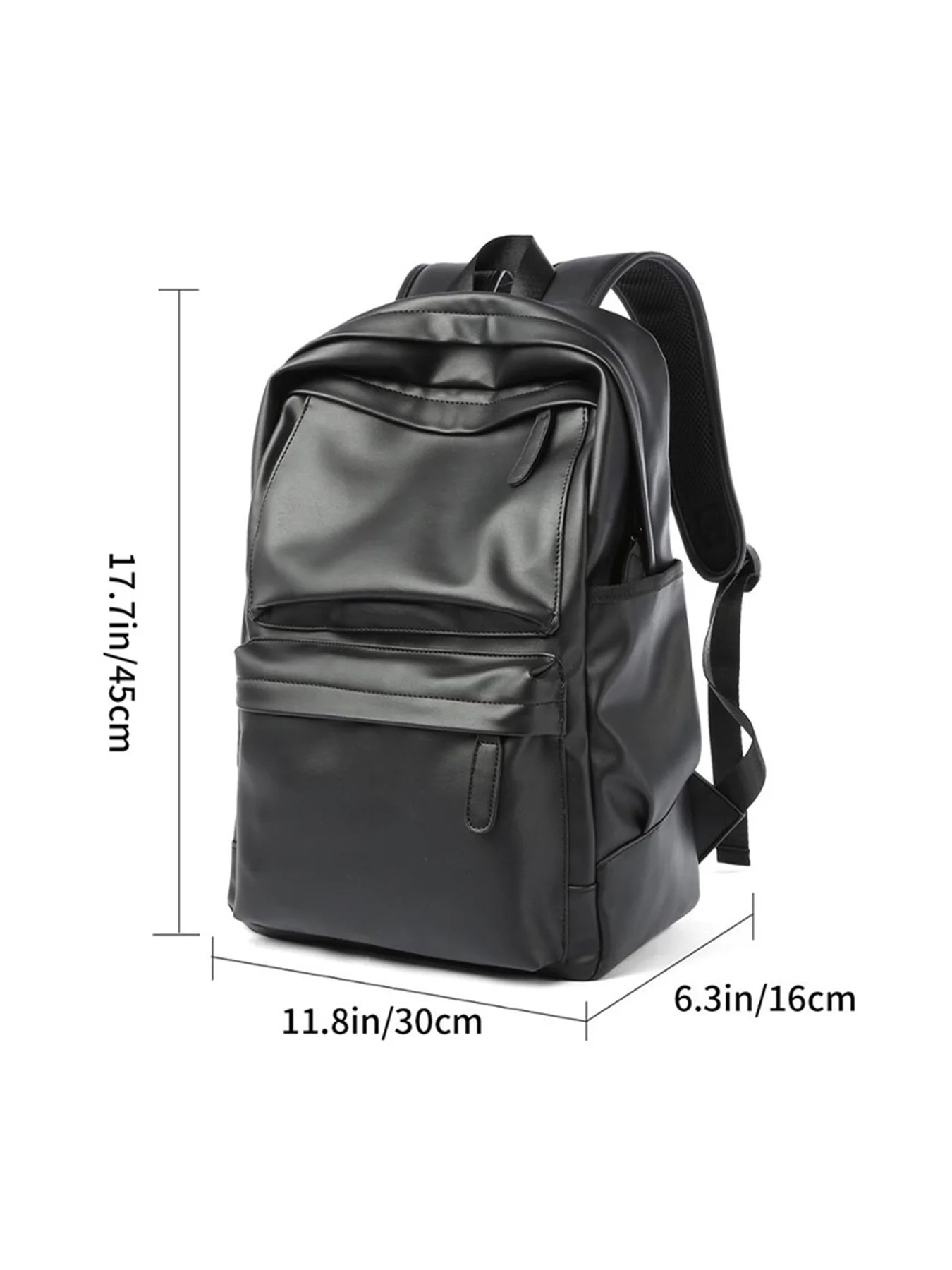 Men's Fashion Backpack PU Leather Waterproof Casual Travel Bag for 14-Inch Laptop