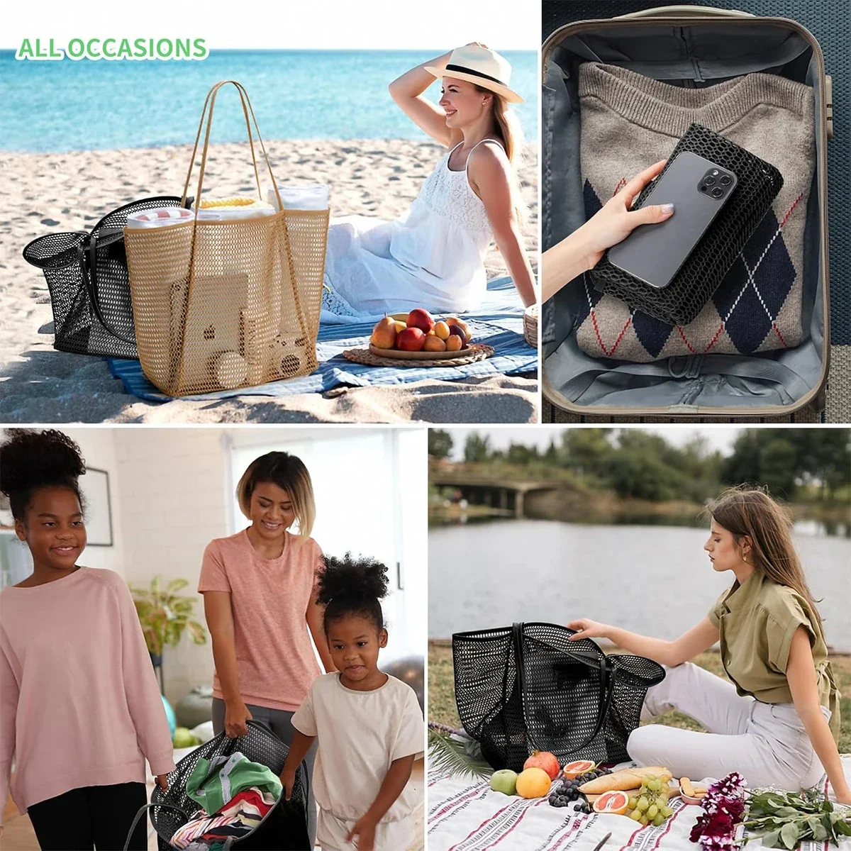 Mesh Beach Tote Womens Shoulder Handbag,Women's Portable Washing and Swimming Clothing Storage Bag
