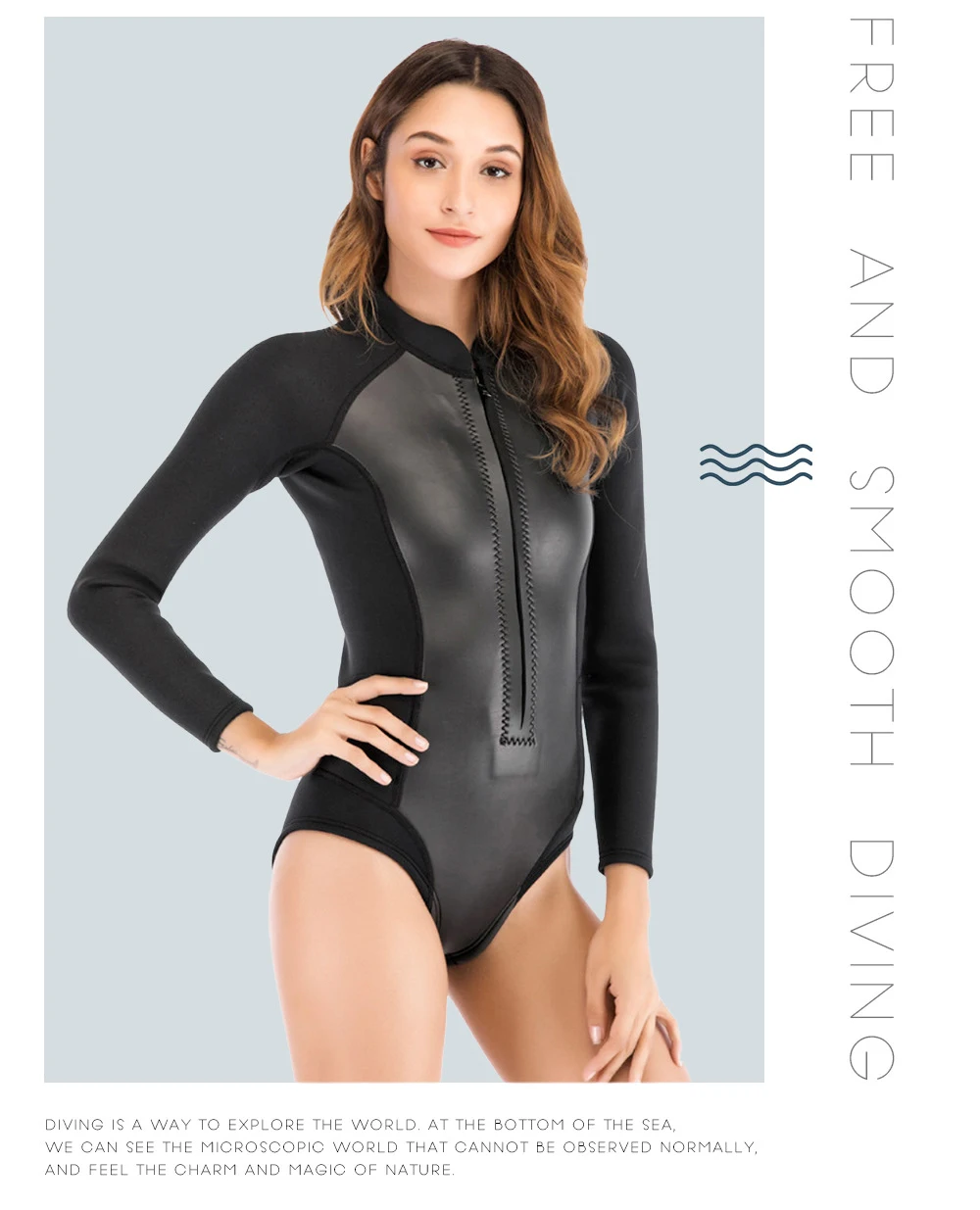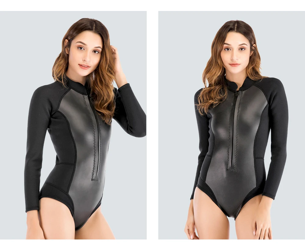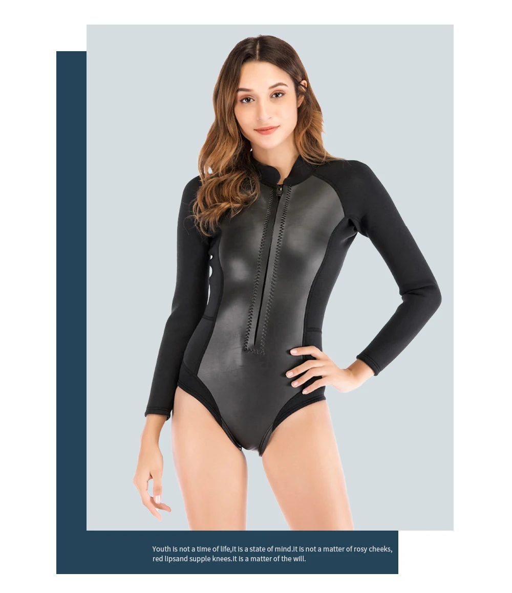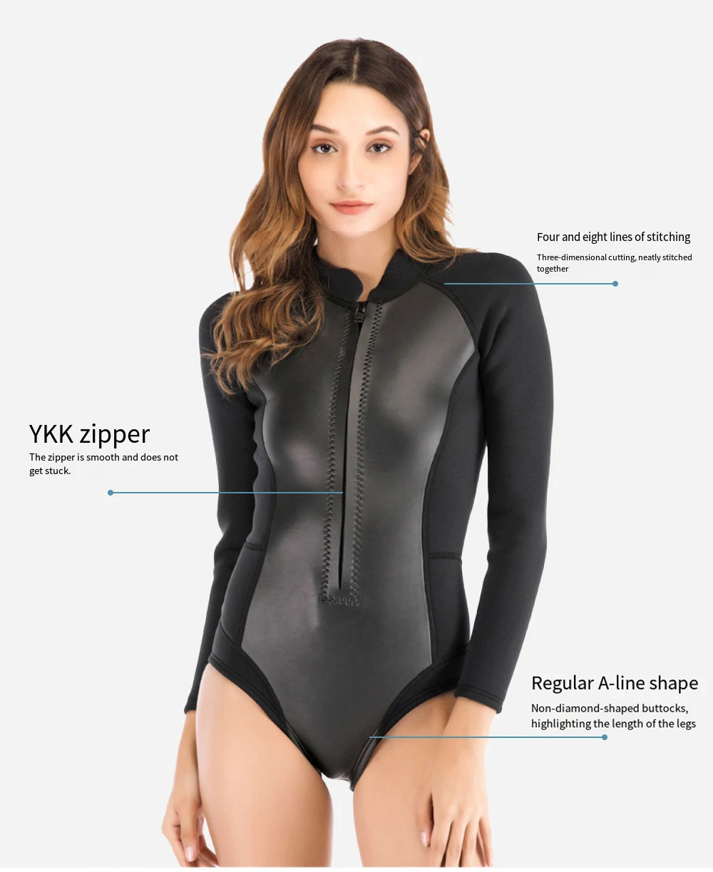 Oulylan Female Waterproof Surfing Wetsuit Long Sleeved Front Zipper Slim Swimsuit 1.5MM One-piece Snorkeling Divingsuit