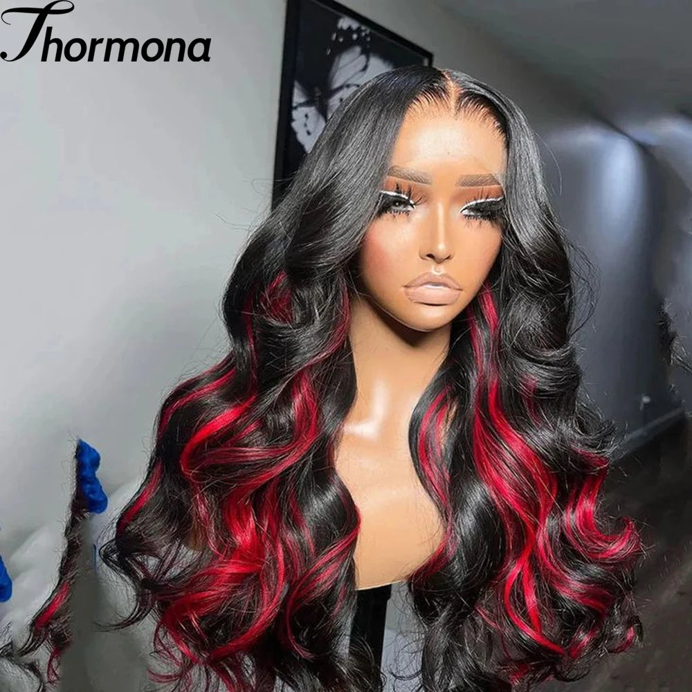 Pink Highlight Colored Lace Front Wig Synthetic Glueless Loose Wave Pre Plucked 13x4 HD Transparent Lace Frontal Wigs For Women