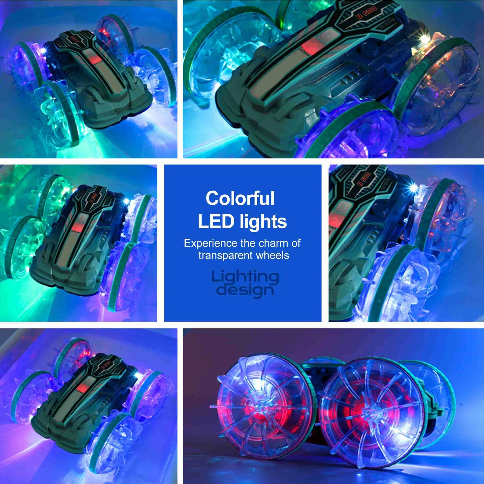 Remote Control Car Boat Gesture Sensing RC Waterproofing Stunt 4WD Water All Terrain Beach Pool Toys with LED Lights for Boys Girls
