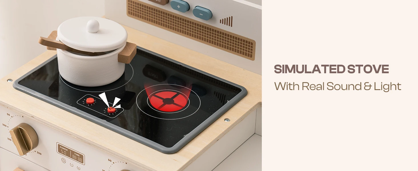 ✨Real Culinary Magic✨: Our kitchen goes beyond the basics – the stove features authentic lights and sounds, turning playtime into a culinary spectacle! 🎇 Picture your child's joy, mimicking real kitchen action with sizzling sounds. 🍳 It's the fun and realism others lack, making every play session a magical adventure!
