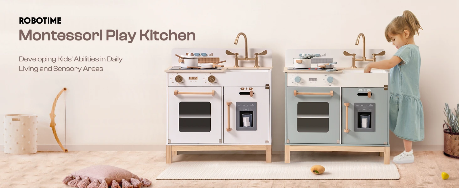 🎁A Gift that Never Goes Wrong🎄: ROBOTIME play kitchen is a great addition to any play area. 🏠 It is perfect for birthdays, Christmas and festivals. 🎂 This play kitchen set measures approximately 22.8 x 11.4 x 24.4 ”. 📐 It may take you some time to assemble and stick the stickers, which is a great time for parent-child interaction. 👪