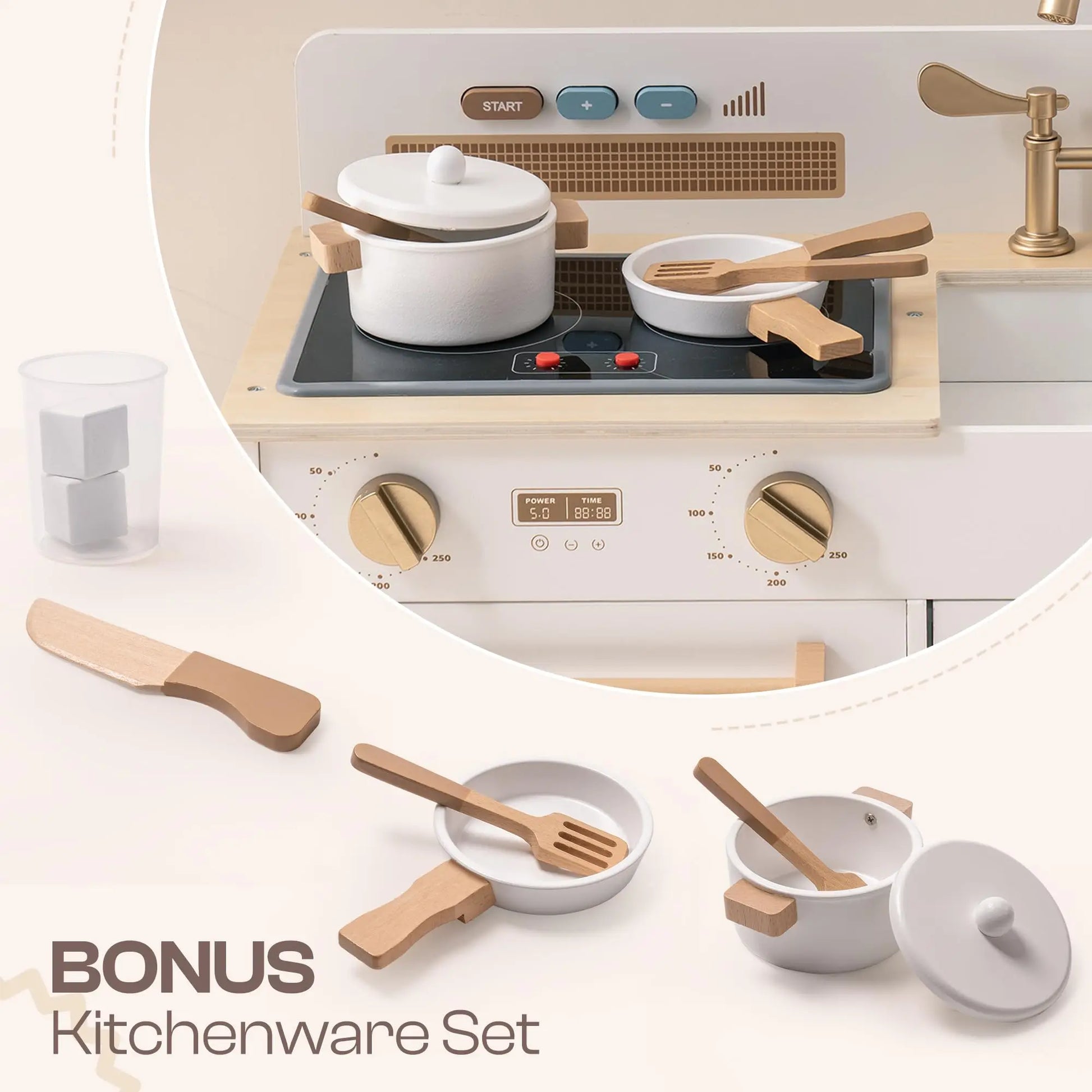 🧠Hands-On Fun & Learning🌟: Create an interactive world with our Wooden Play Kitchen! 🔥 The temp dial? 🌡️ It's not just fun, it teaches heat levels! This hands-on play boosts brainpower, making learning a blast!