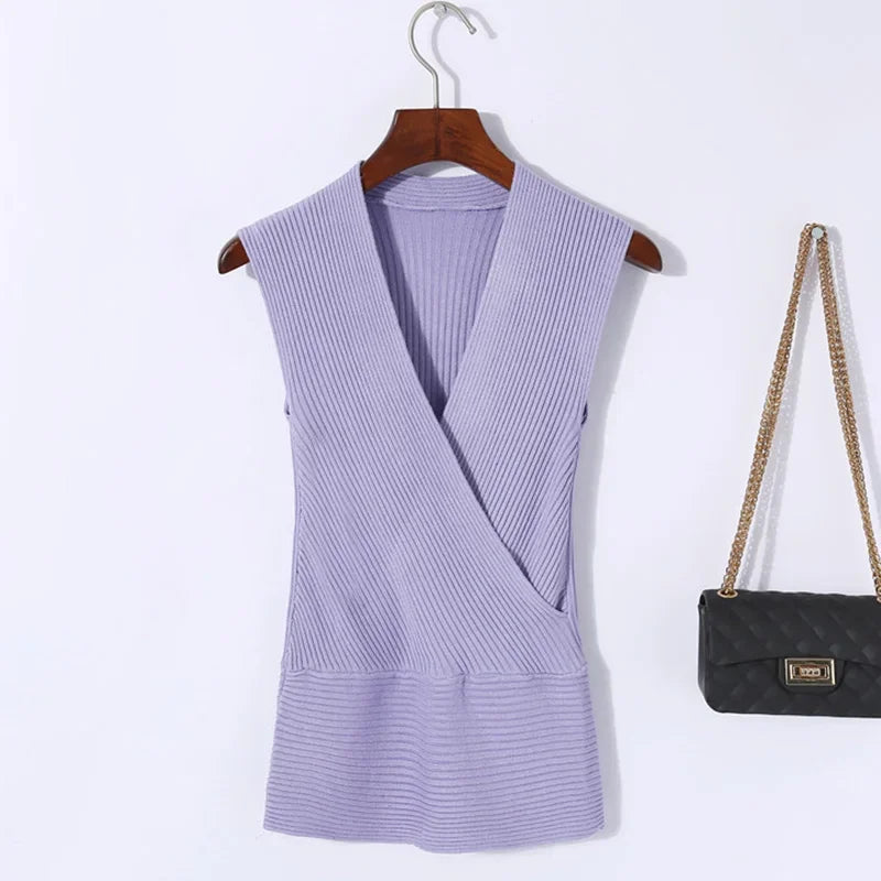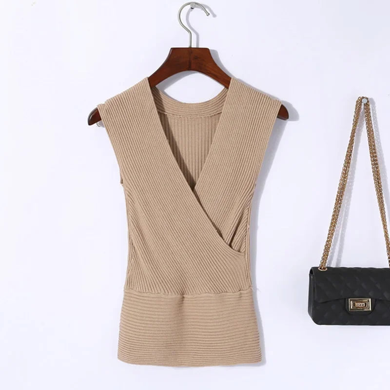 Sexy Deep V Neck Sweater Women 2025 New Womens Clothing Slim Bottoming Large Elastic Knitwear Rib Cotton Sleeveless Top Jerseys