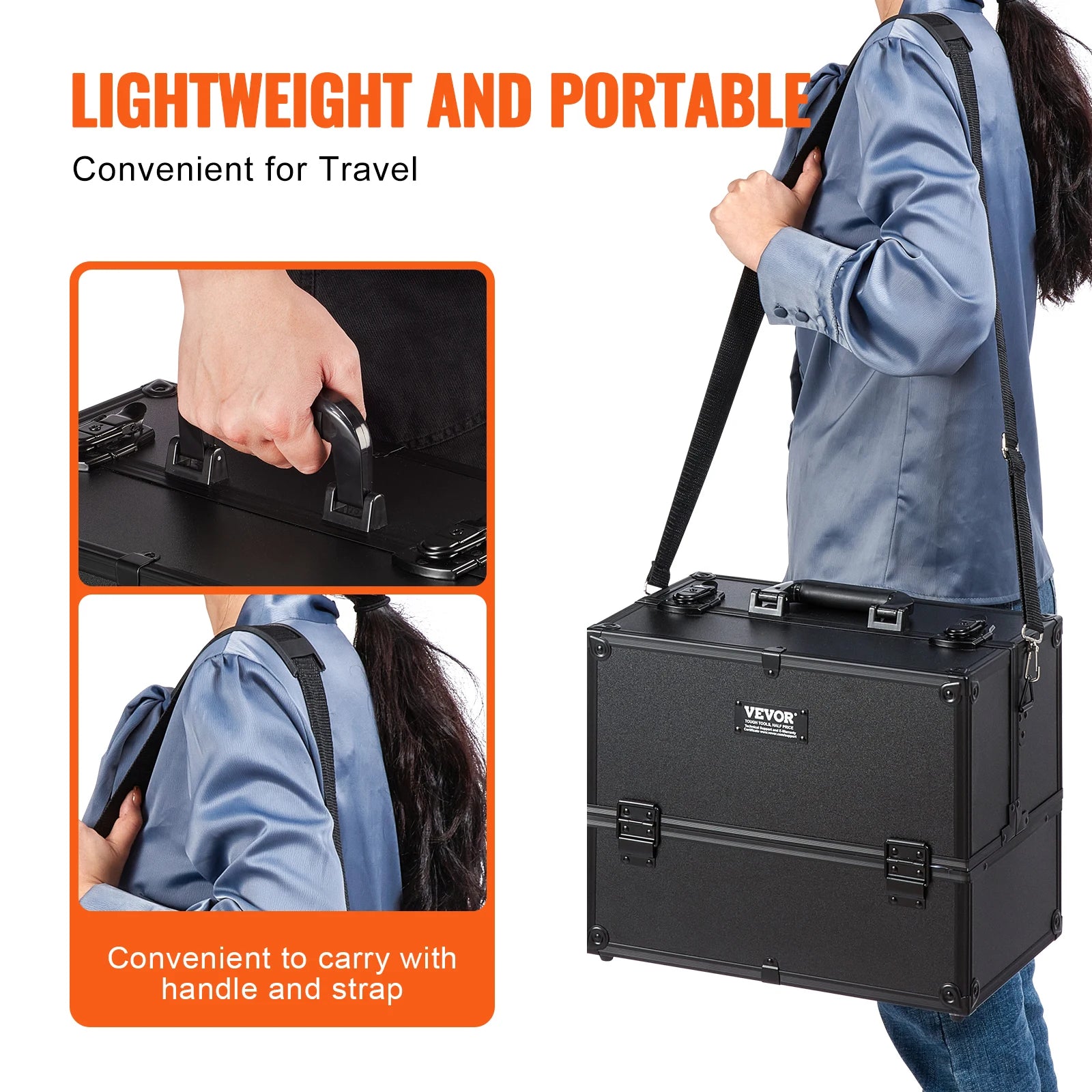 Lightweight and Portable: With a net weight of 7.9 pounds/3.6 kg, the makeup case comes with adjustable shoulder straps and handles, giving you the option to carry it by hand or over your shoulder. It's lightweight and easy to carry, fitting easily in the trunk of your car or as a carry-on item for your flight, serving as your mobile makeup workstation.