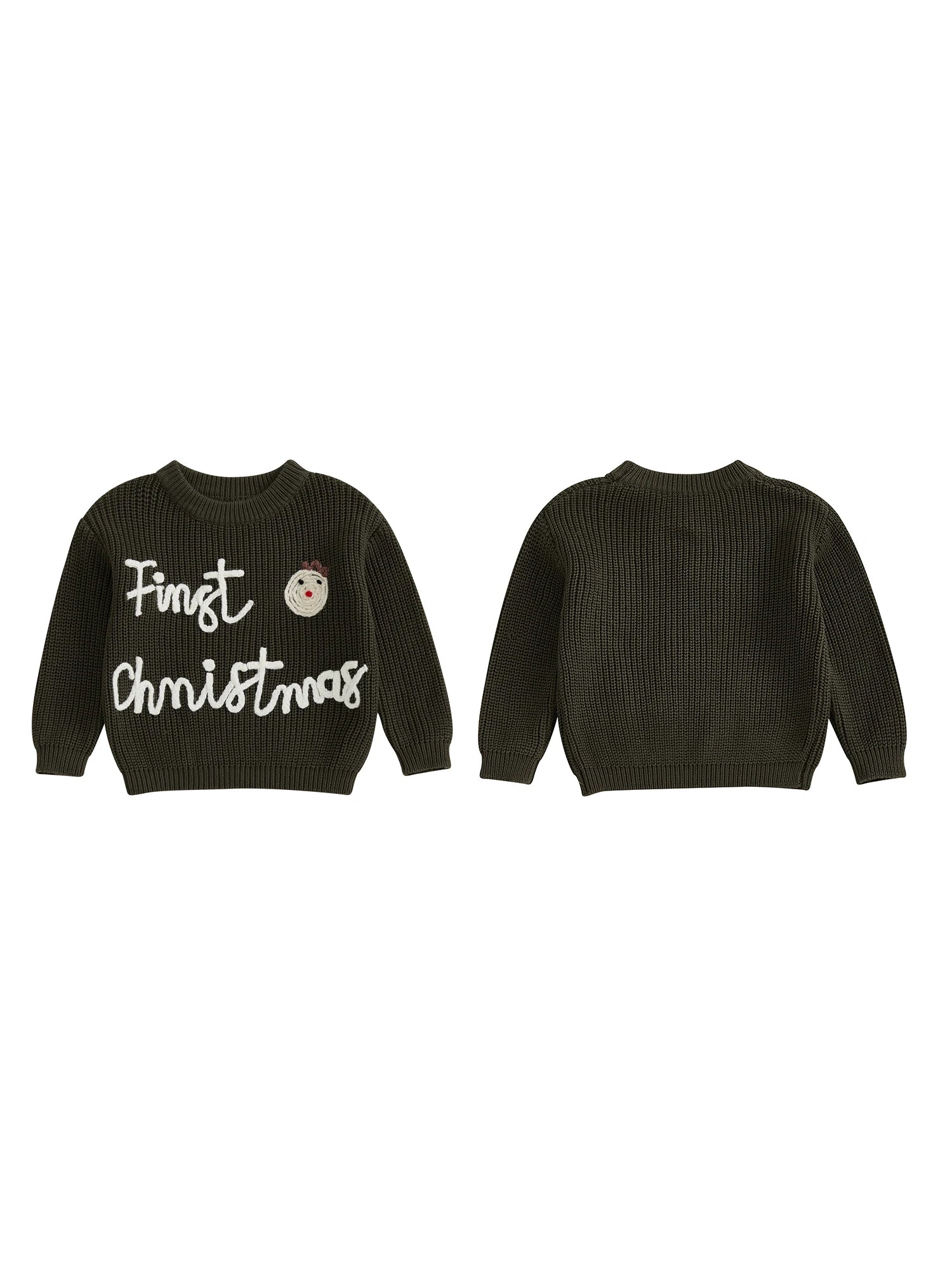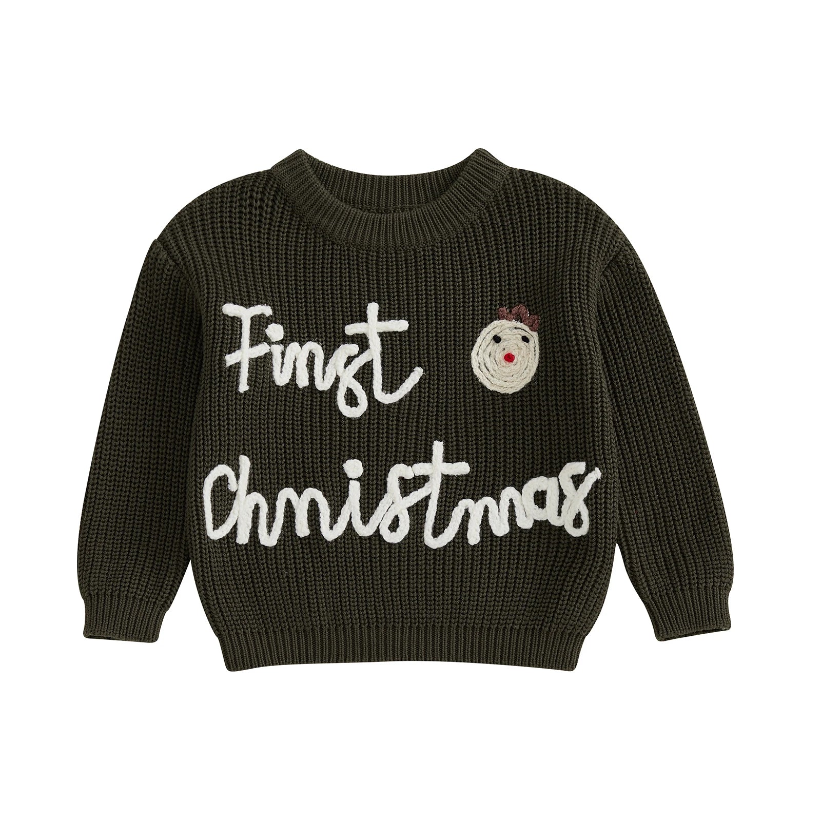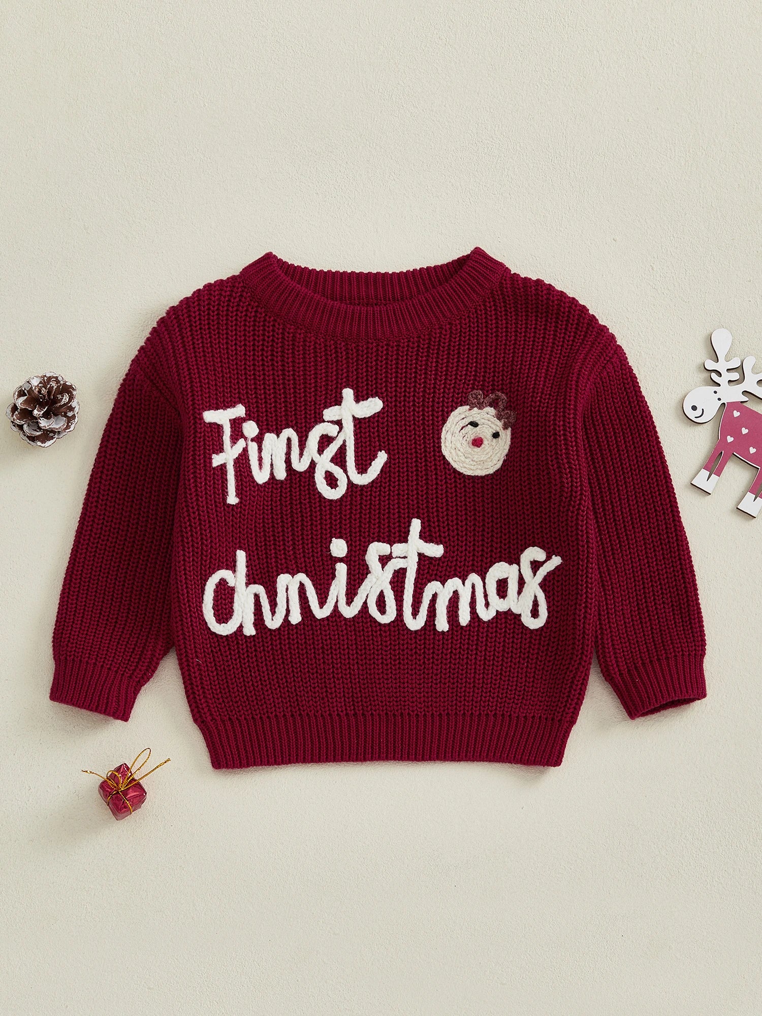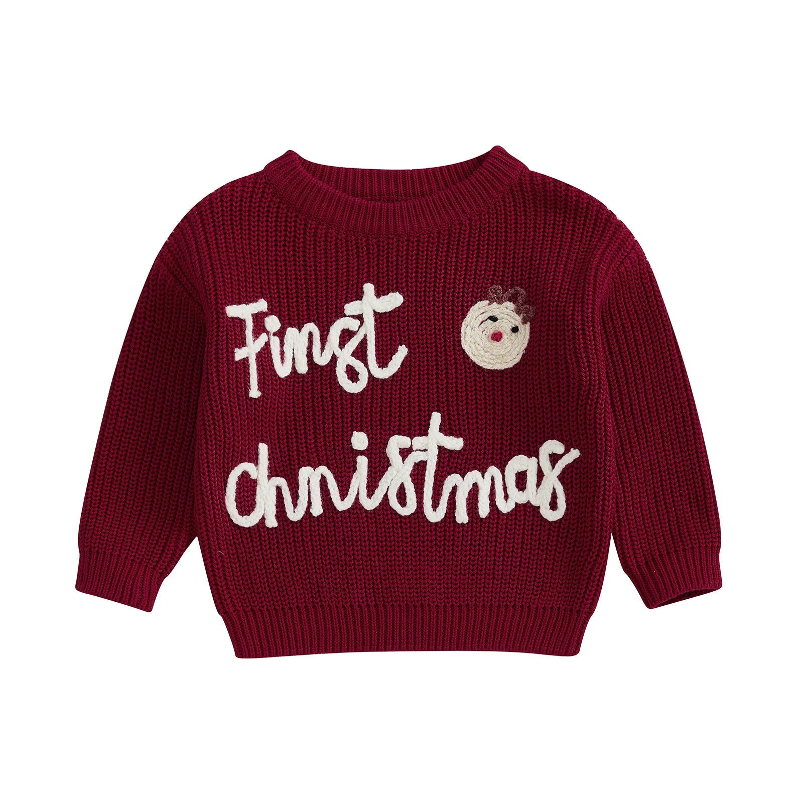 Baby Girl Christmas Sweater, Long Sleeve Crew Neck Letters Elk Winter Warm Knit Pullover Sweater Infant Clothes