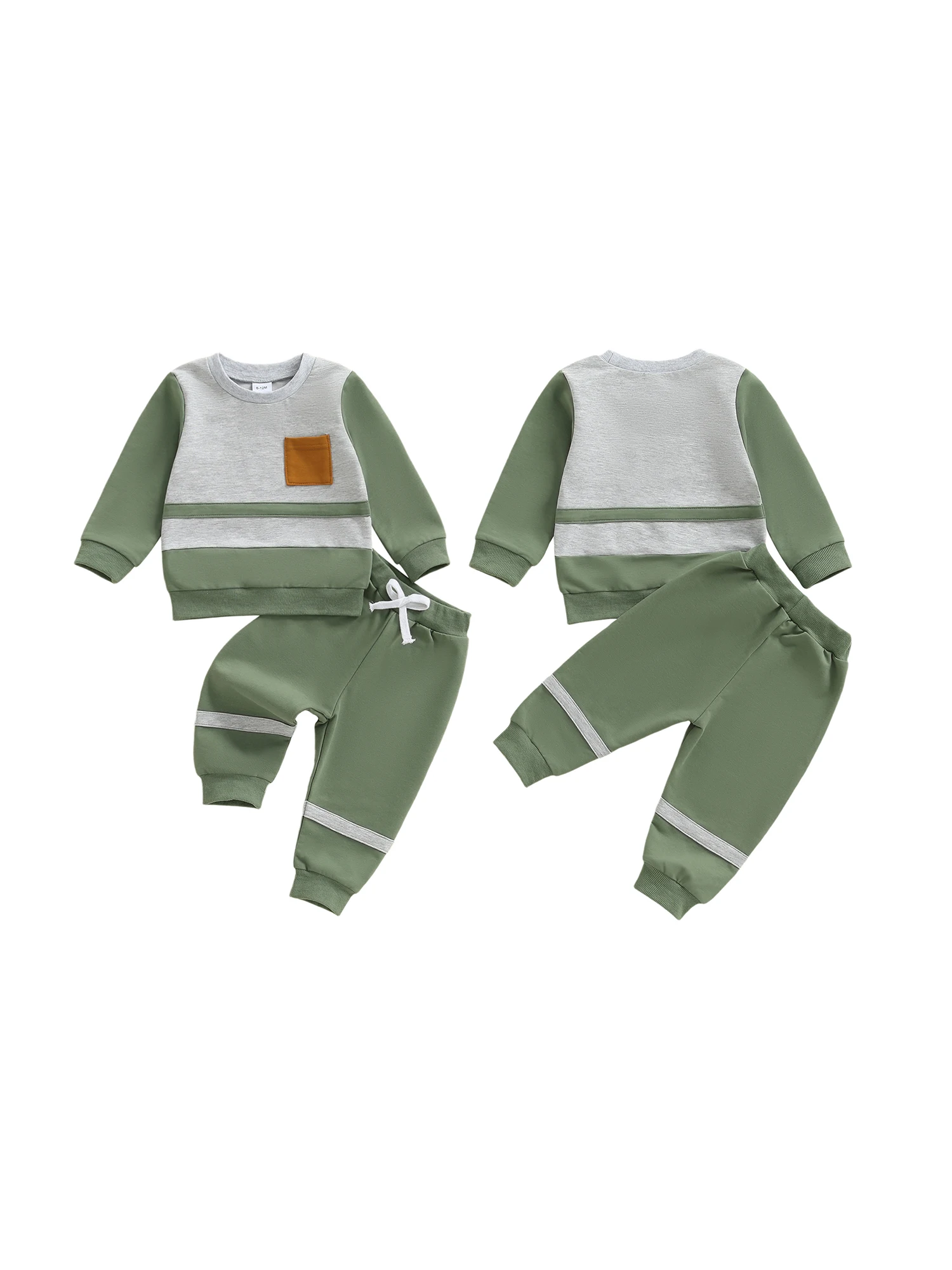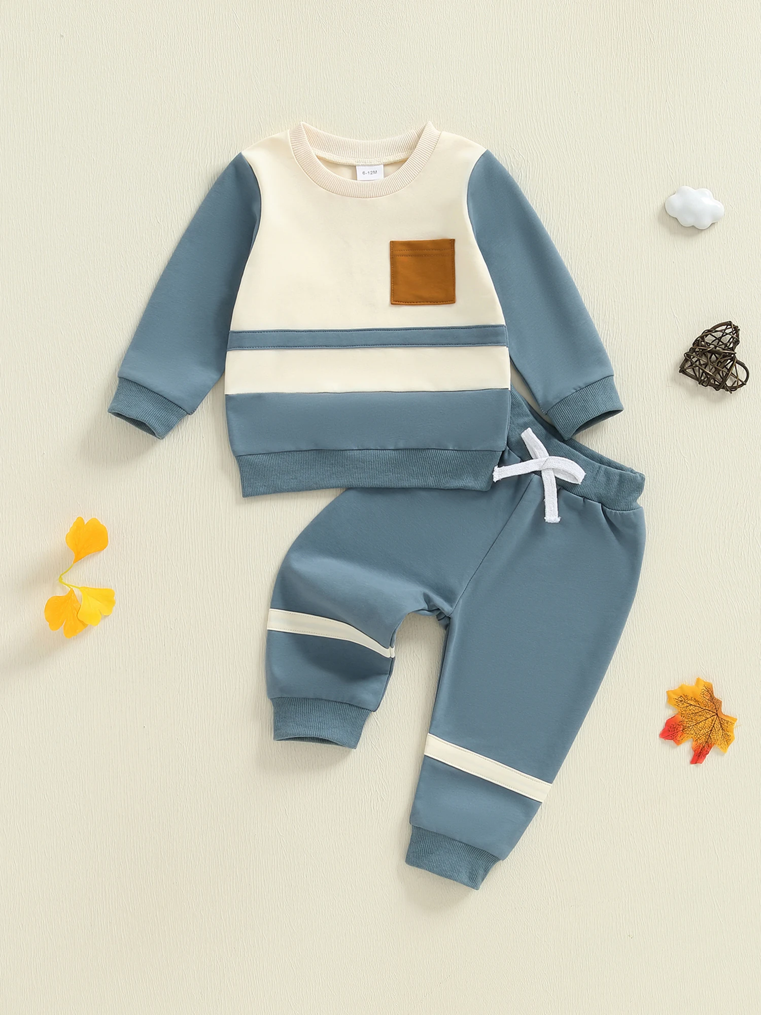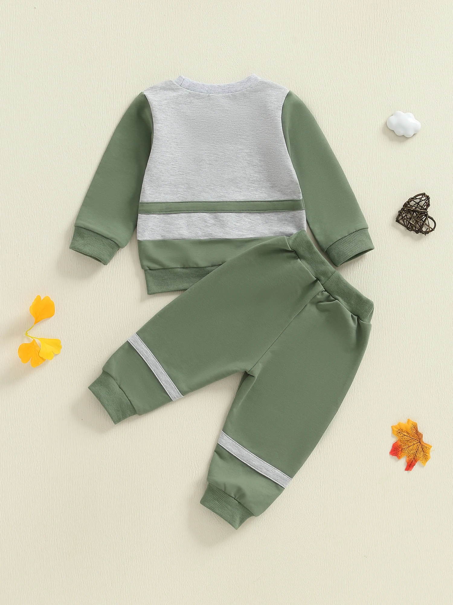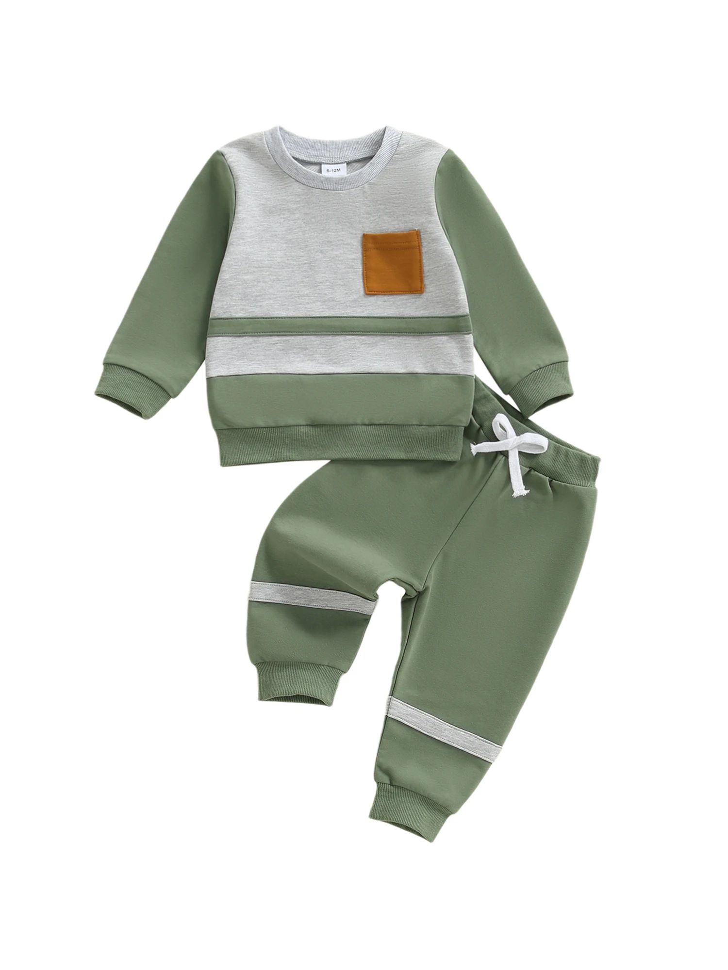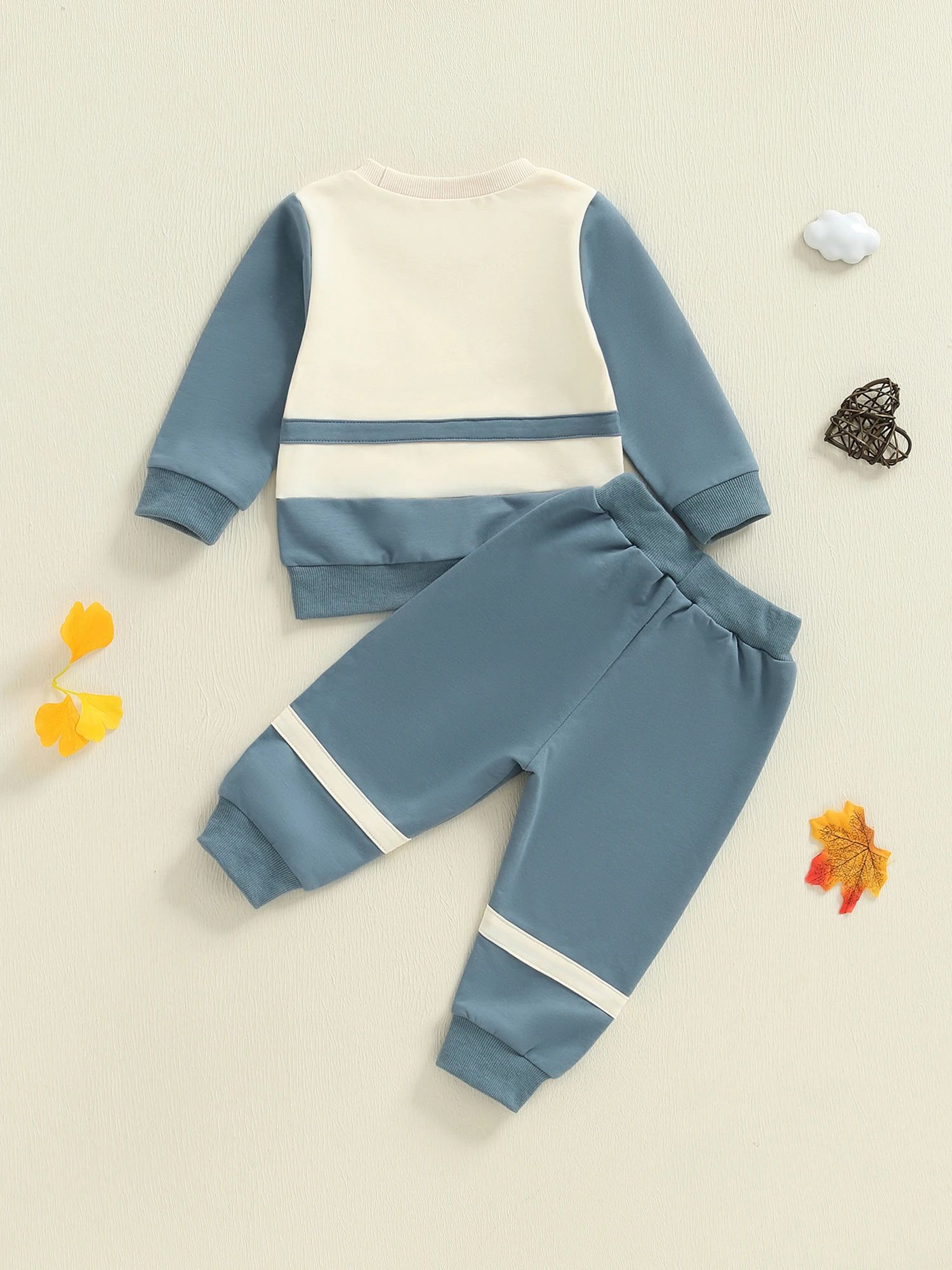 Baby Boy 2Pcs Fall Outfit Long Sleeve Contrast Color Sweatshirt + Pants Set Warm Clothes