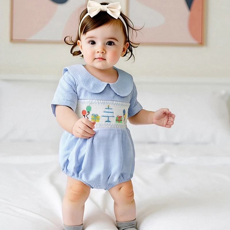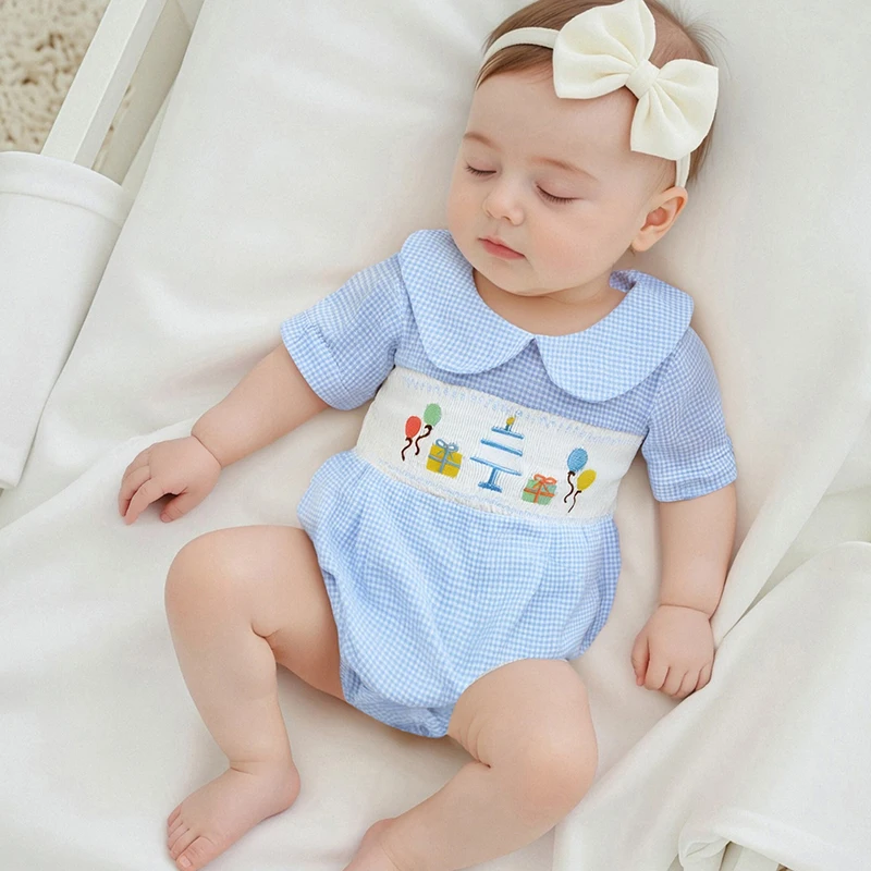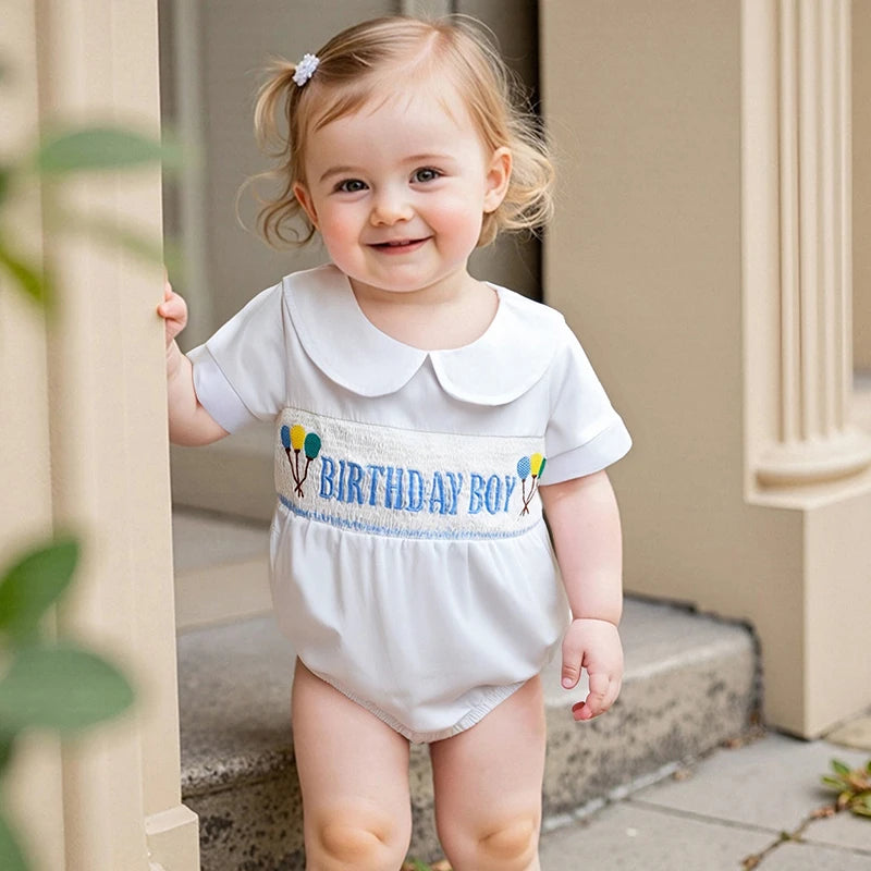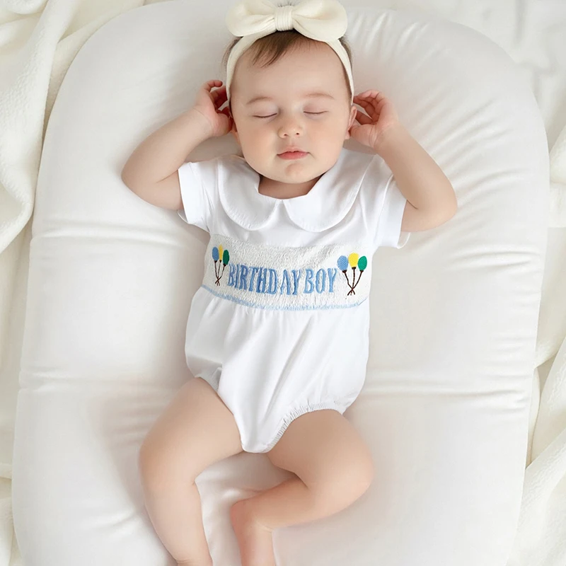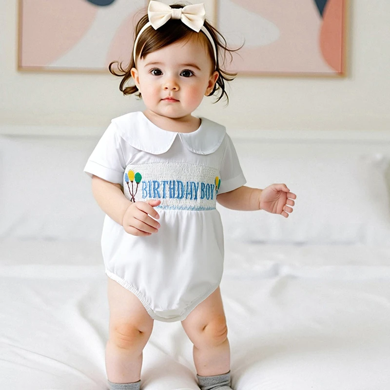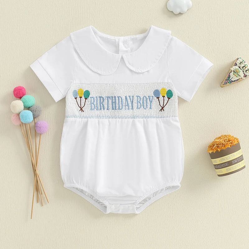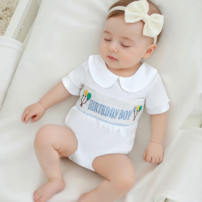 Baby Girls Rompers Birthday Clothes Balloon Letter Embroidered Short Sleeve Infant Jumpsuits Bodysuits