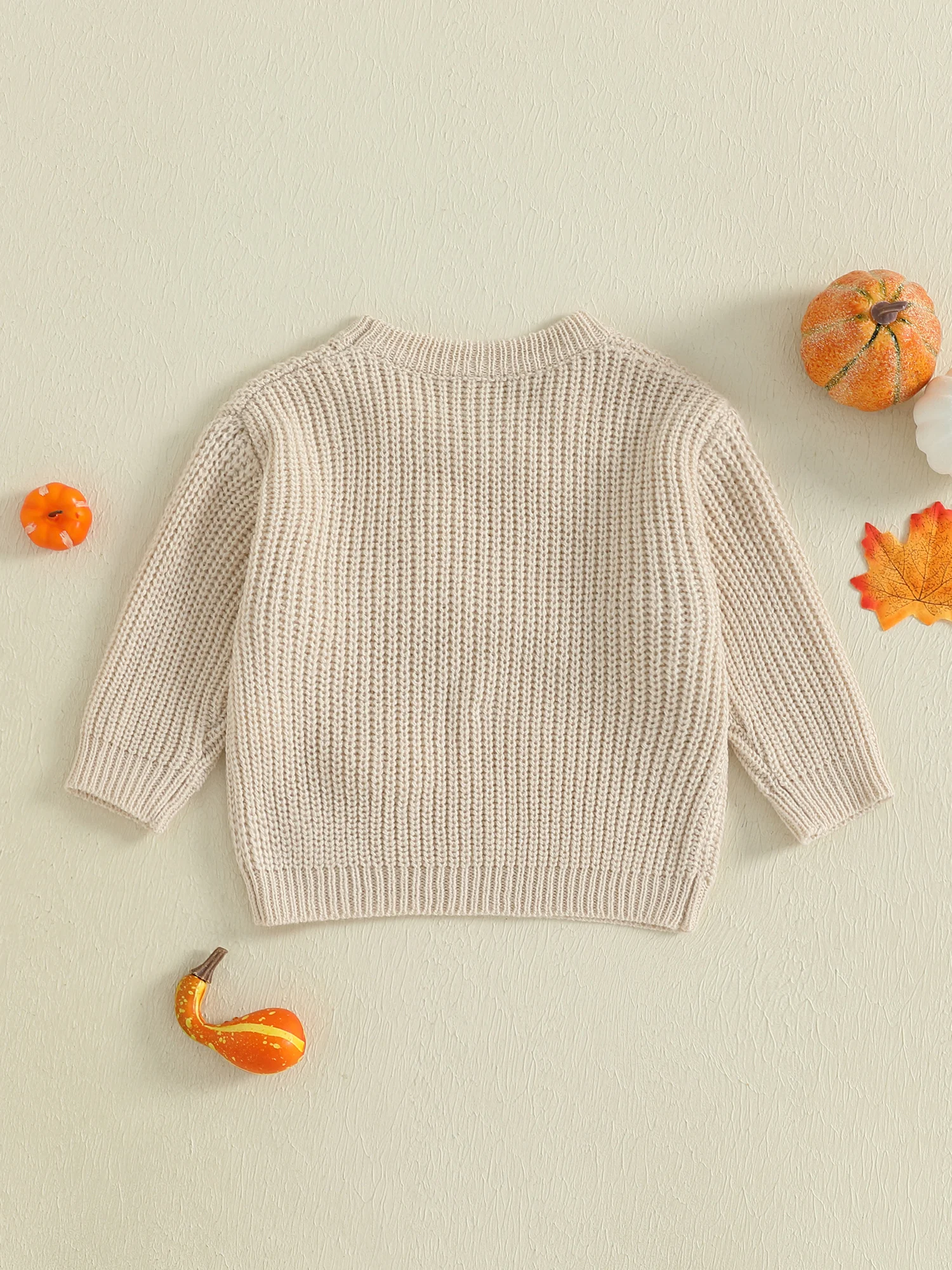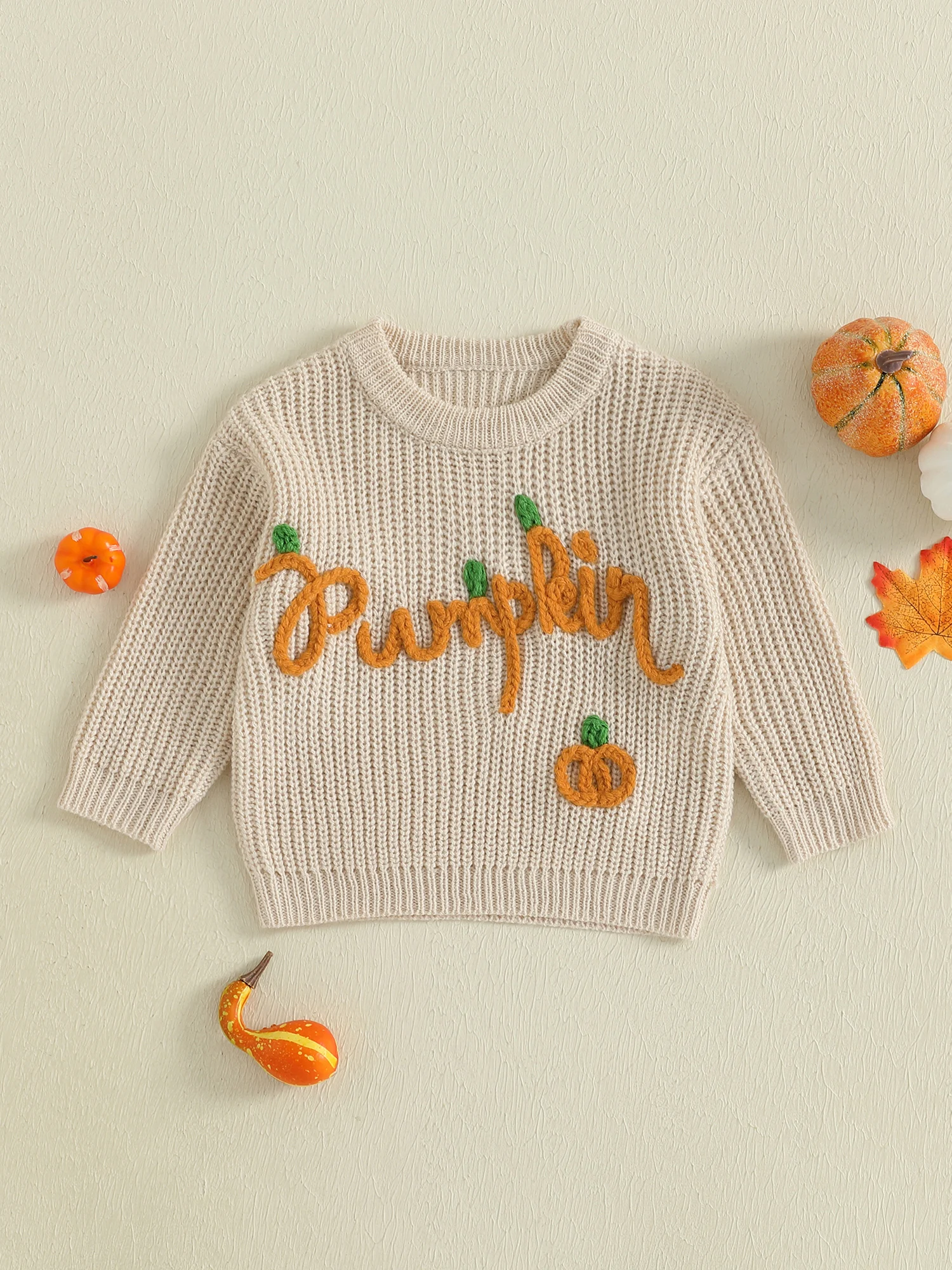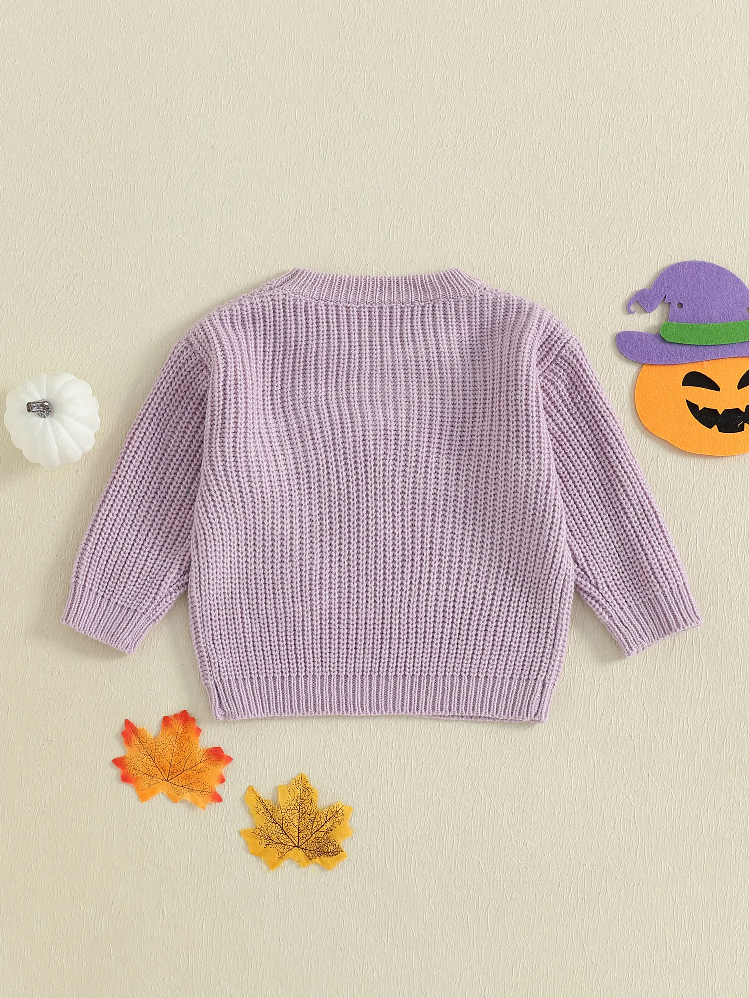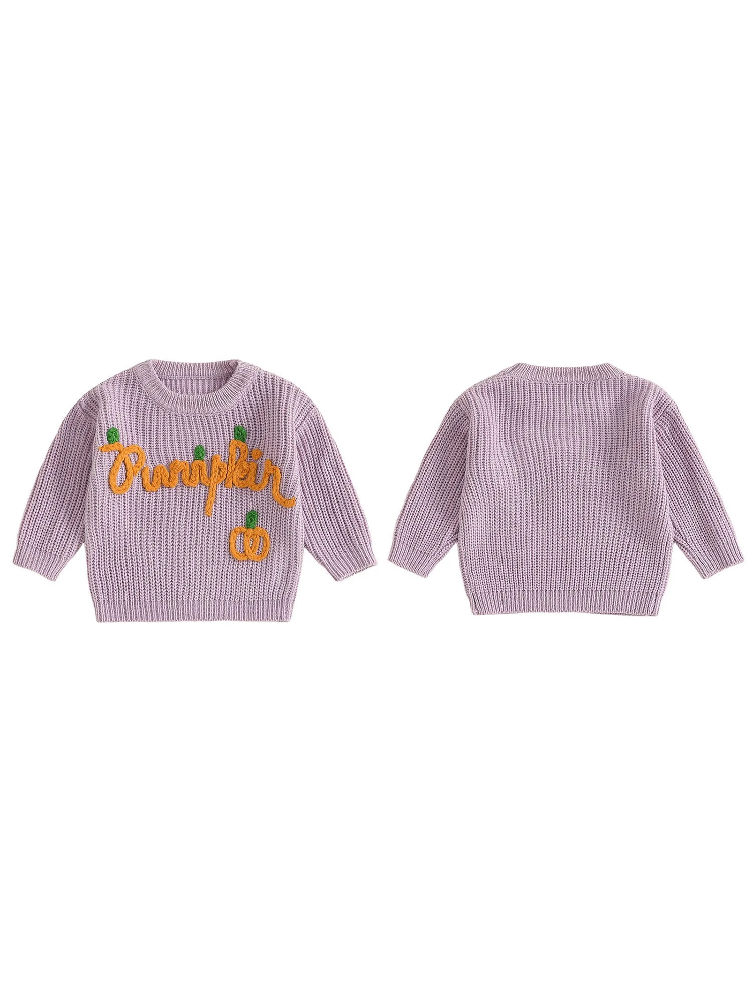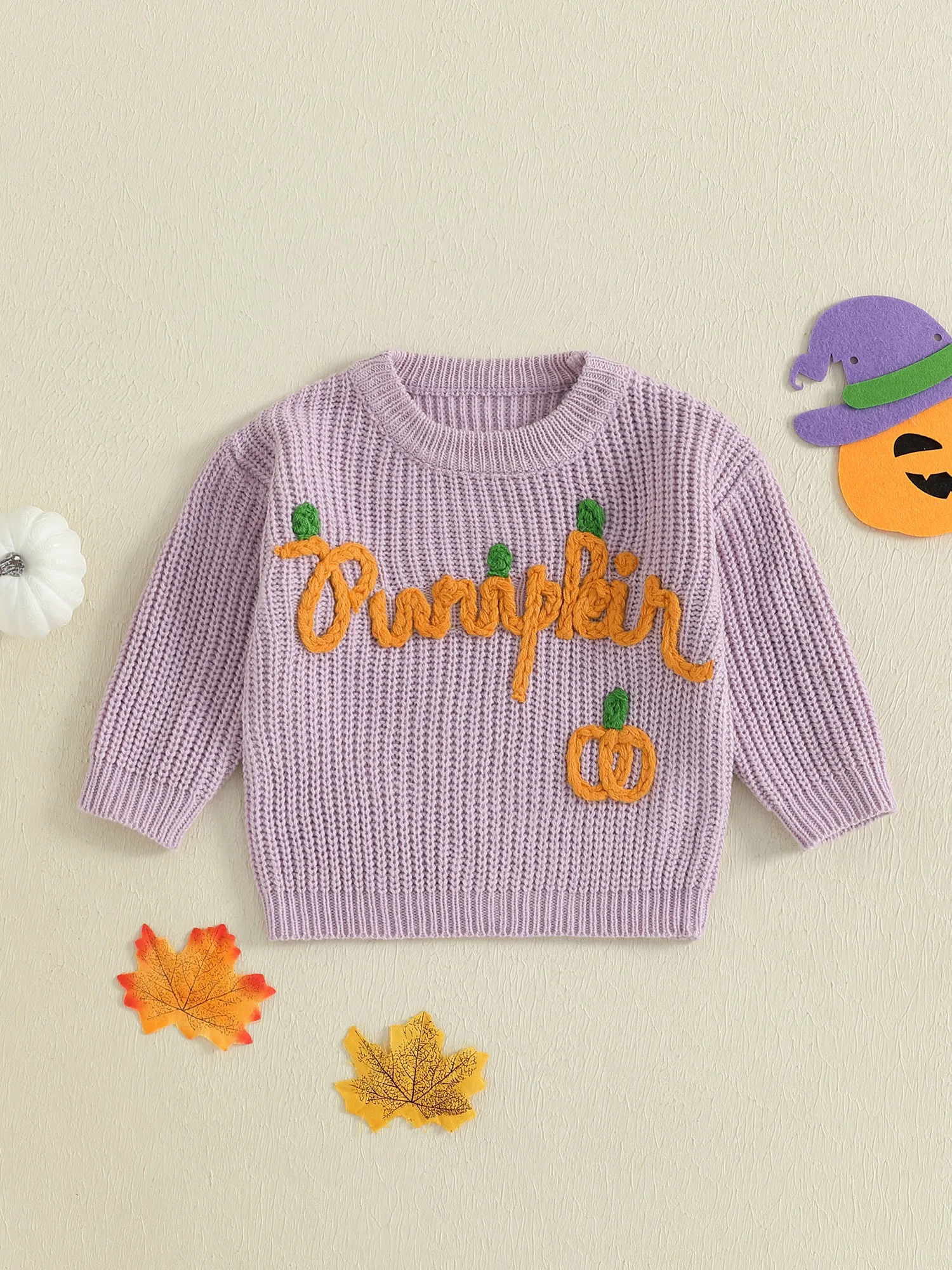 Baby Halloween Sweater Letter Pumpkin Embroidery Long Sleeve Crew Neck Knitwear Pullover