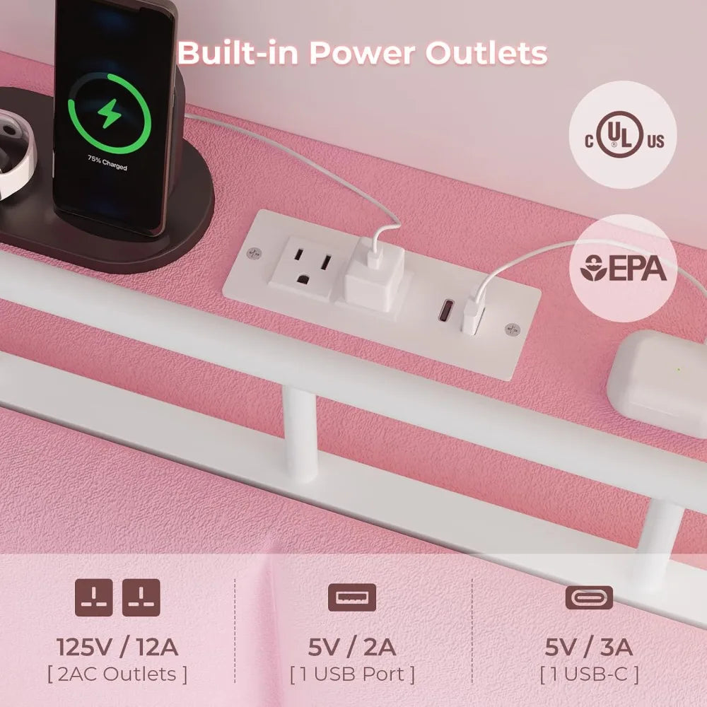 - 【Charging Station & Side Pockets】 USB and Type-C ports at the headboard keep your devices charged without needing to leave your comfortable bed. Two side pockets provide easy storage for glasses, combs, phones, remotes, and other small essentials, keeping everything within reach